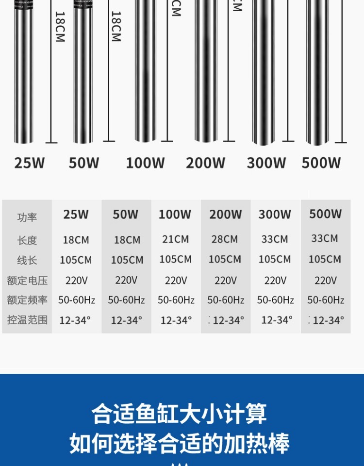 수족관 석영 유리 방폭 난방 히터 거북이 탱크 난방 수족관 자동 일정 온도 가열 막대