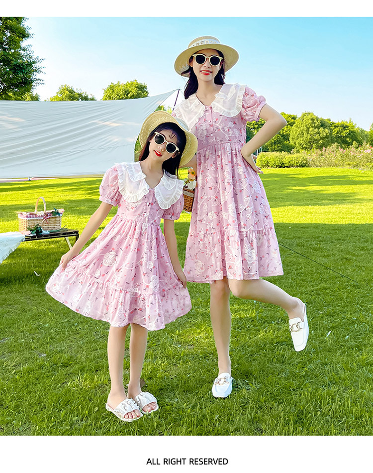 어린이 긴 원피스 쉬폰 스커트 어머니의 여성 의류 유행 부모-자식 의류 어머니의 딸 보헤미안 레이스 칼라