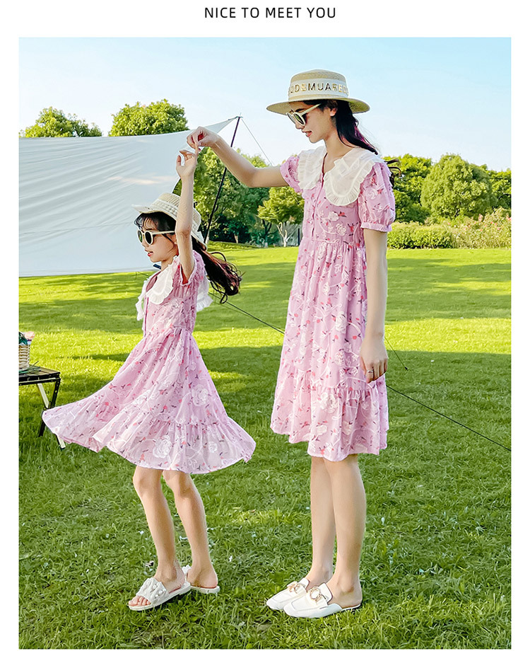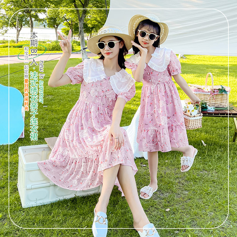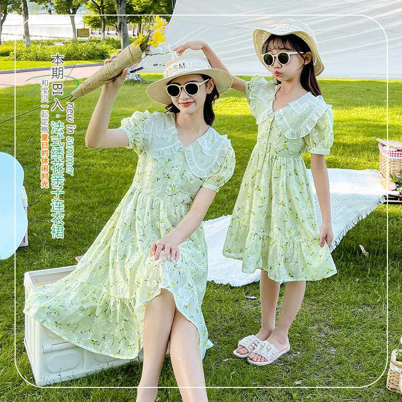 어린이 긴 원피스 쉬폰 스커트 어머니의 여성 의류 유행 부모-자식 의류 어머니의 딸 보헤미안 레이스 칼라스토어 가기