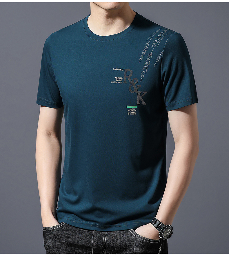여름 새로운 모든 매치 풀오버 라운드 넥 티셔츠 남성용 패션 반팔 남성용 프린트 캐주얼 얇은 반 소매 탑