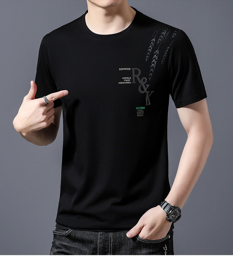 夏季新款百搭圆领T恤男士时尚套头短袖男装印花休闲薄款半袖上衣