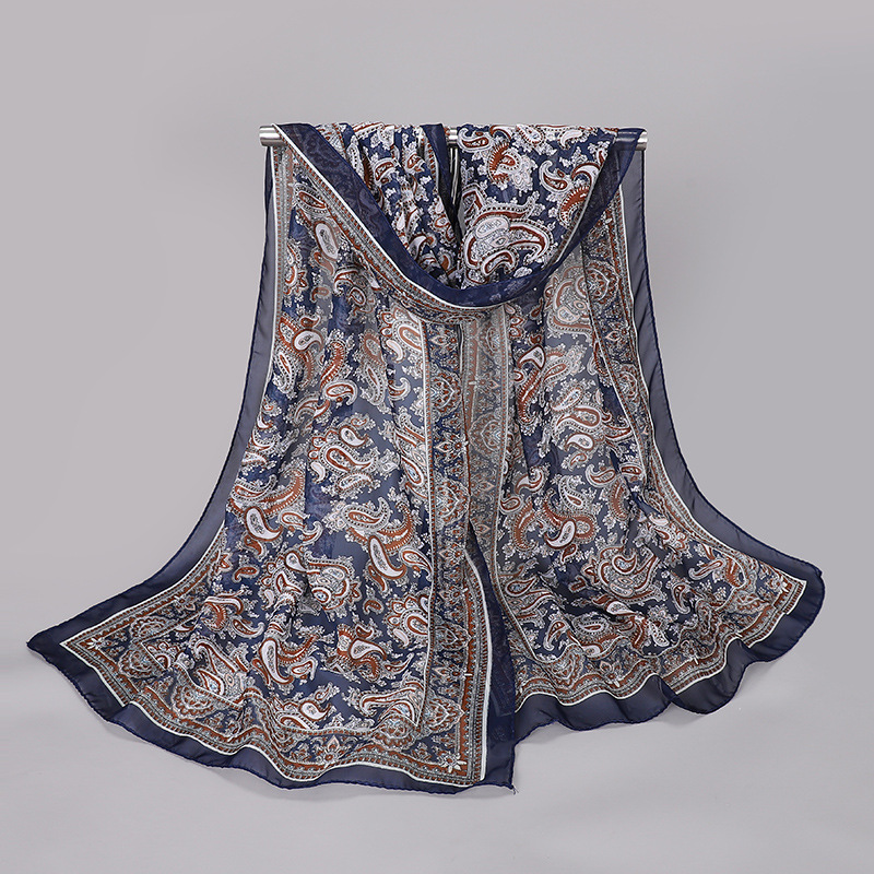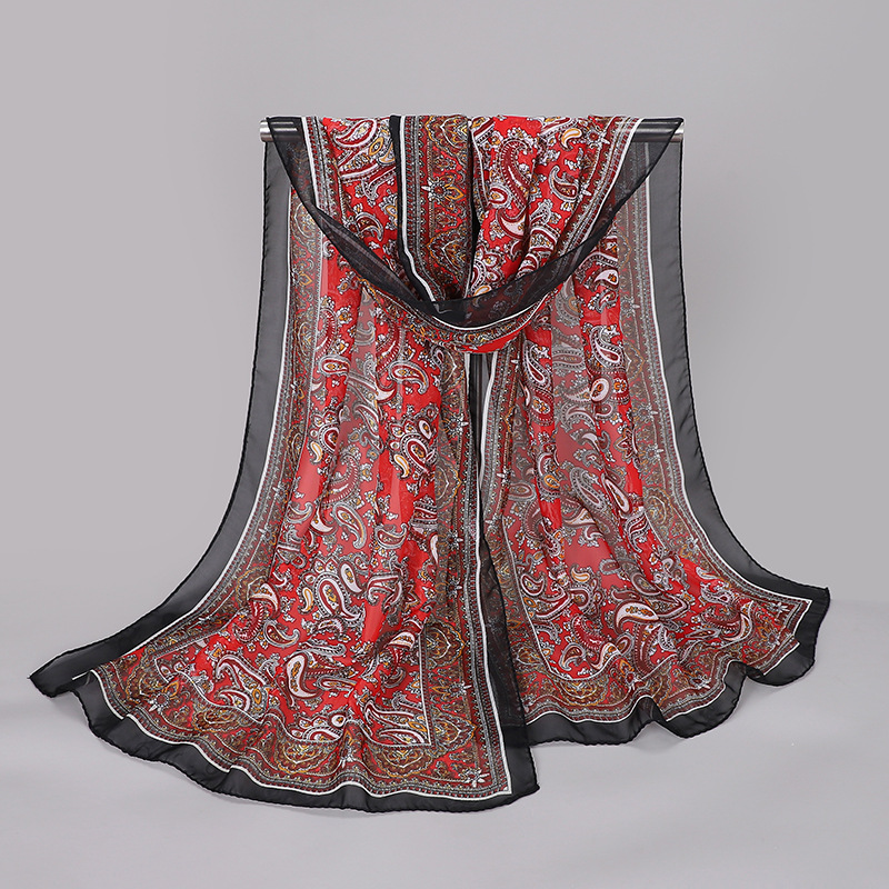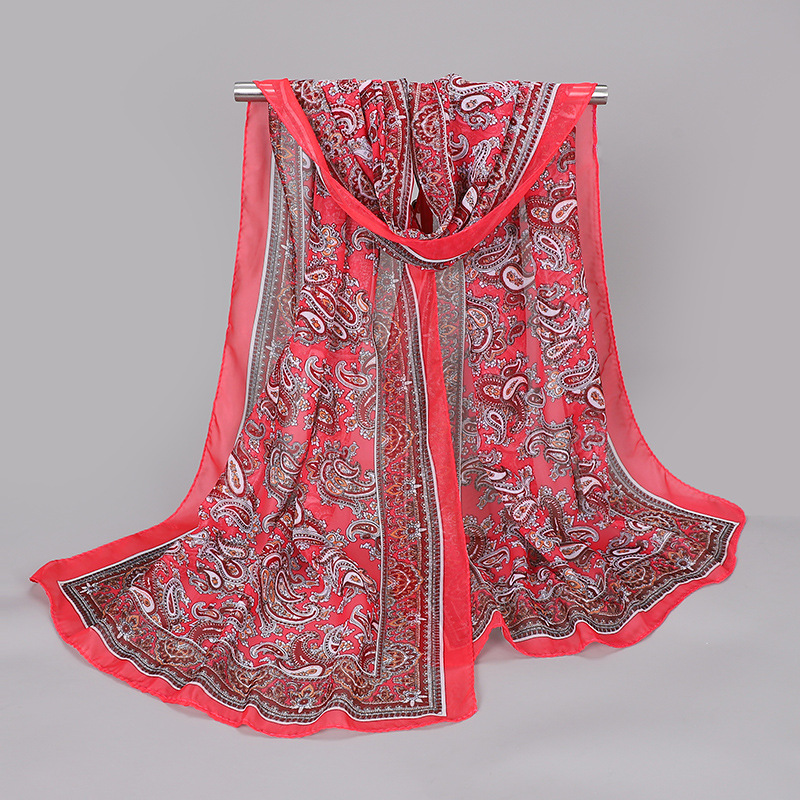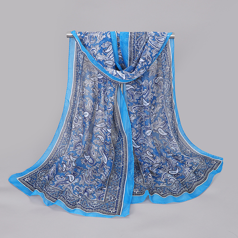 2023 봄과 여름 새로운 허리 드럼 플라워 프린팅 레이디 쉬폰 롱 스카프 도매 이우 작은 스카프 스카프 스카프 스카프 선물스토어 가기