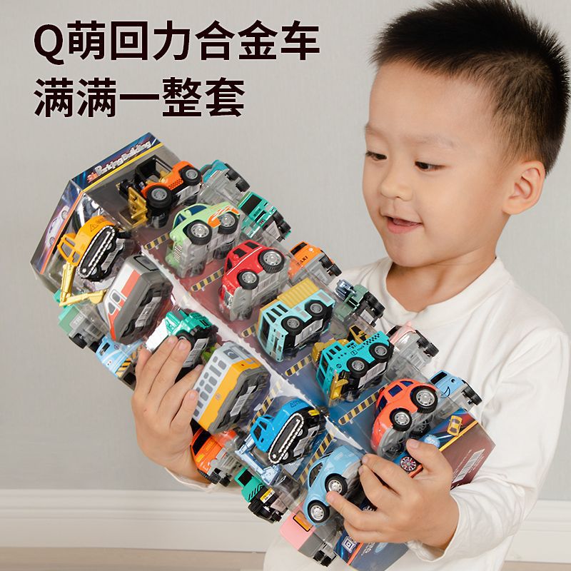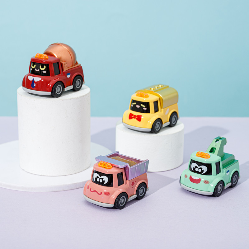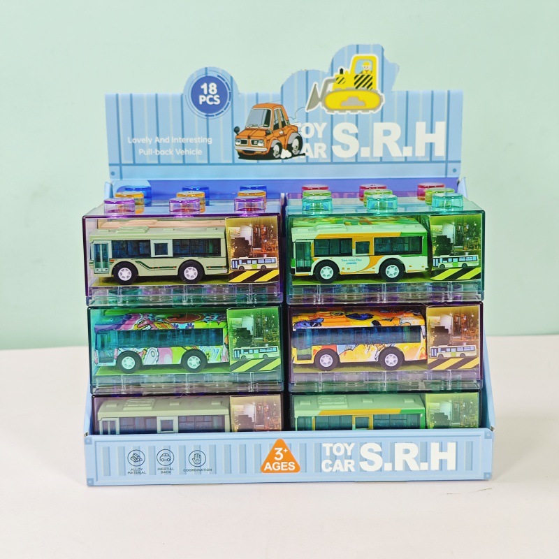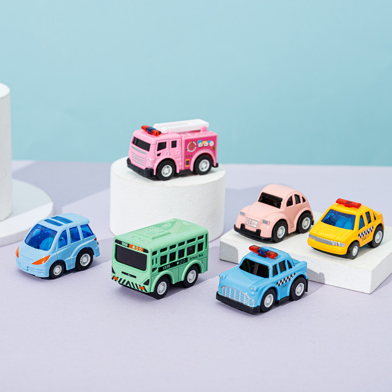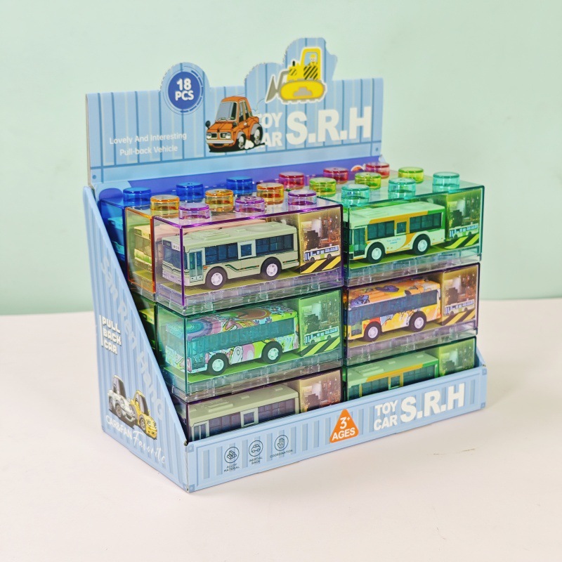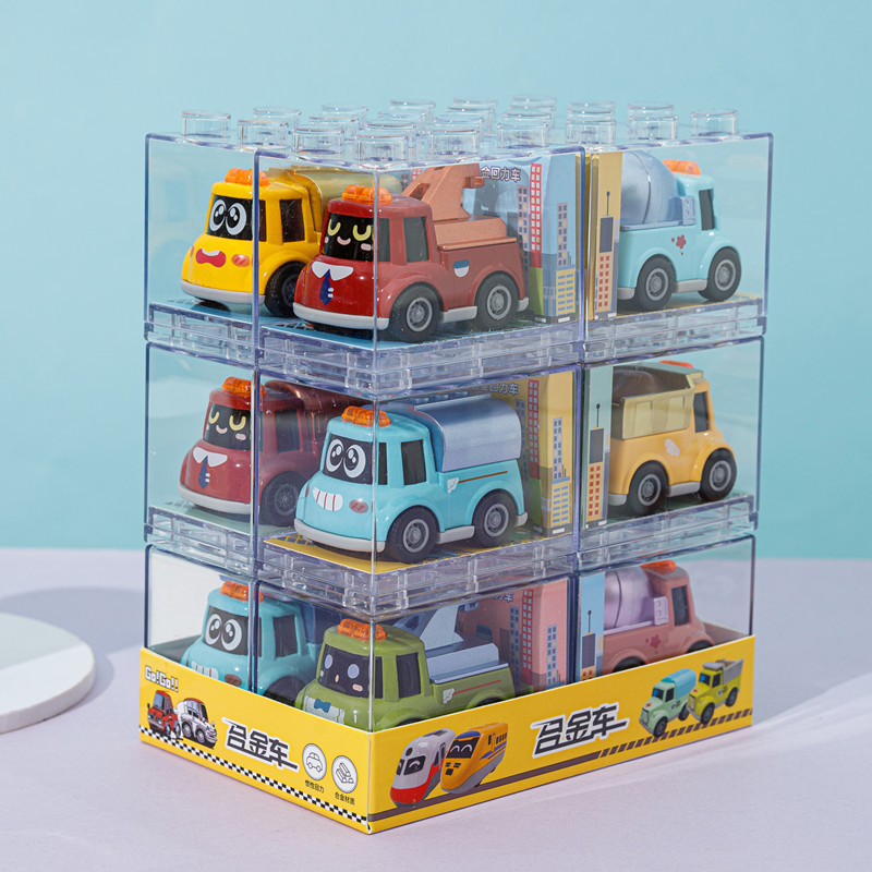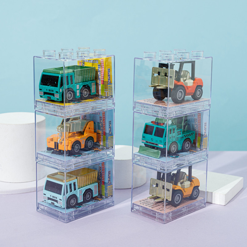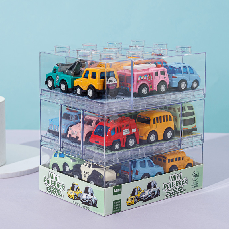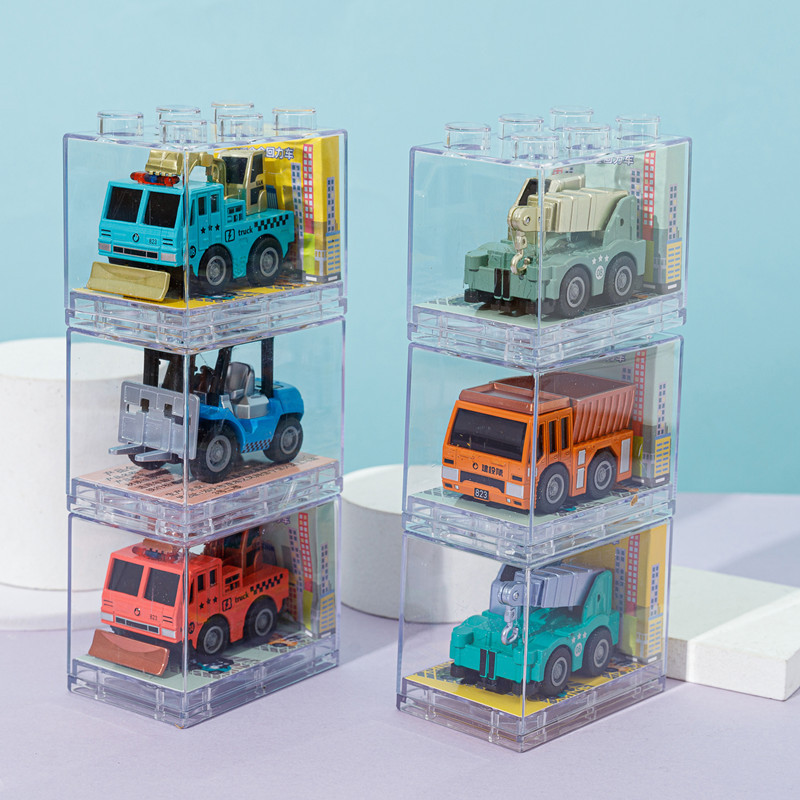 새로운 어린이 전기 도금 합금 장난감 창조적 인 스태킹 음악 백 포스 자동차 모델 투명 박스형 자동차 장면