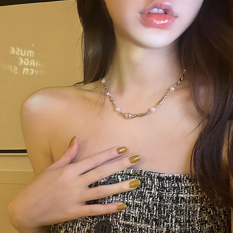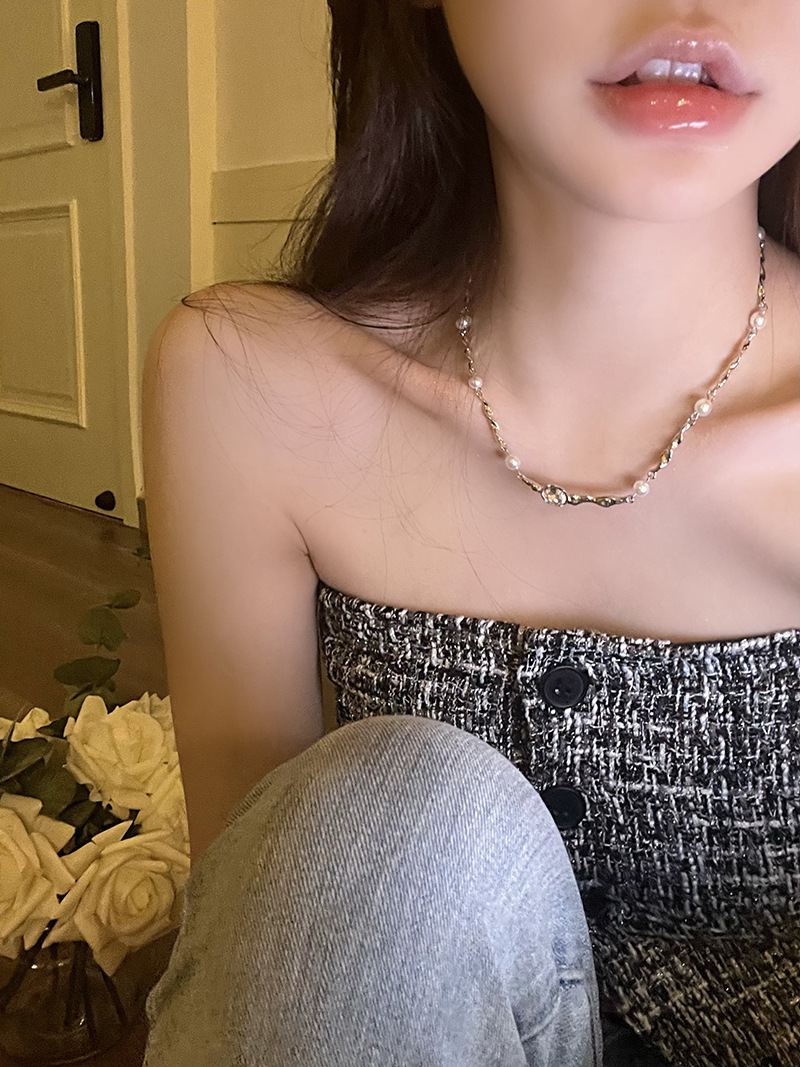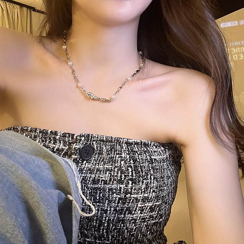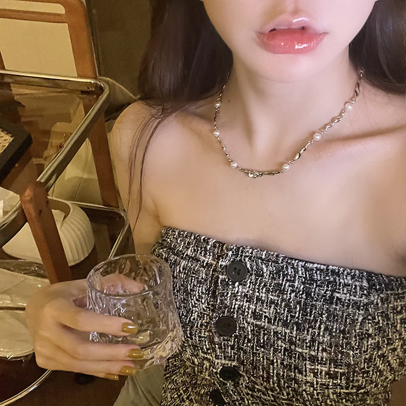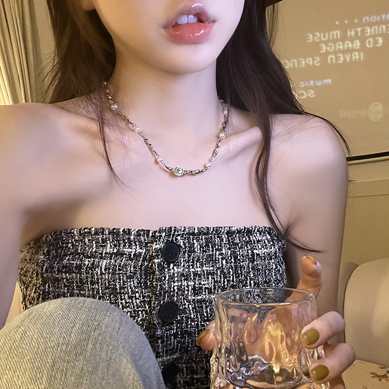 순수한 향신료 소녀 진주 지르콘 쇄골 체인 목걸이 소녀 고급 라이트 럭셔리 틈새 티타늄 스틸 목걸이