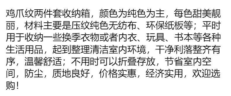 보관 및 마무리 의류 장난감 및 기타 생필품 부직포 닭 발톱 패턴 2 피스 보관 상자 보관 상자 제조 업체스토어 가기