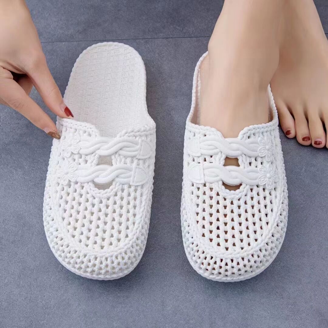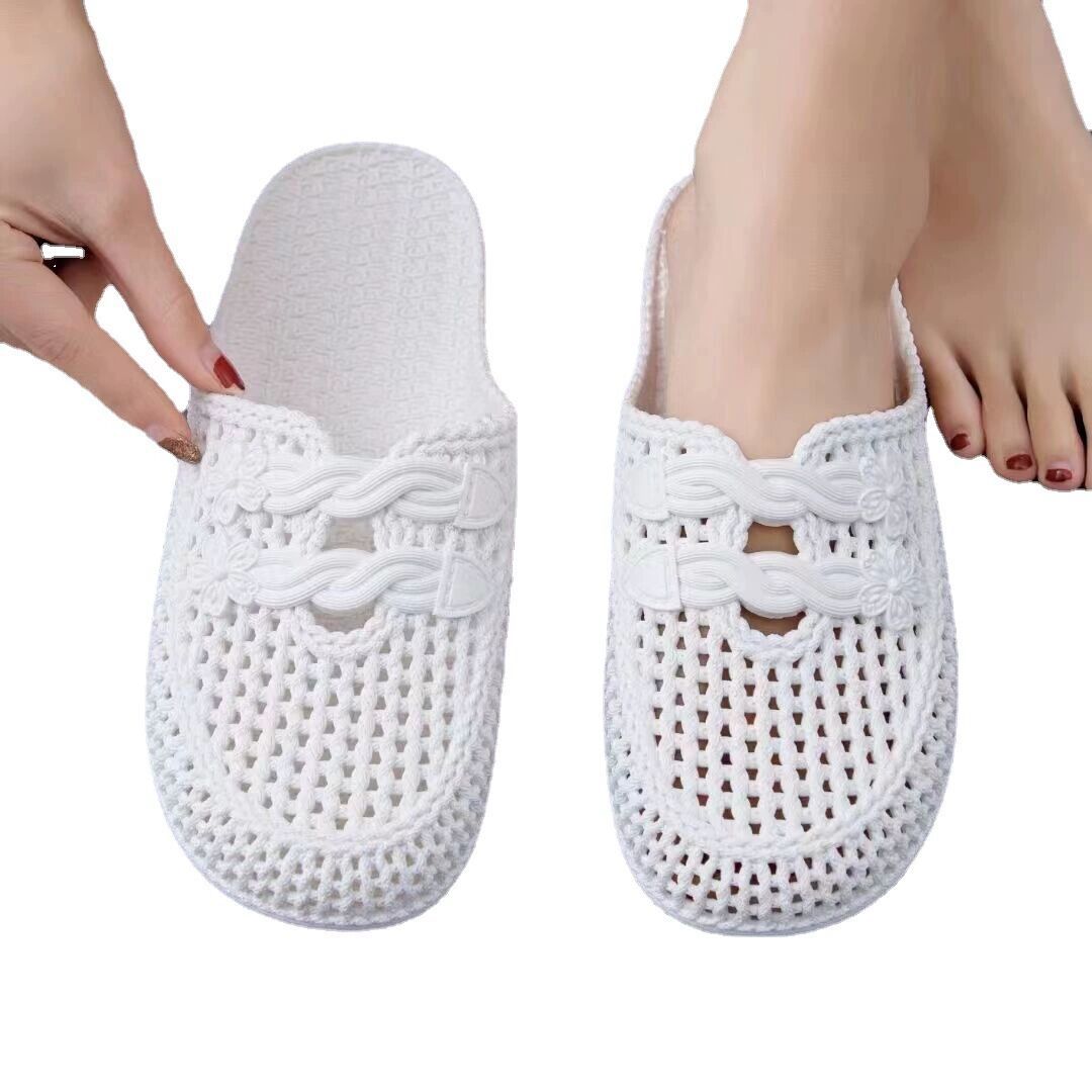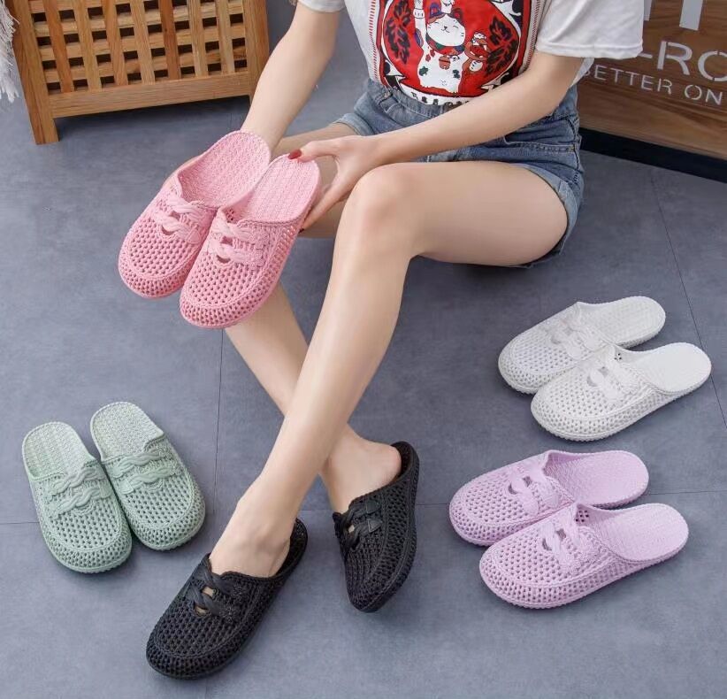 여름 샌들 여성용 앞코가 막힌 끈달린 외출용 비치 슈즈 구멍신 달콤한 플랫 슬리퍼 간호사용
