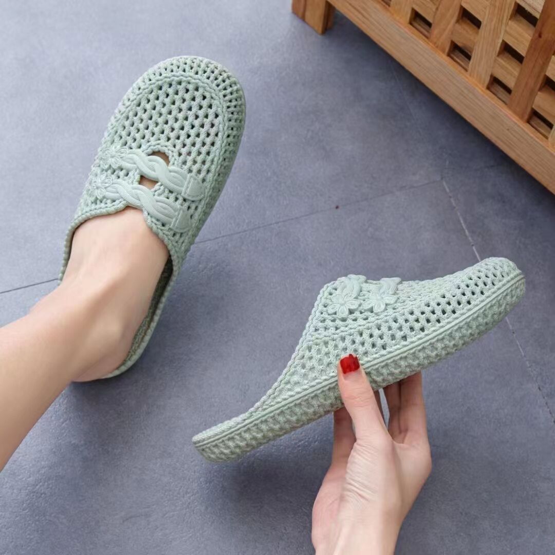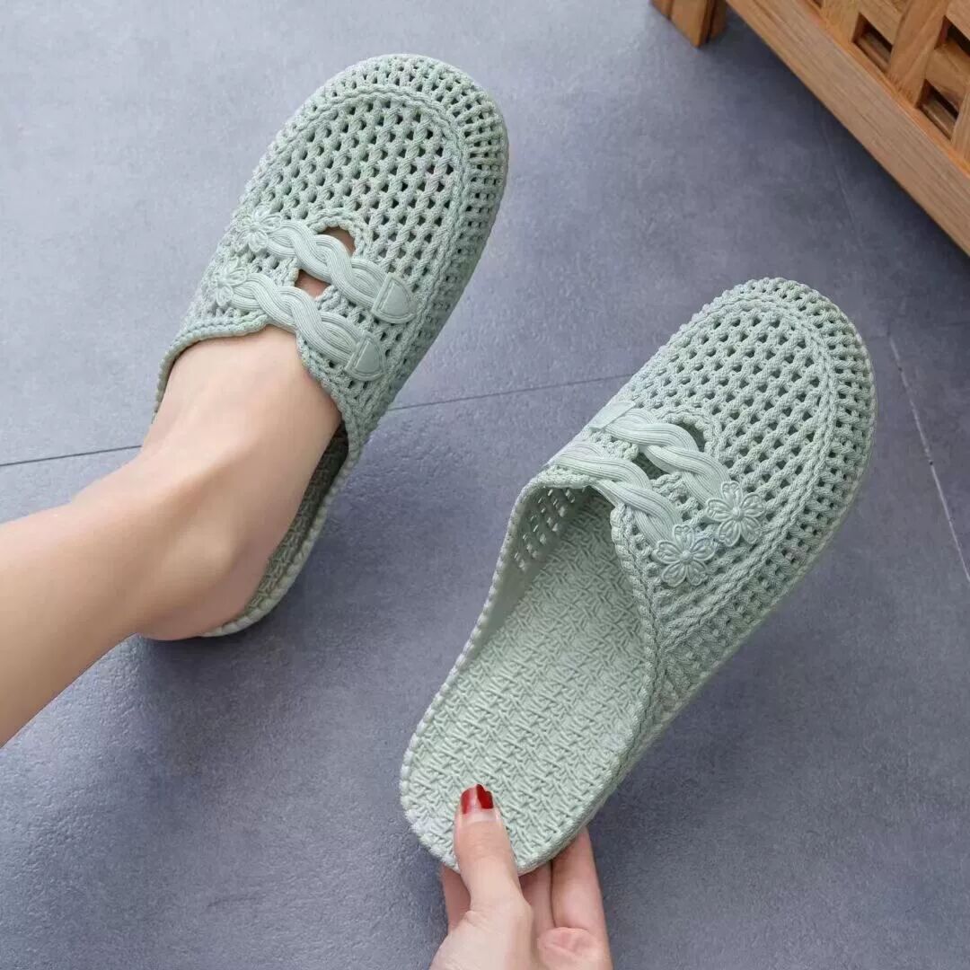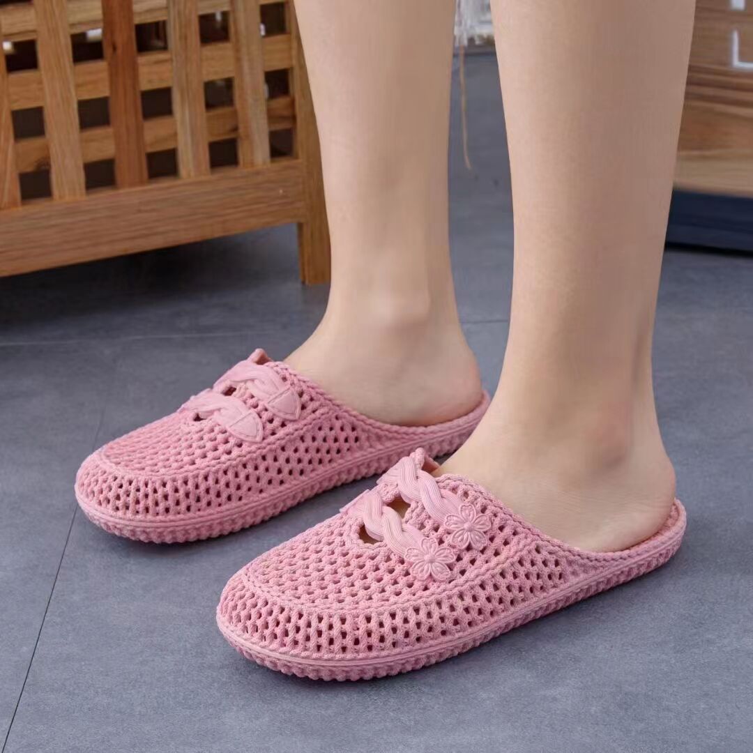 여름 샌들 여성용 앞코가 막힌 끈달린 외출용 비치 슈즈 구멍신 달콤한 플랫 슬리퍼 간호사용