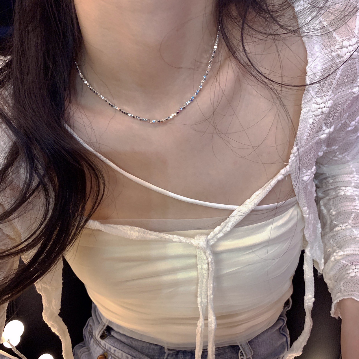인기있는 작은 쌀 구슬 반지 깨진 실버 목걸이 여성의 고급 디자인 감각 틈새 쇄골 체인 차가운 바람이 퇴색하지 않습니다