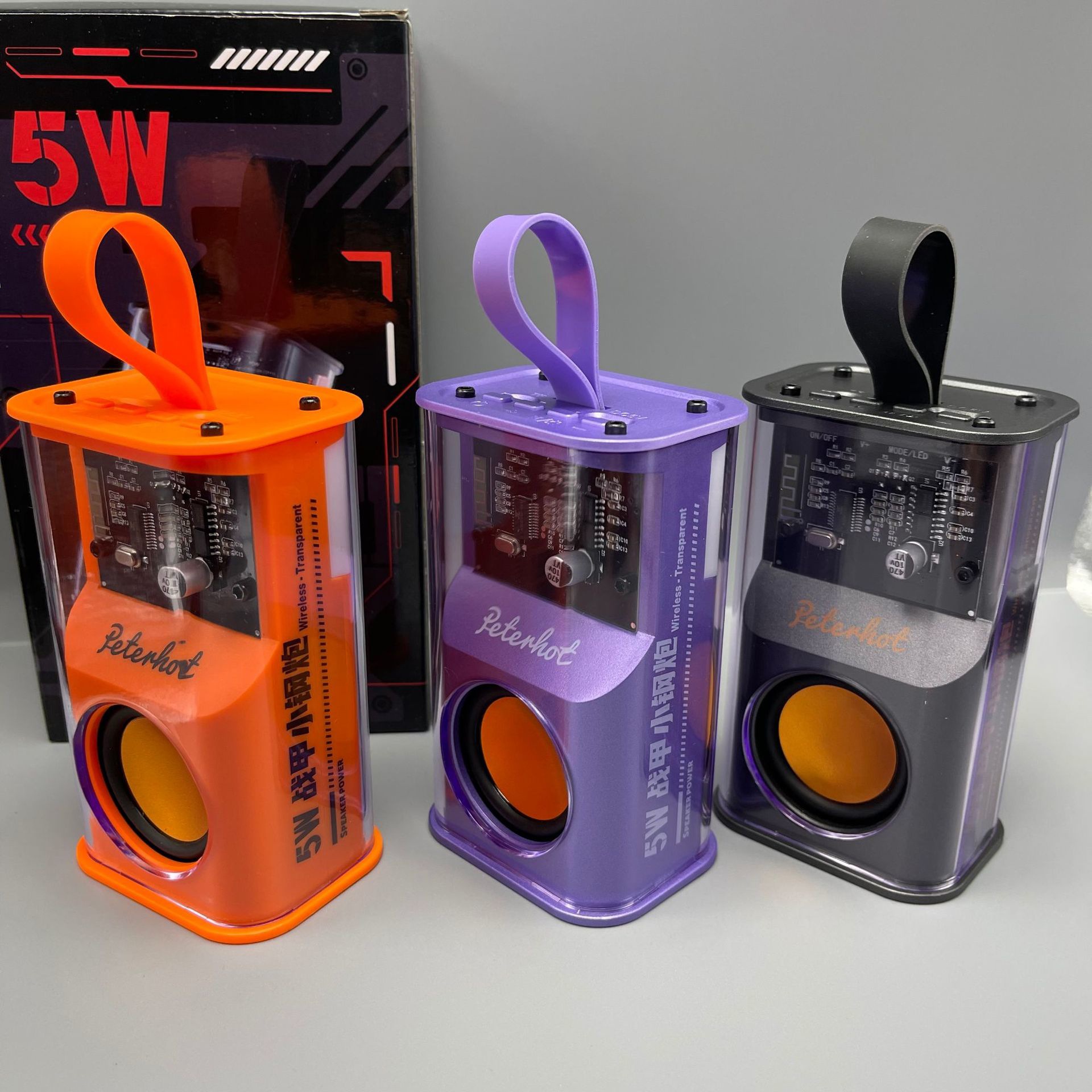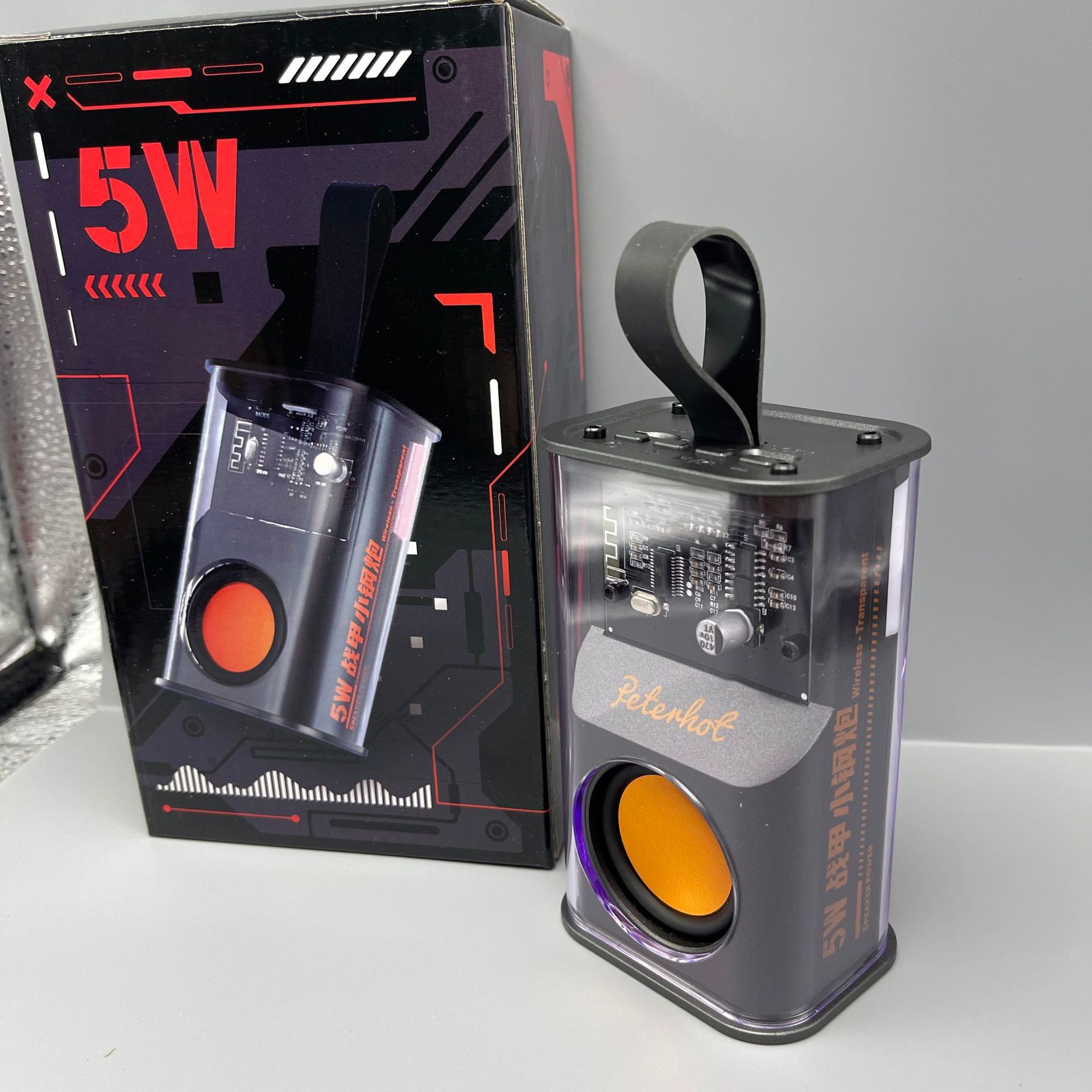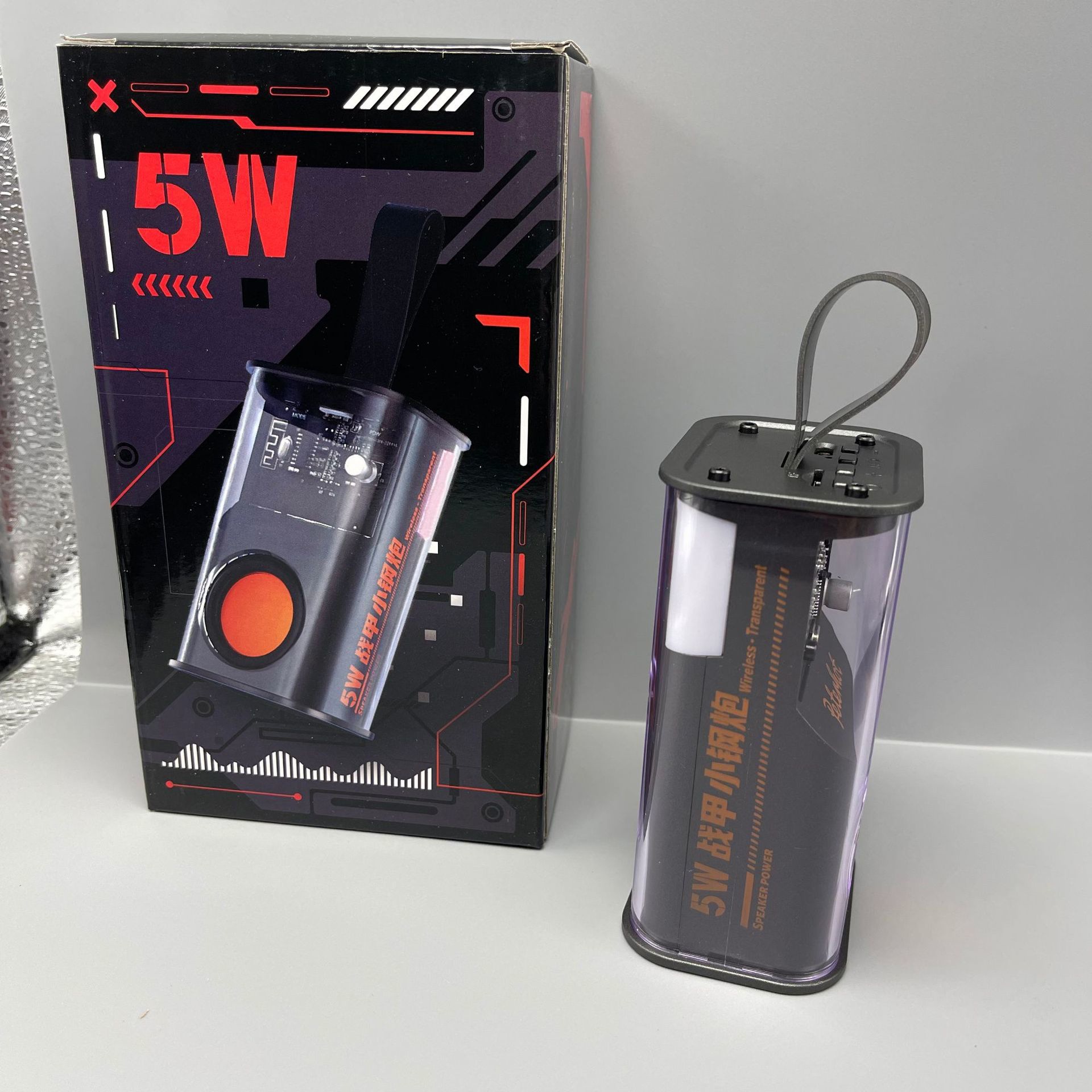 투명 메카 바람 5W 블루투스 스피커 미니 사운드 야외 휴대용 소형 스틸 캐논 무거운 서브 우퍼 다채로운 사운드