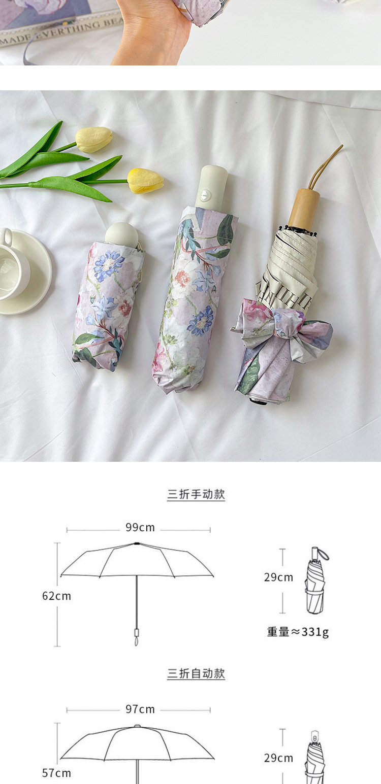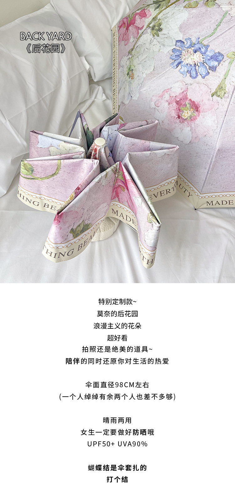고가의 레트로 유화 우산 여성용 맑고 비오는 이중 목적의 태양 우산 자외선 차단제 및 자외선 차단 완전 자동 차양 우산스토어 가기