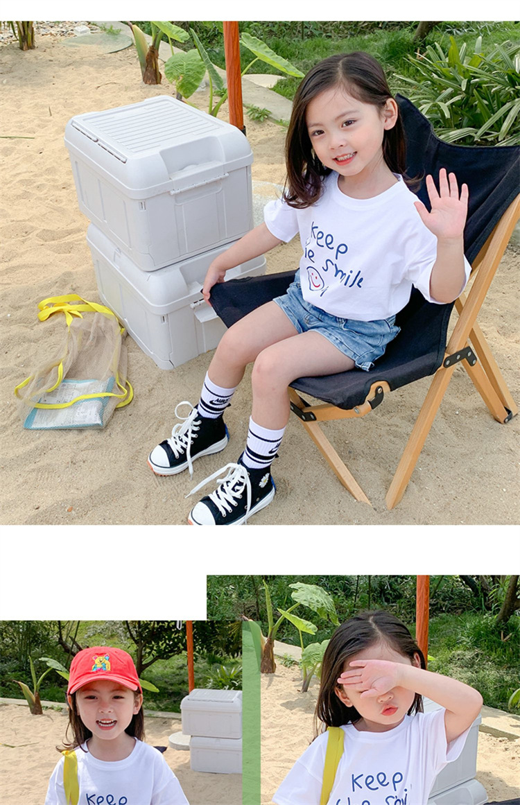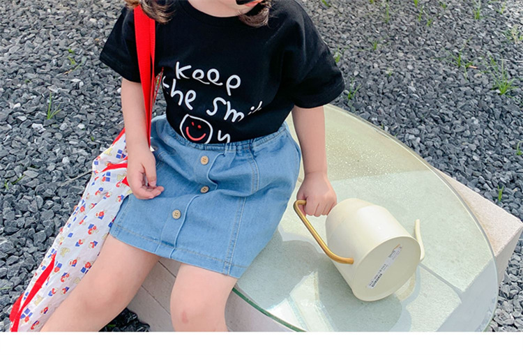 여아 반팔 트렌디 아동 티셔츠 여아 여름 느슨한 앞뒤 프린트 반팔 탑 트렌디 아동복