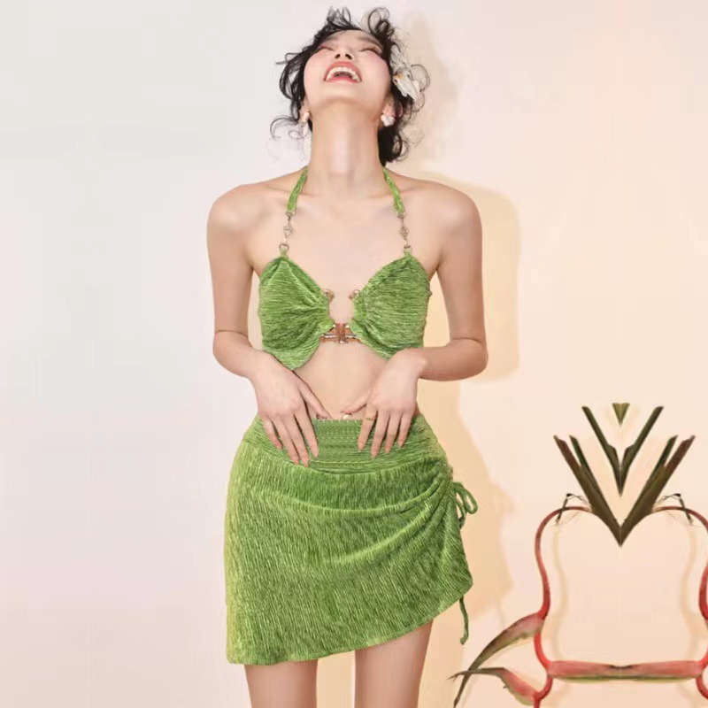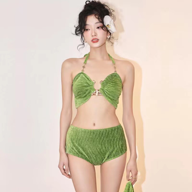 고급 벨벳 수영복 여성용 스플릿 비키니 섹시 퓨어 욕망 수영복 온천 3 종 세트 홀리데이 비치