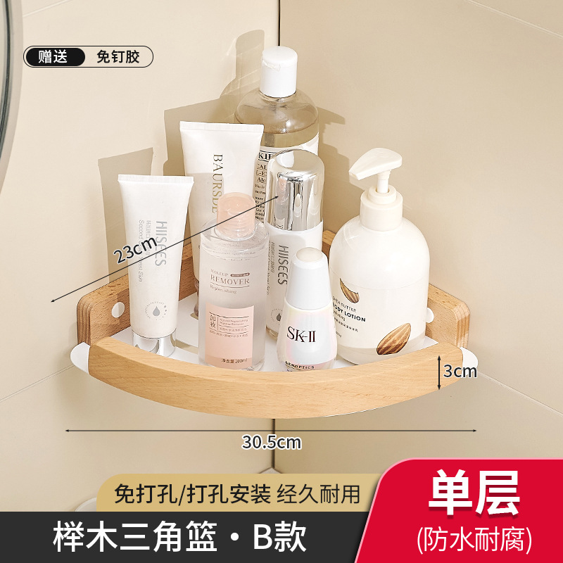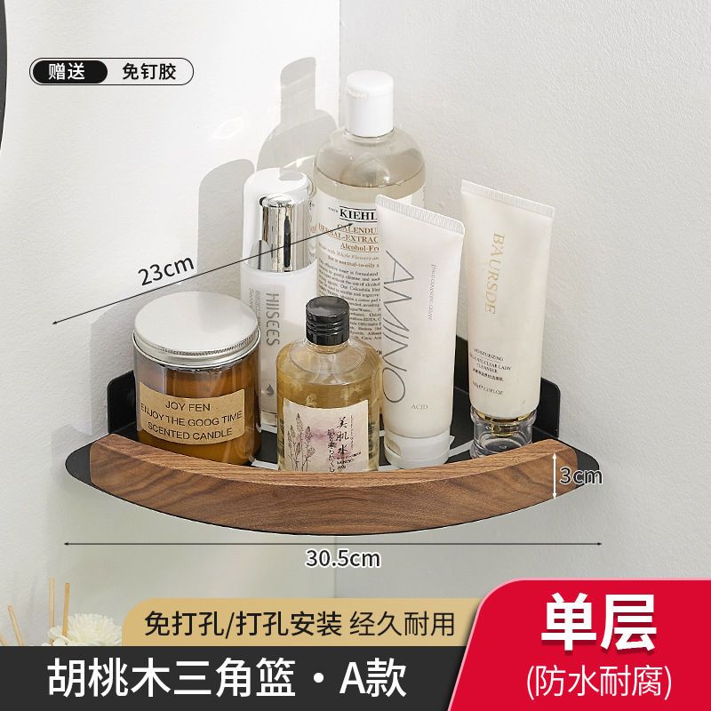 블랙 호두 욕실 랙 화장실 단단한 나무 삼각형 바구니 구멍없는 가벼운 고급 화장실 코너 보관 랙