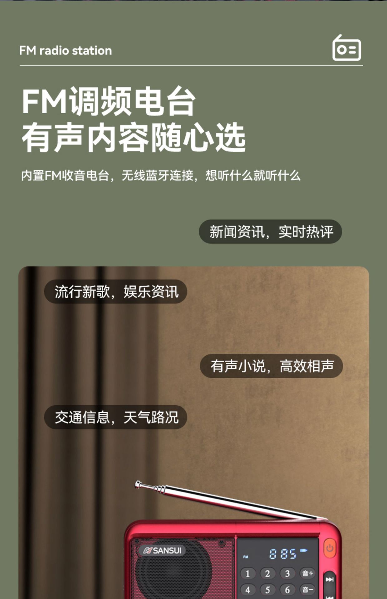 노인용 산슈 F33 라디오 휴대용 소형 블루투스 스피커 스테레오 카드 워크맨 플레이어 스토리텔링
