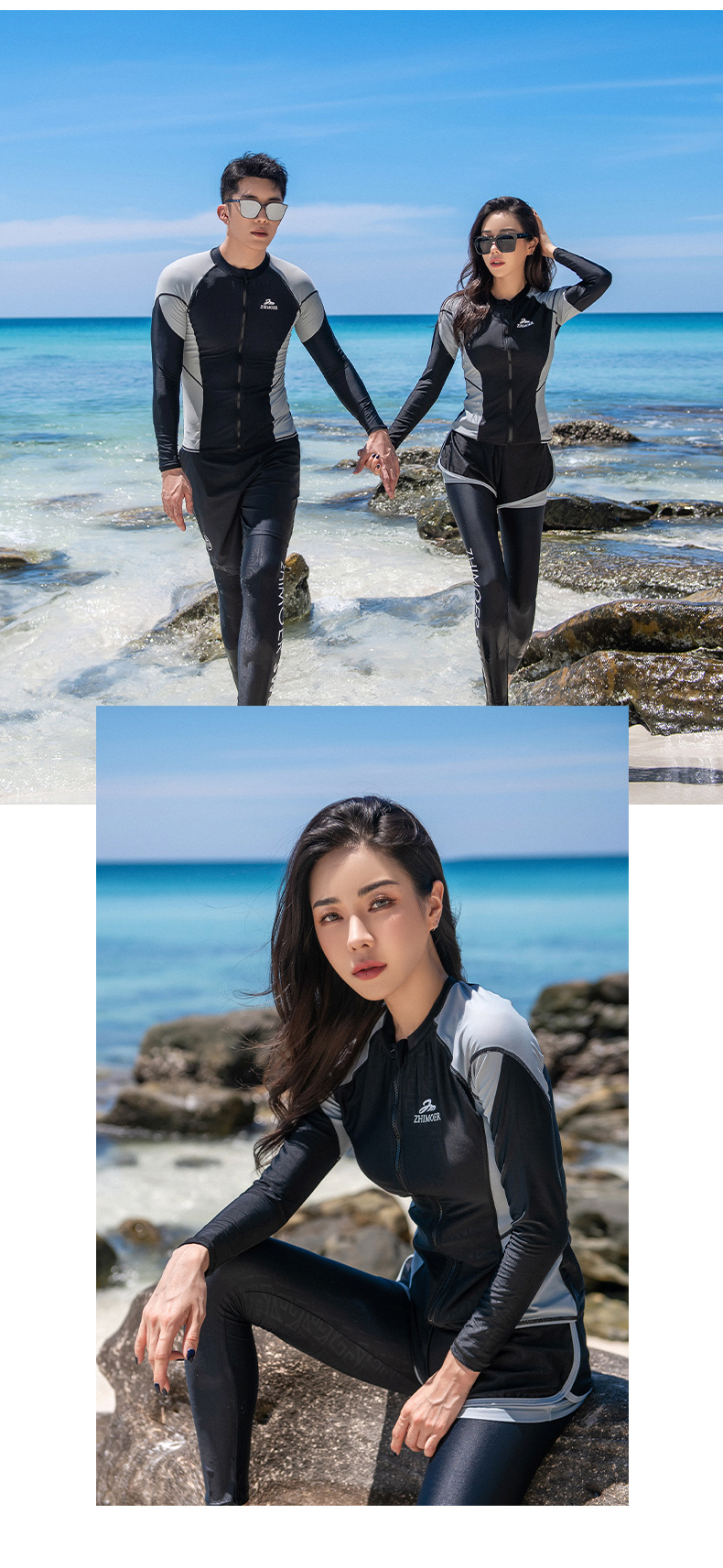 다이빙 세트 여자의 긴 소매 분할 자외선 차단제 스노클링 수영복 커플의 세트 2023 서핑 남자의 긴 소매 바지 해파리 세트스토어 가기