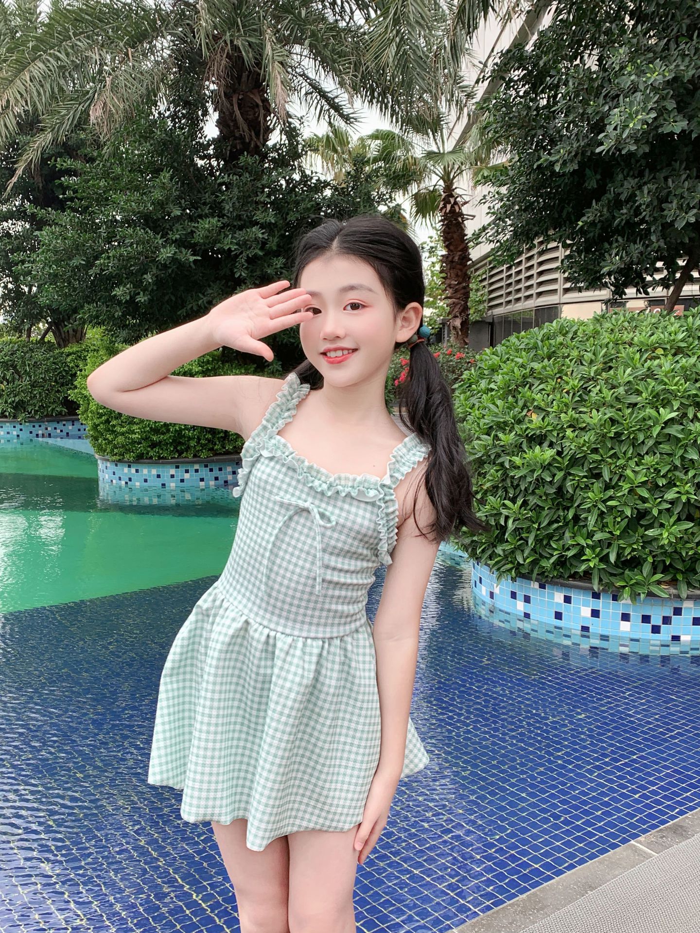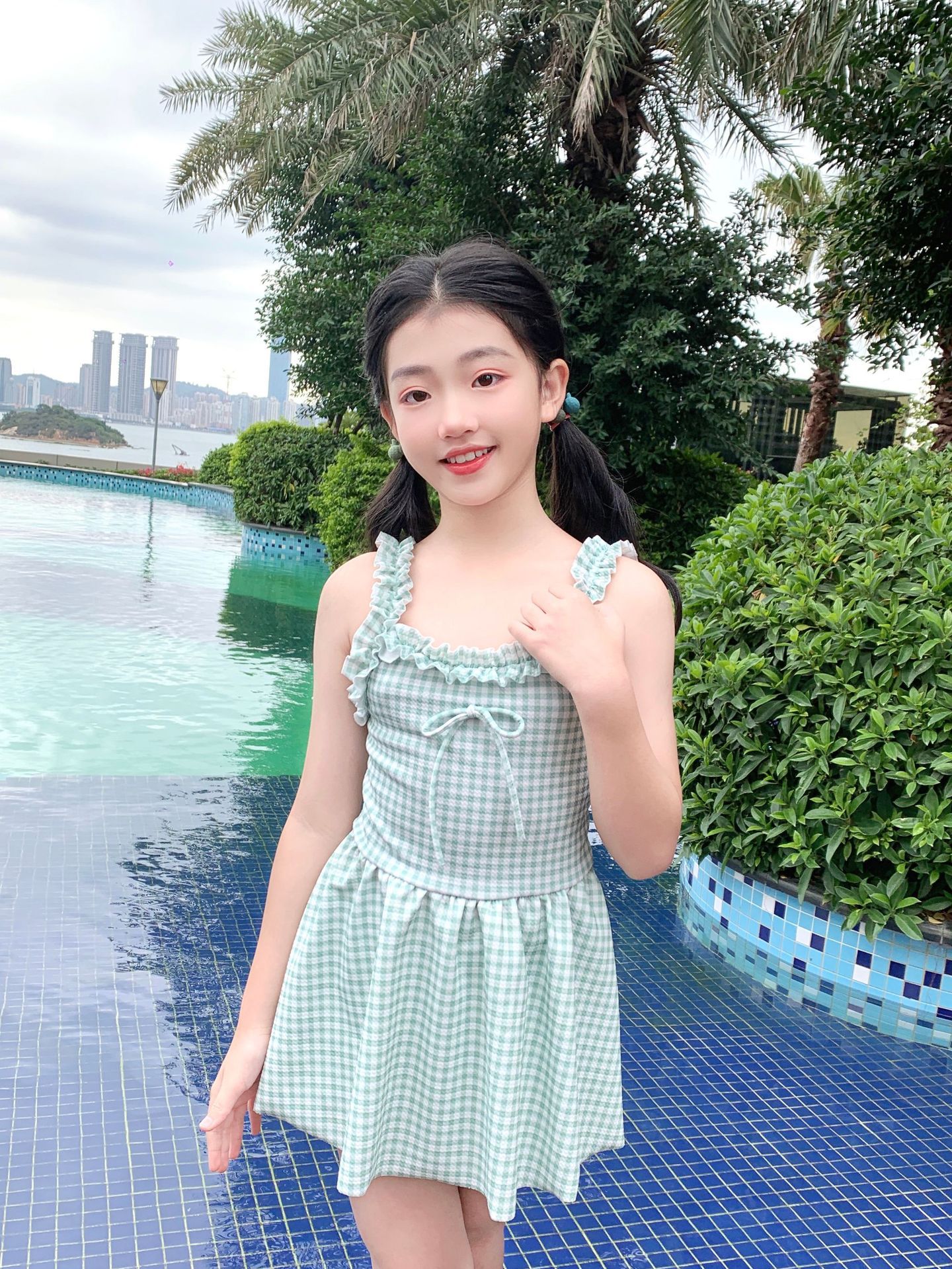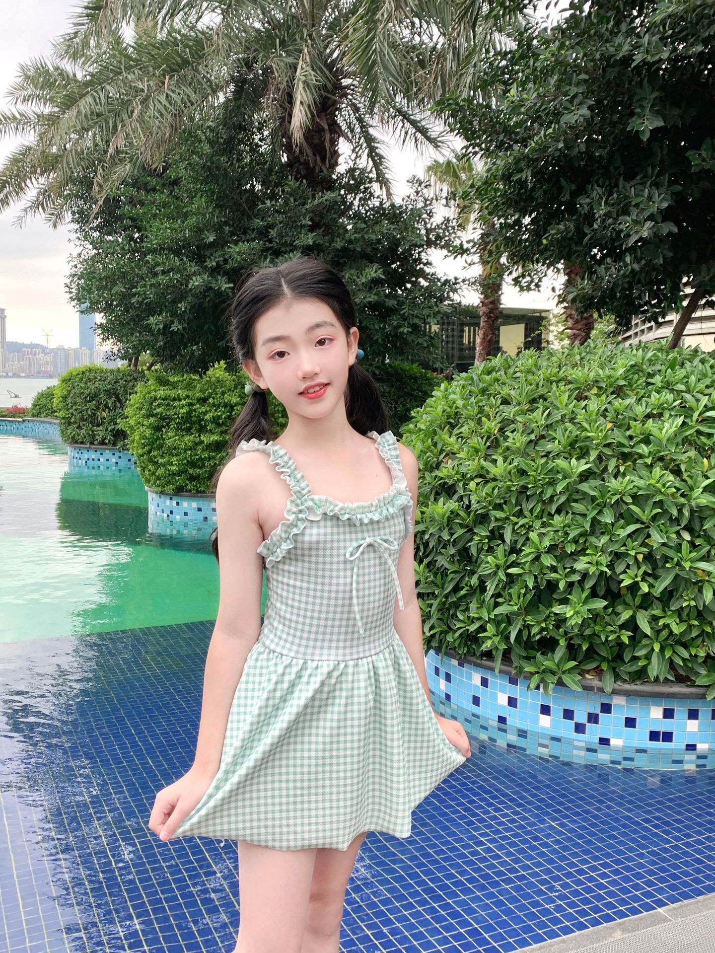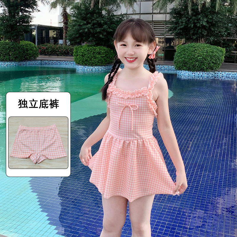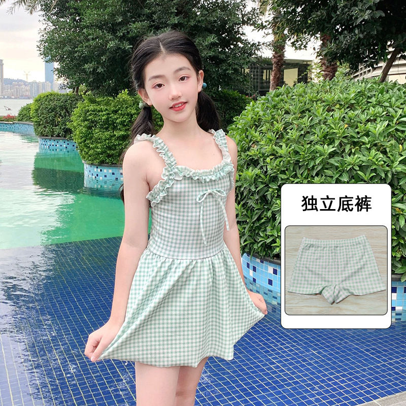 여자 수영복 한국 스타일 격자 무늬 학생 소녀 2024 새로운 여름 민소매 원피스 스커트 스타일 작은 신선한 수영복