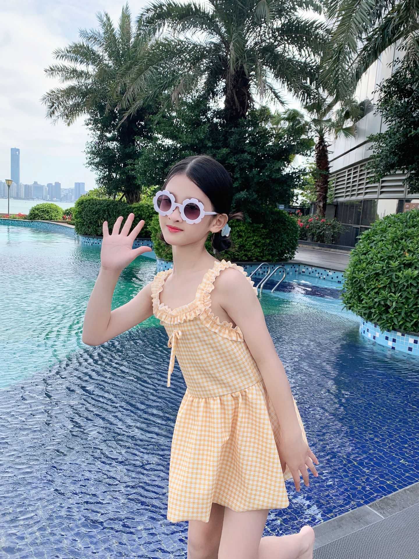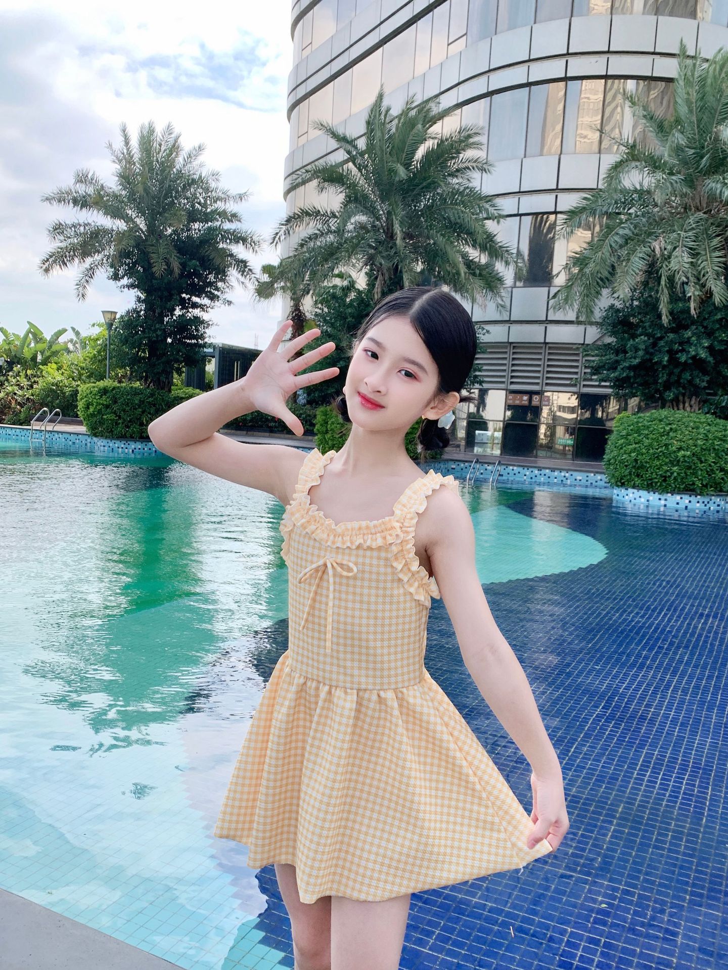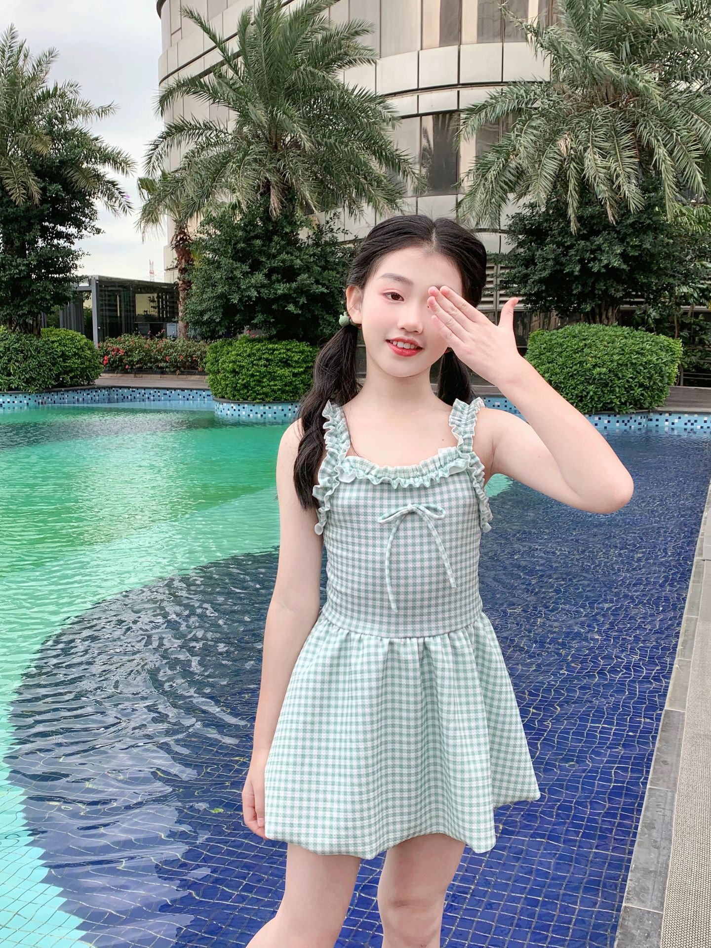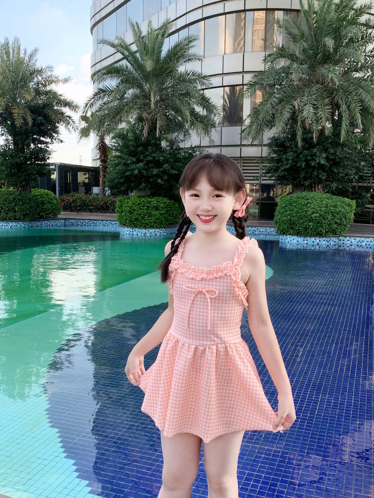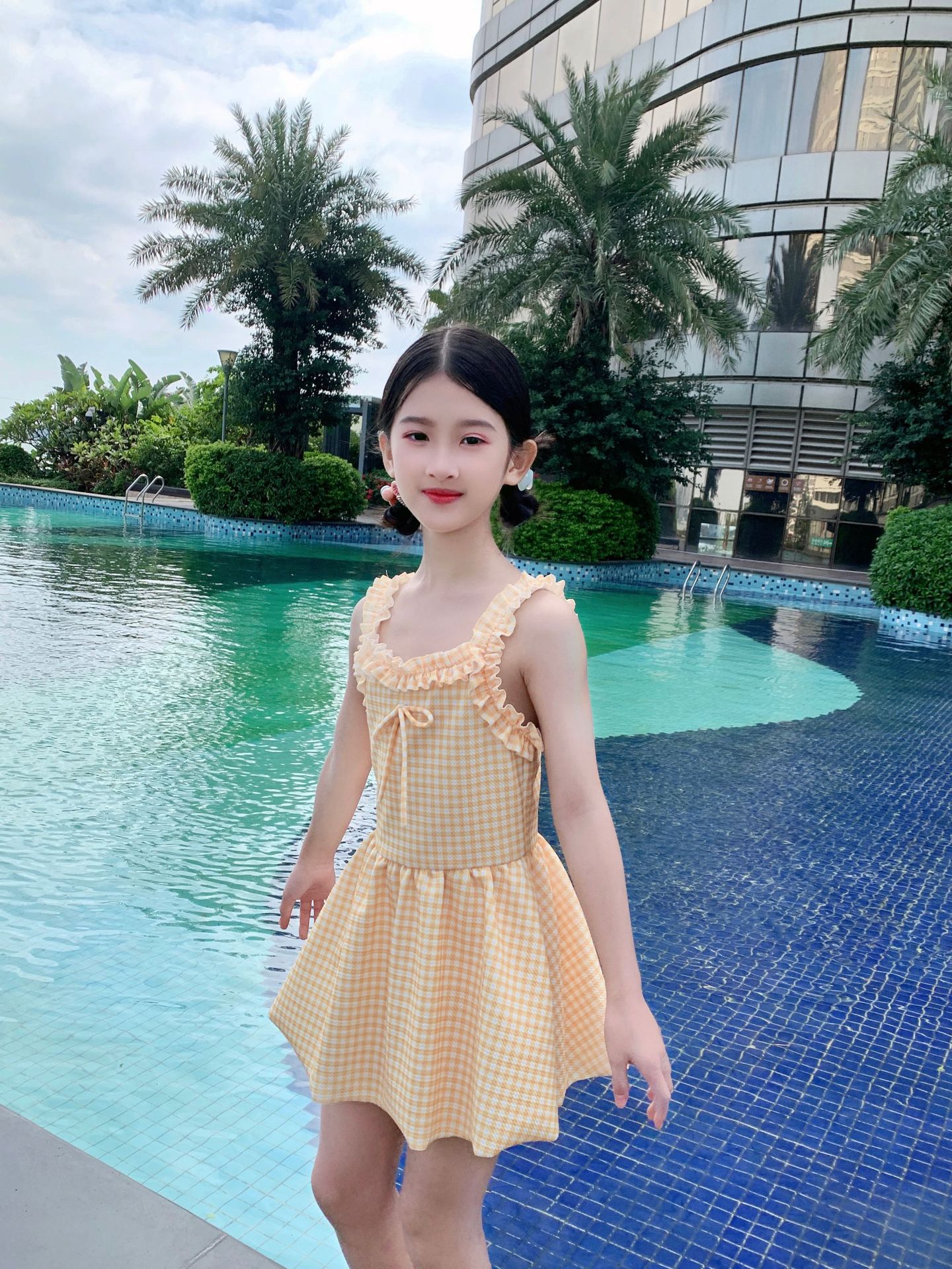 여자 수영복 한국 스타일 격자 무늬 학생 소녀 2024 새로운 여름 민소매 원피스 스커트 스타일 작은 신선한 수영복