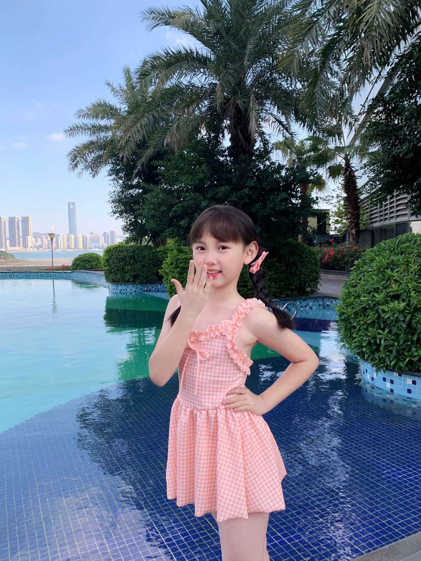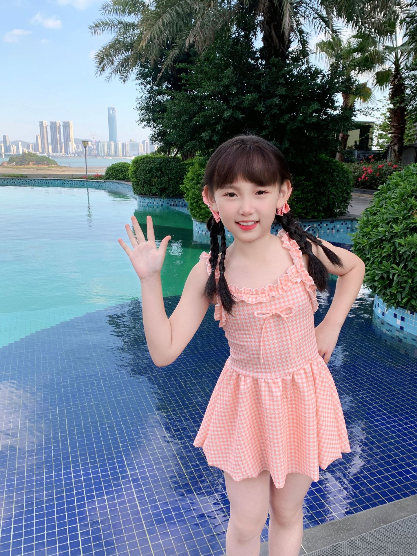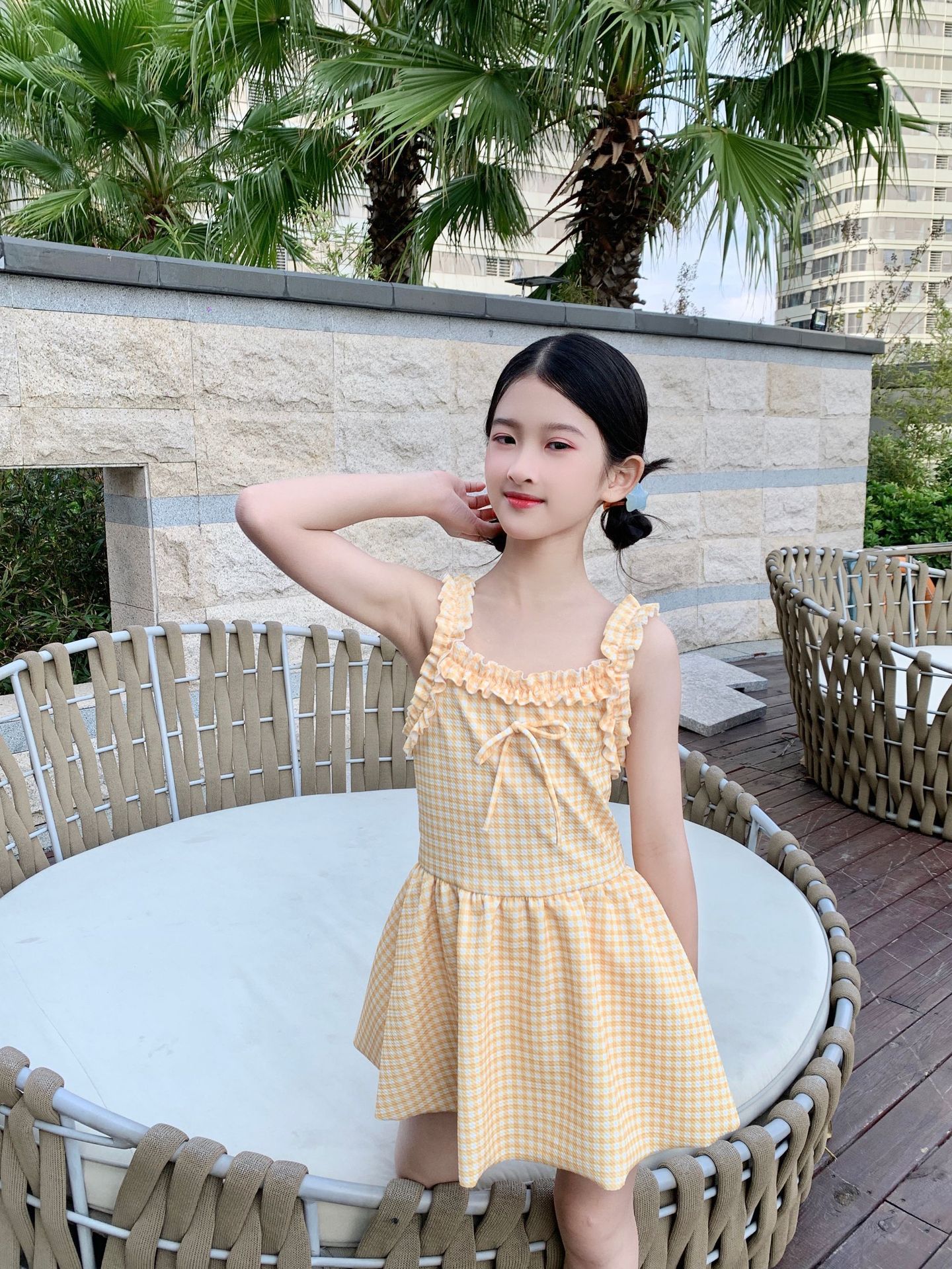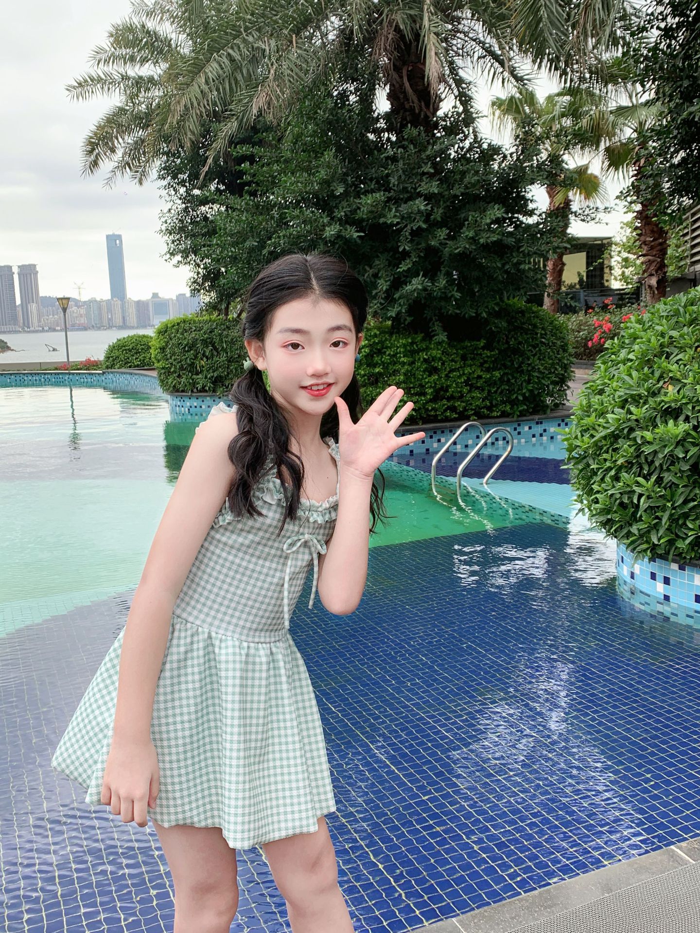 여자 수영복 한국 스타일 격자 무늬 학생 소녀 2024 새로운 여름 민소매 원피스 스커트 스타일 작은 신선한 수영복