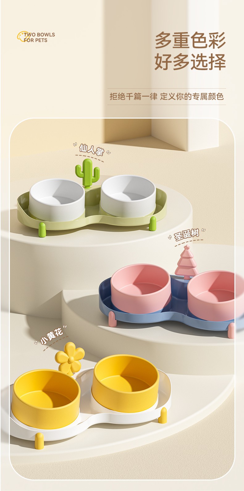 뉴 펫 소형 신선한 세라믹 고가 더블 볼 개 노크 방지 수유 볼 고양이 밥그릇 마시는 개 사료 그릇