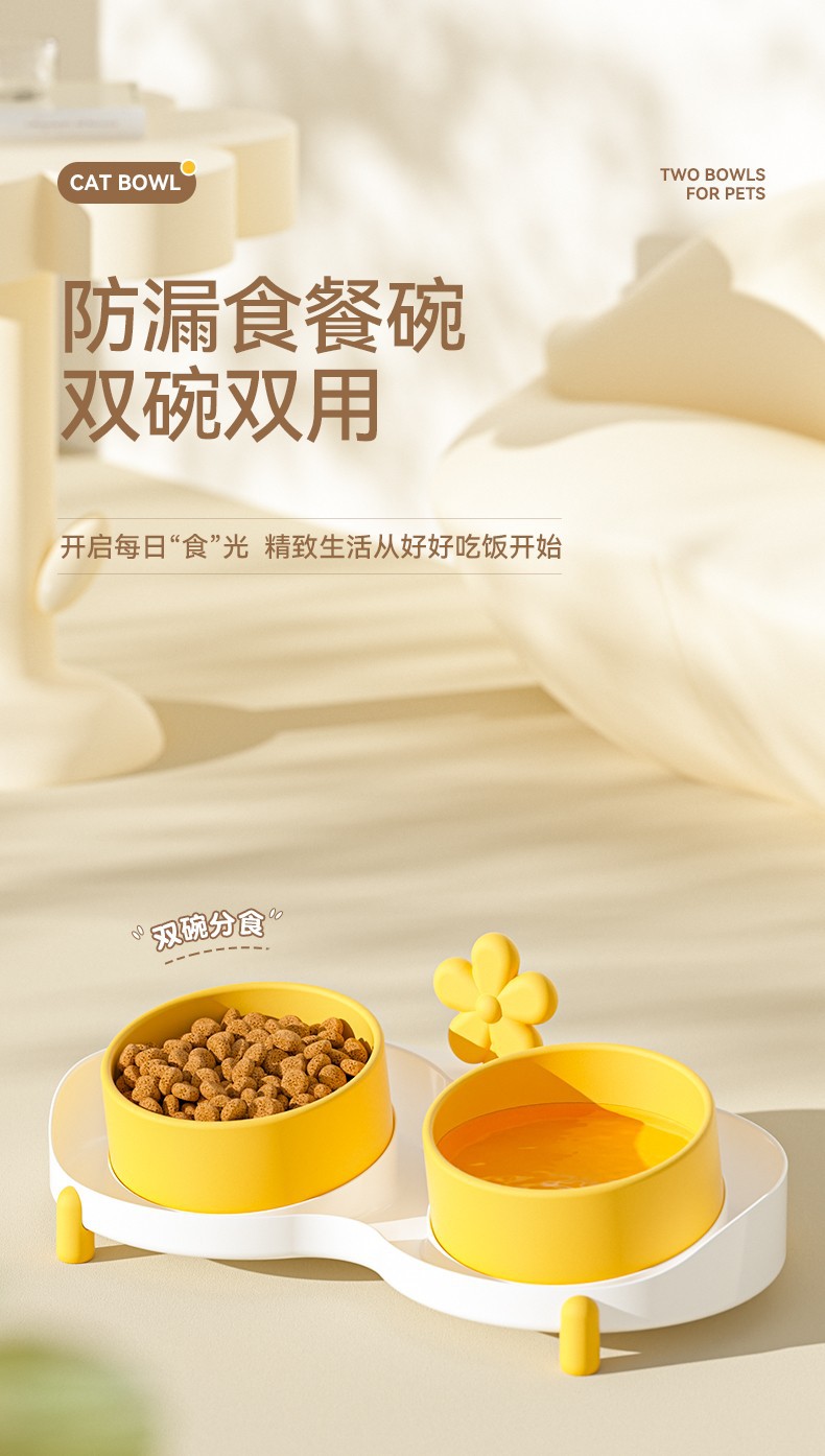 뉴 펫 소형 신선한 세라믹 고가 더블 볼 개 노크 방지 수유 볼 고양이 밥그릇 마시는 개 사료 그릇스토어 가기