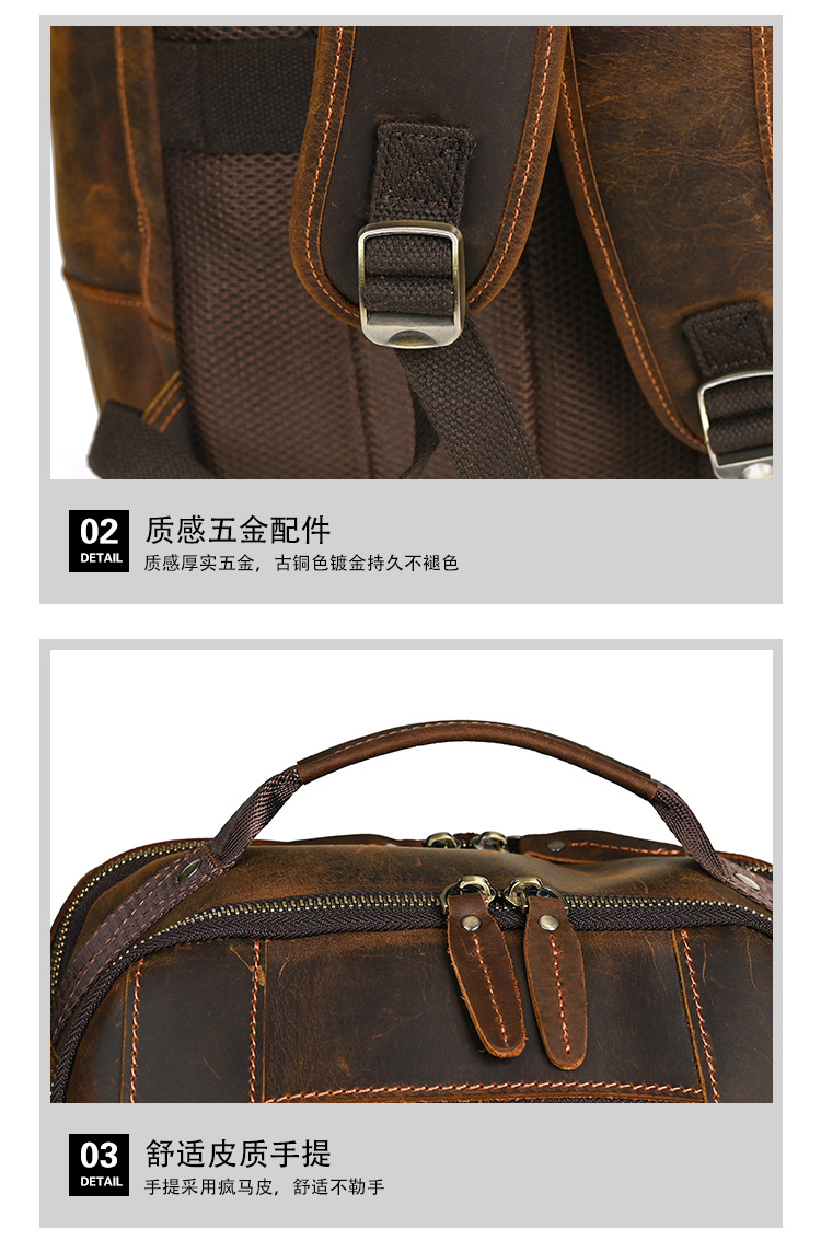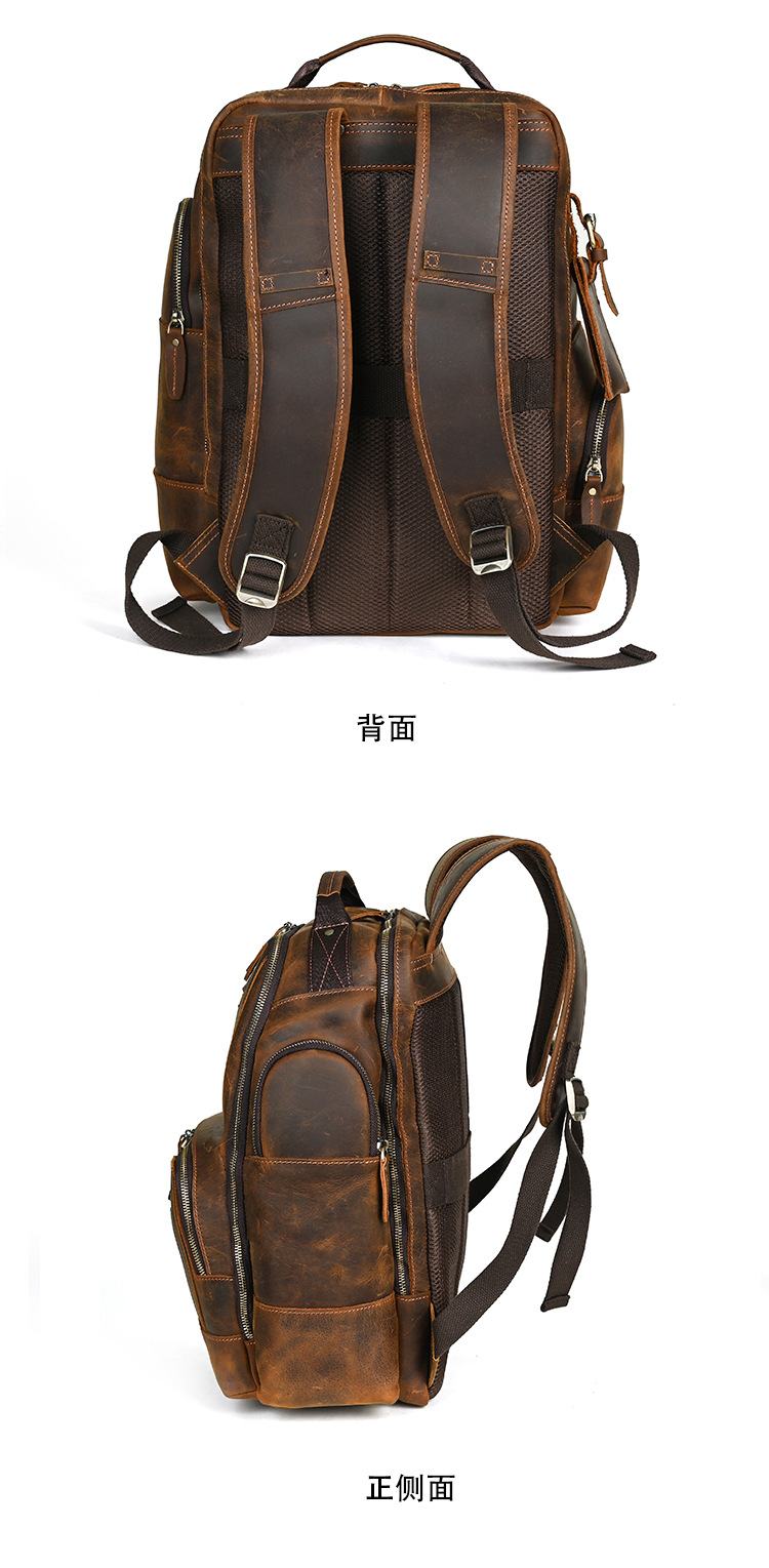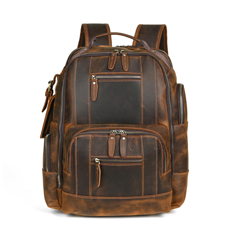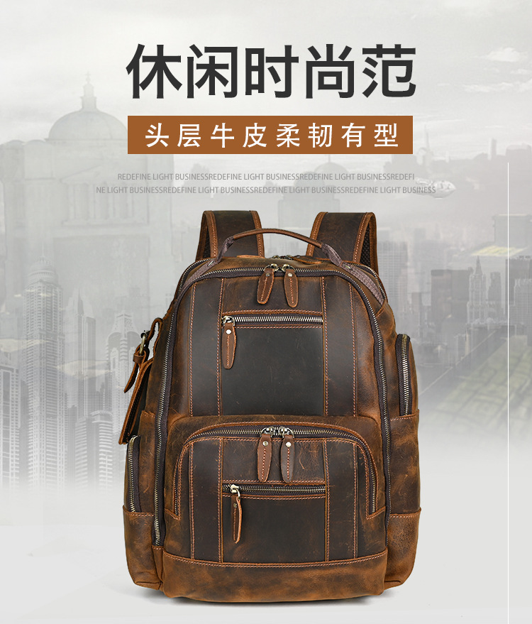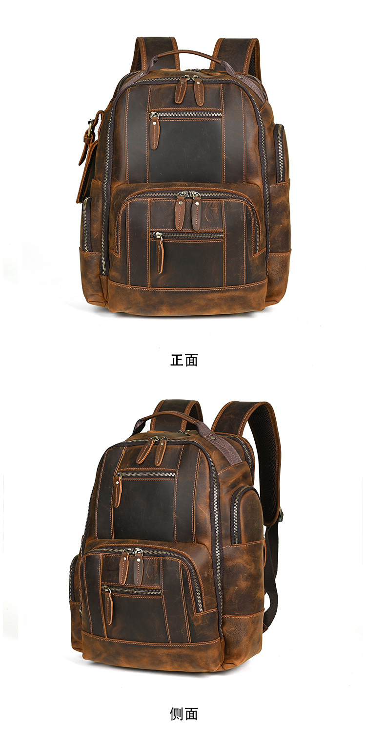 미친 말 가죽 남자의 정품 가죽 배낭 탑 레이어 소가죽 유행 복고풍 비즈니스 캐주얼 대용량 배낭스토어 가기