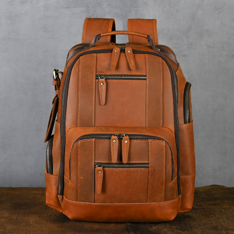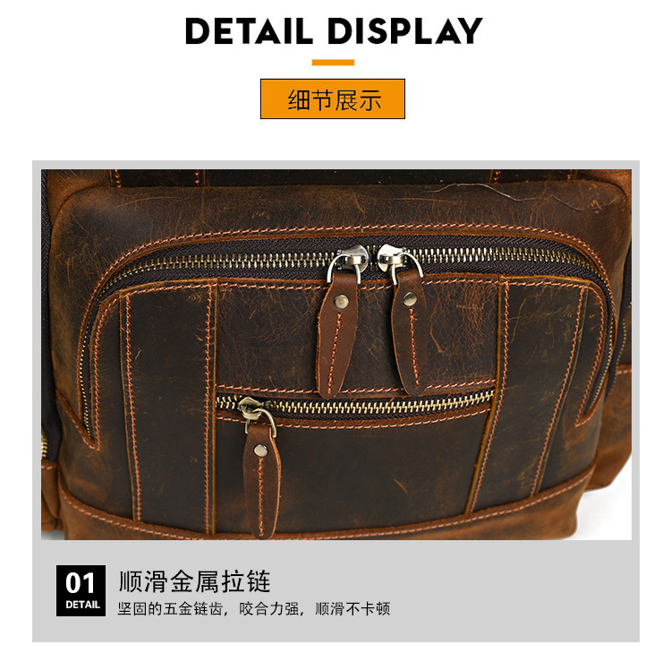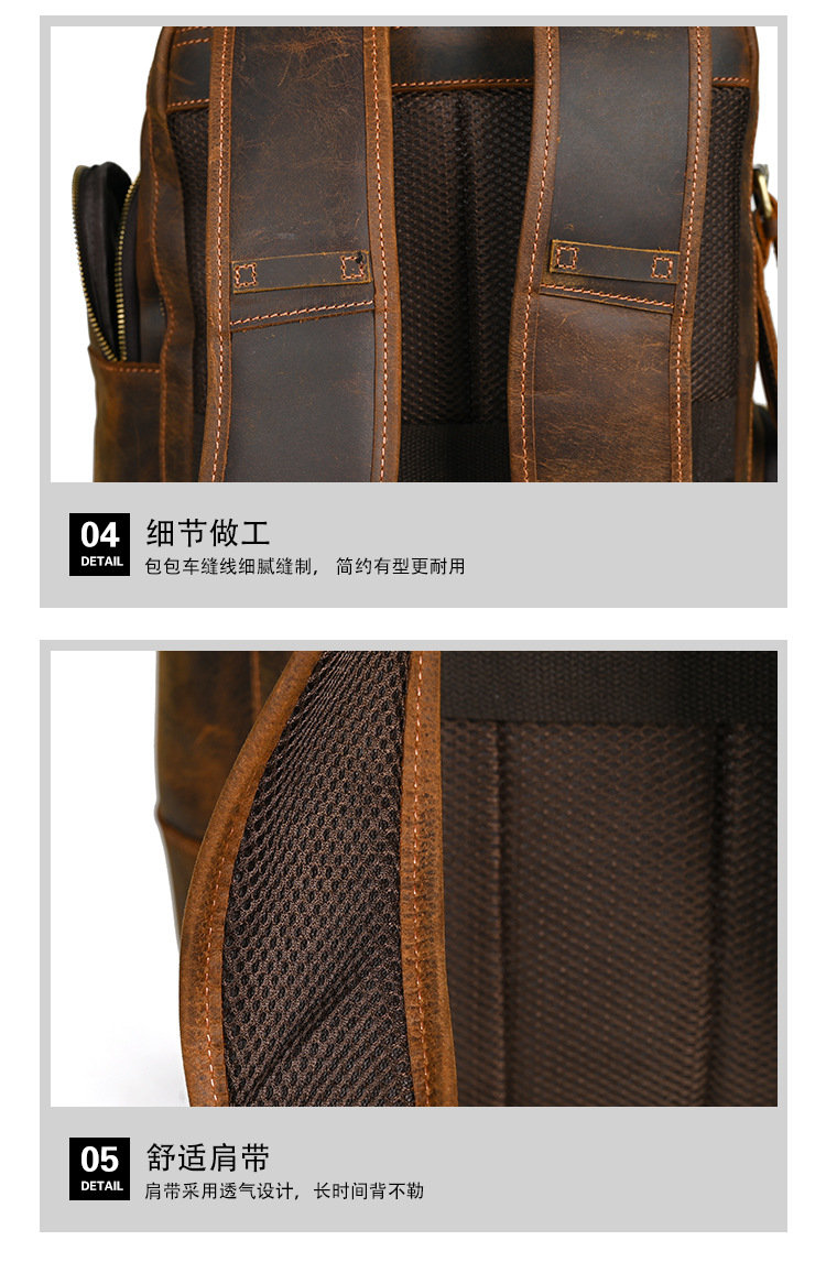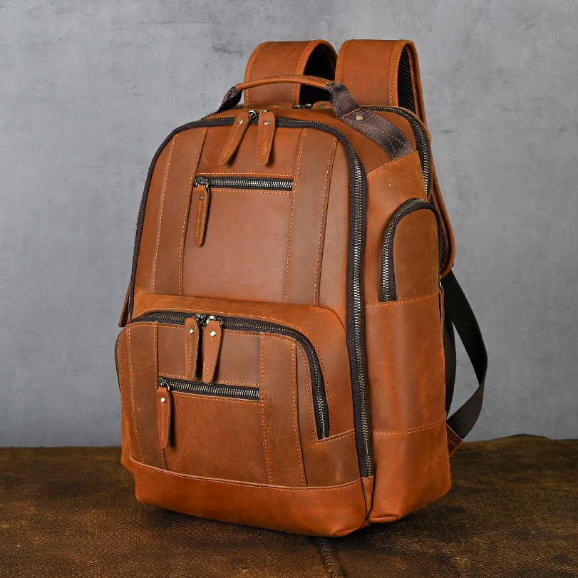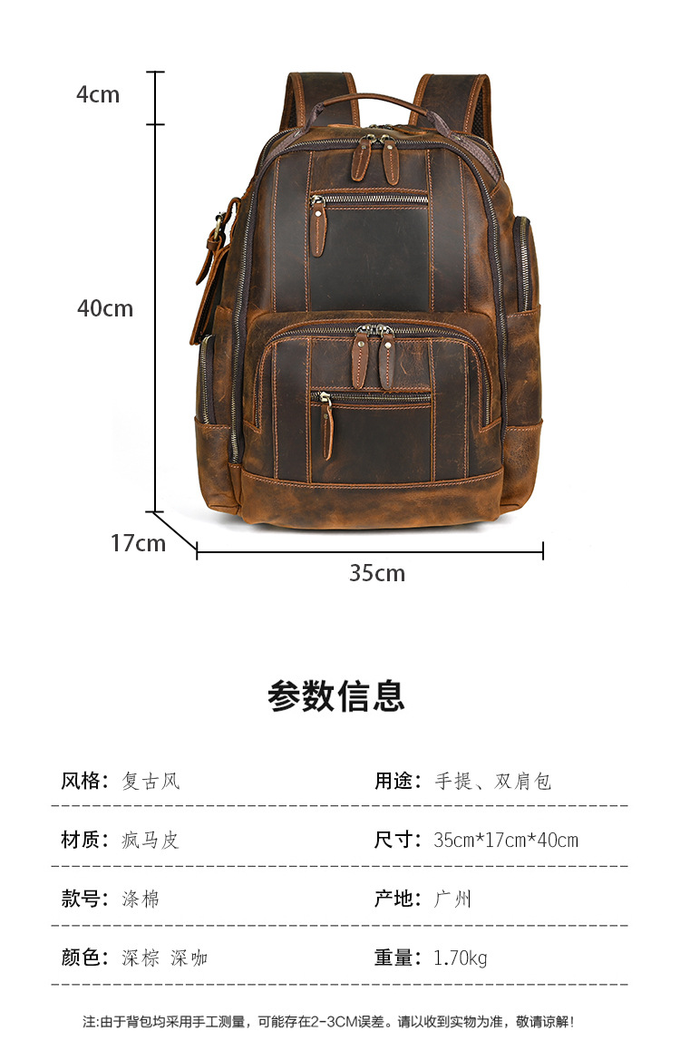 미친 말 가죽 남자의 정품 가죽 배낭 탑 레이어 소가죽 유행 복고풍 비즈니스 캐주얼 대용량 배낭스토어 가기
