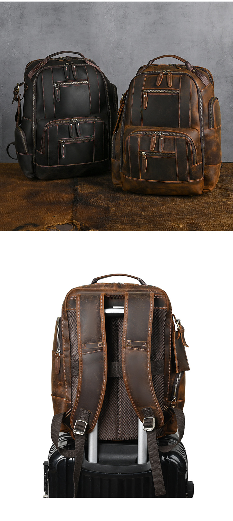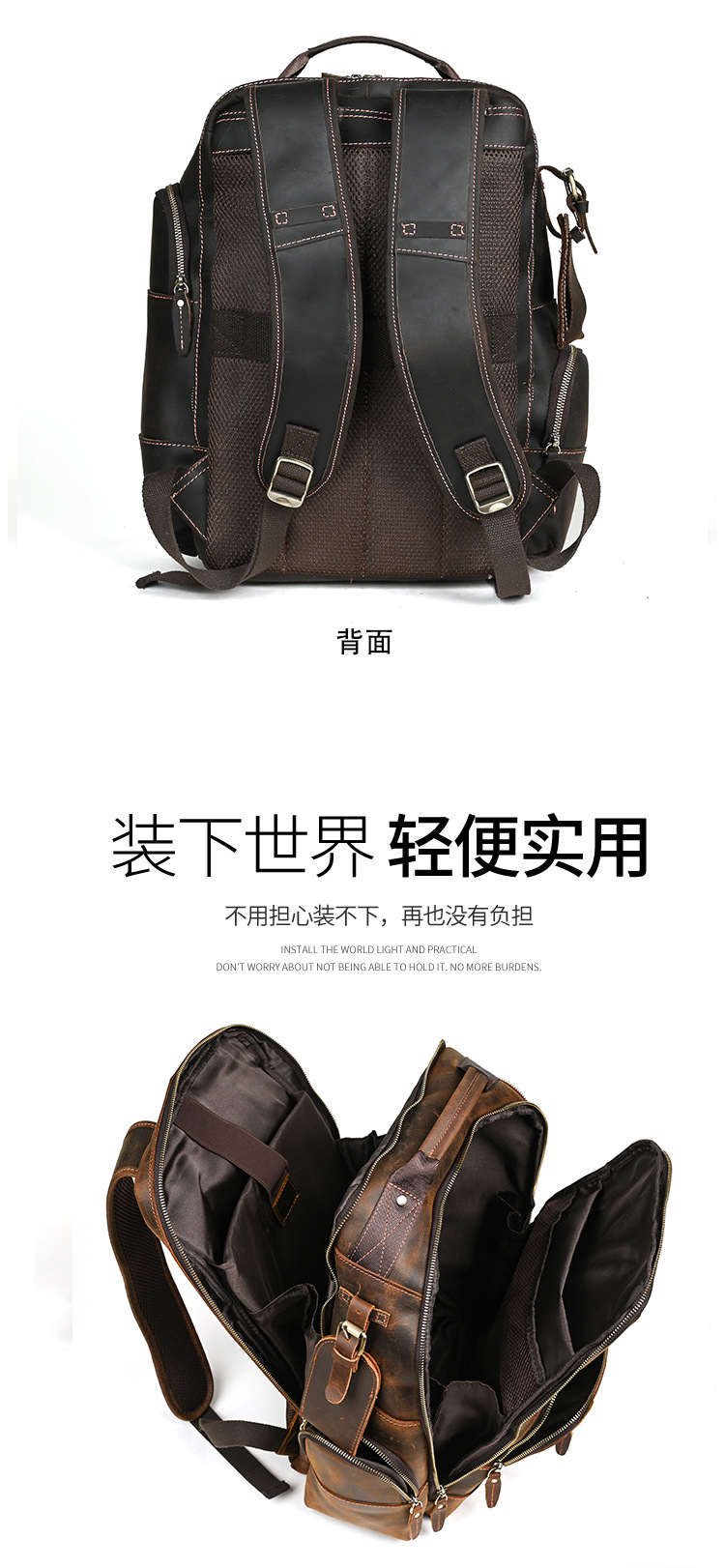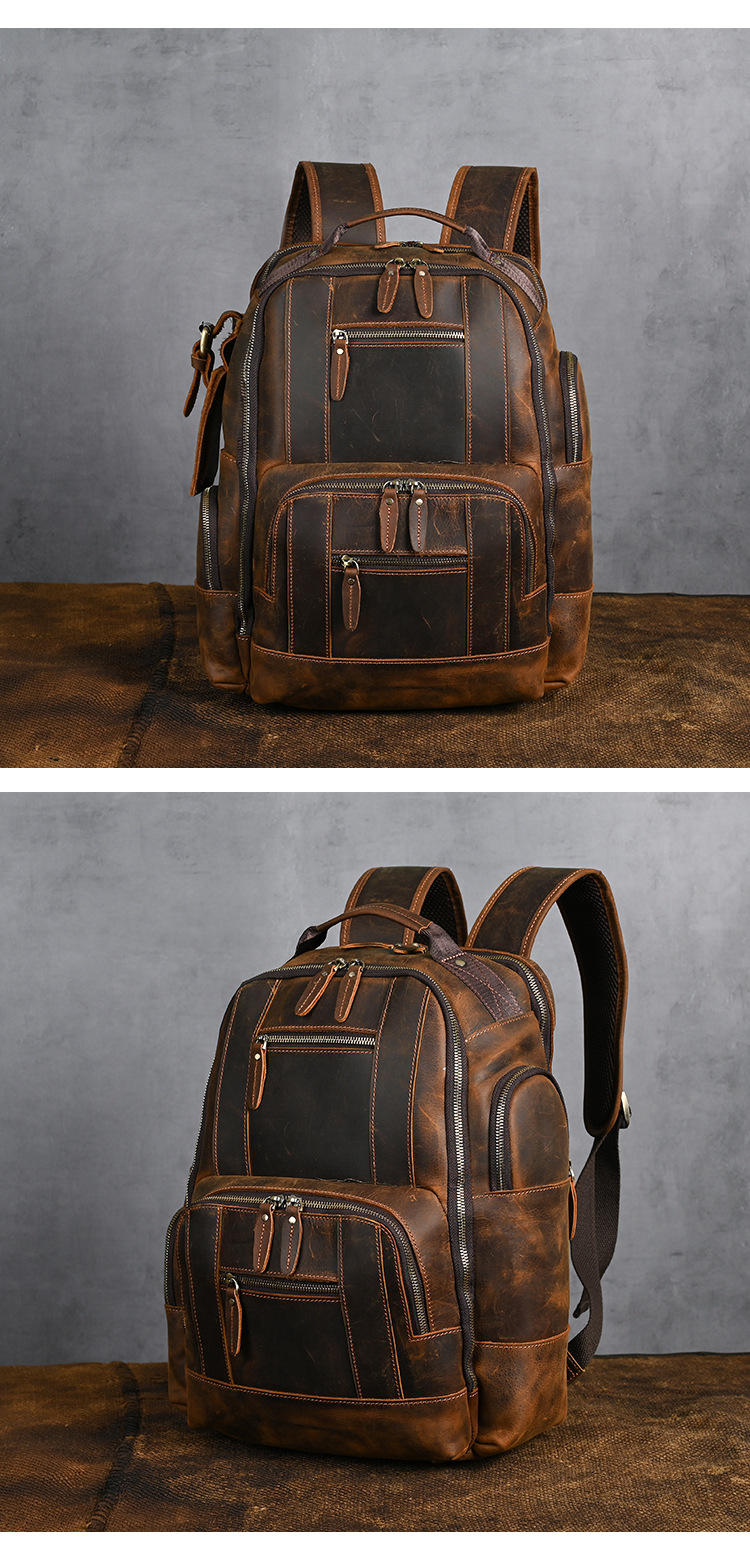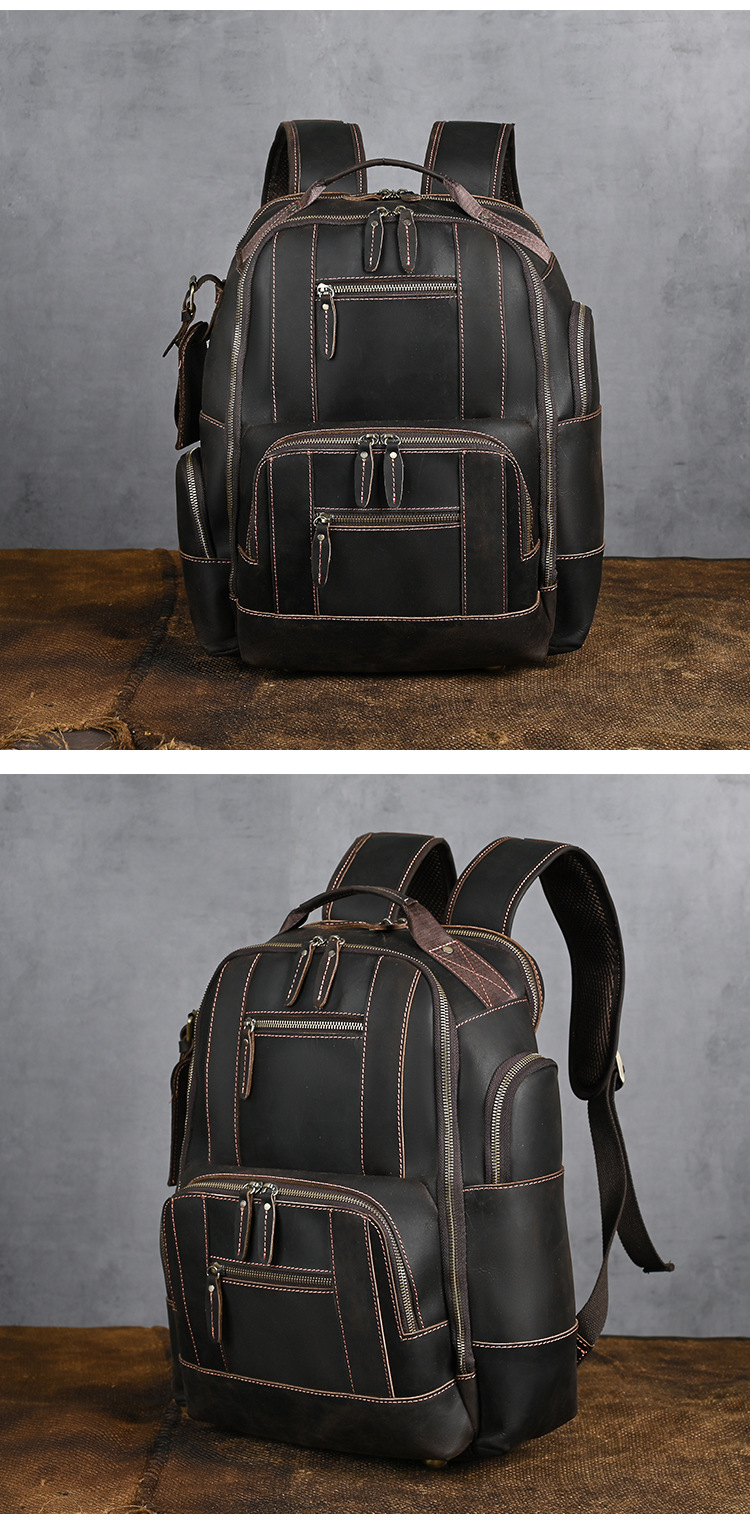 미친 말 가죽 남자의 정품 가죽 배낭 탑 레이어 소가죽 유행 복고풍 비즈니스 캐주얼 대용량 배낭스토어 가기
