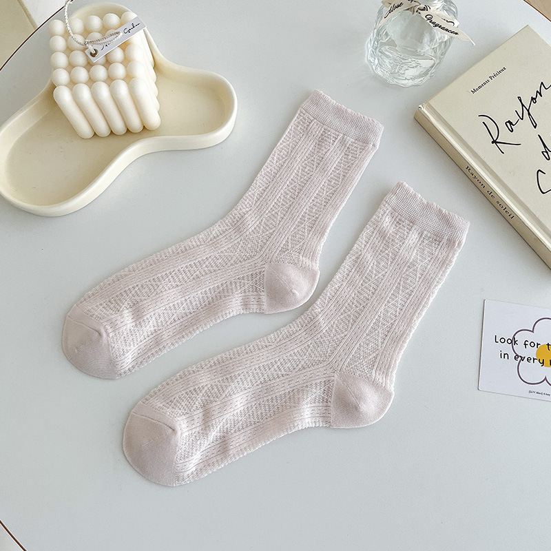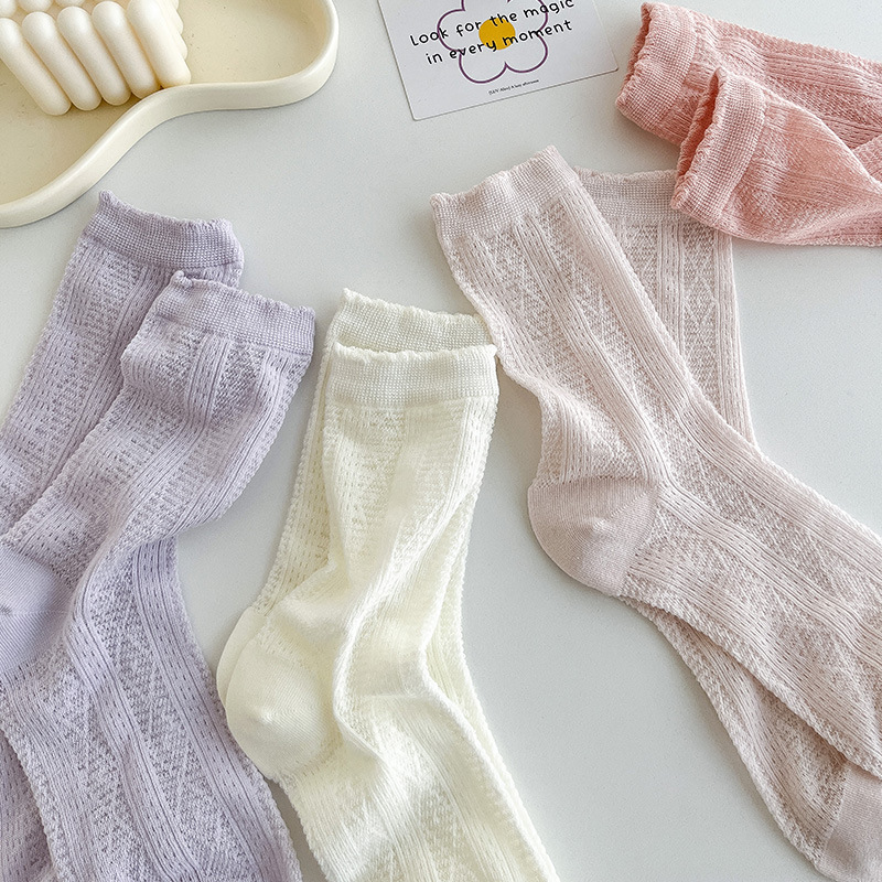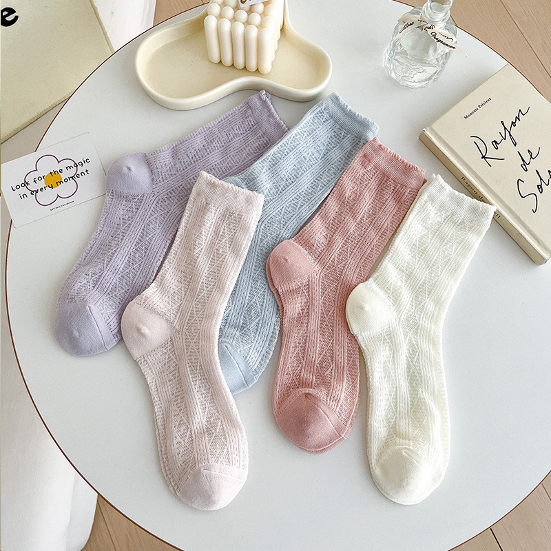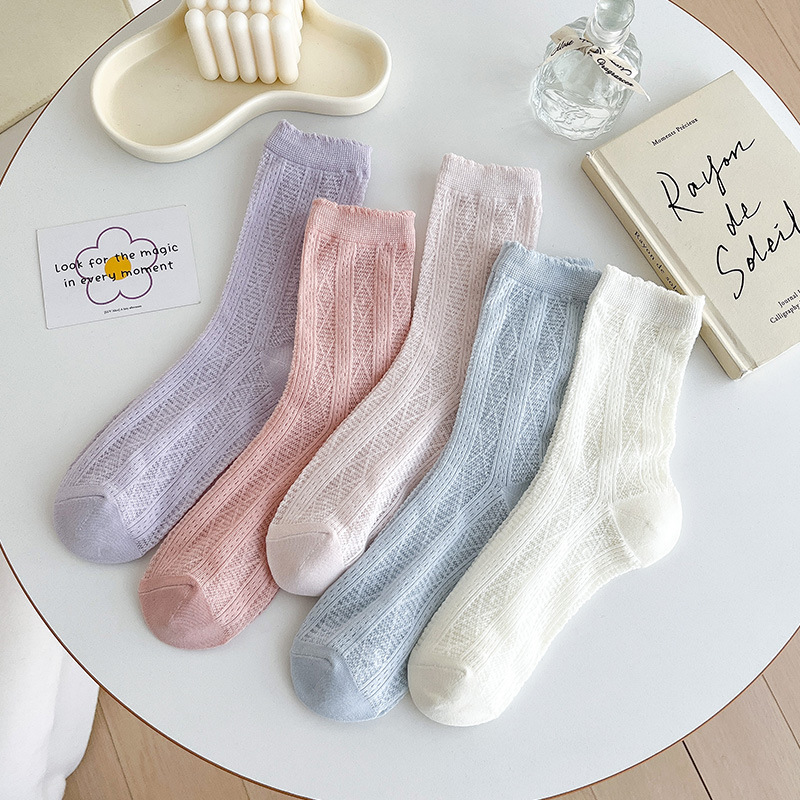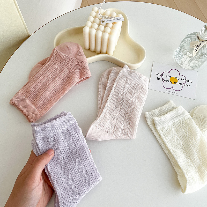 메쉬 다이아몬드 양말 여성용 여름 얇은 면 단색 스택 양말 여름 통기성 중간 길이 양말 캔디 컬러 스타킹