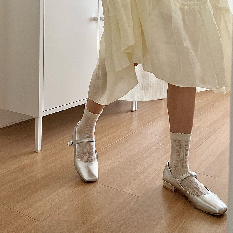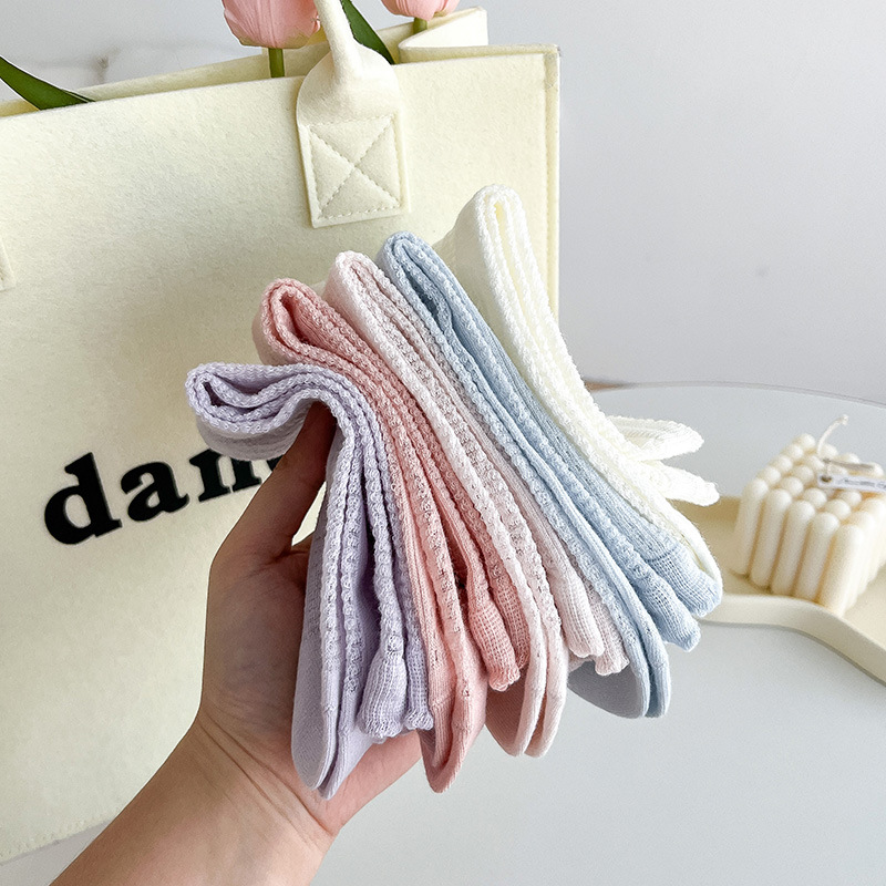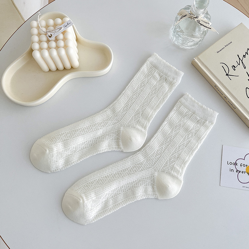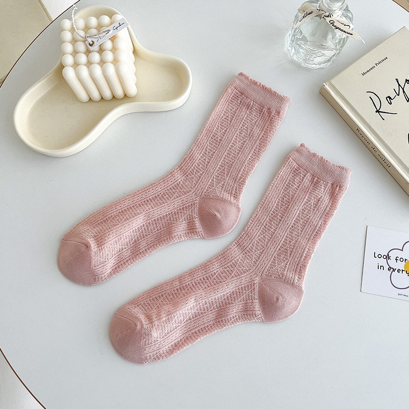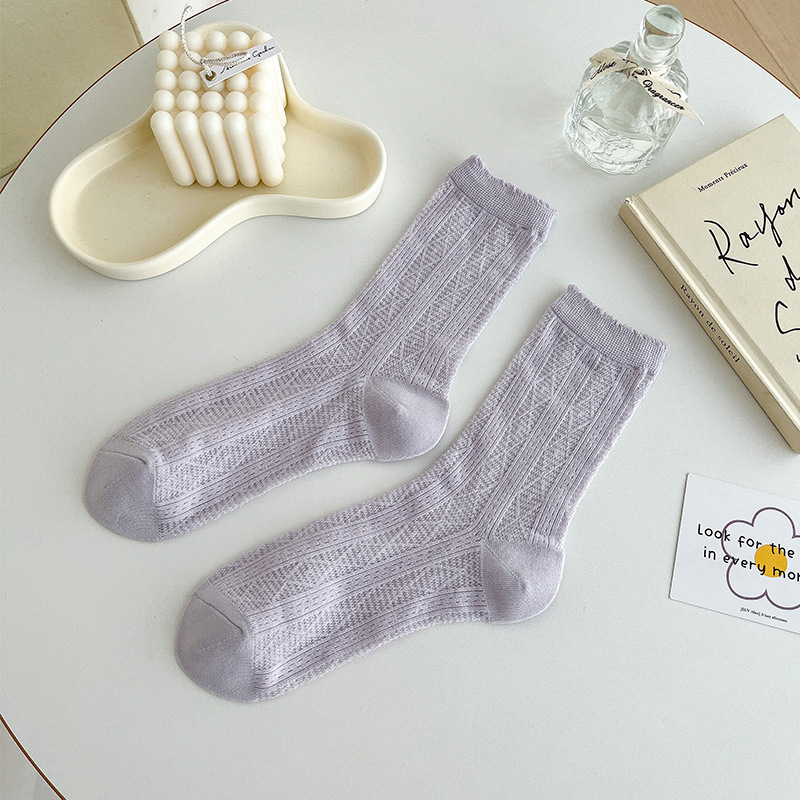 메쉬 다이아몬드 양말 여성용 여름 얇은 면 단색 스택 양말 여름 통기성 중간 길이 양말 캔디 컬러 스타킹