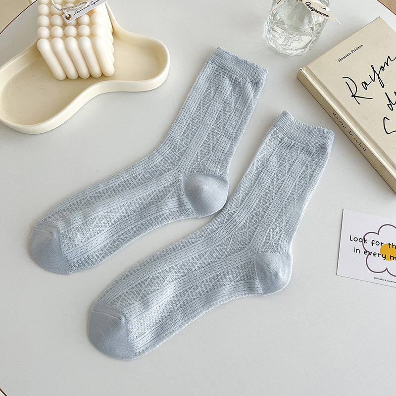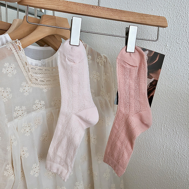 메쉬 다이아몬드 양말 여성용 여름 얇은 면 단색 스택 양말 여름 통기성 중간 길이 양말 캔디 컬러 스타킹스토어 가기