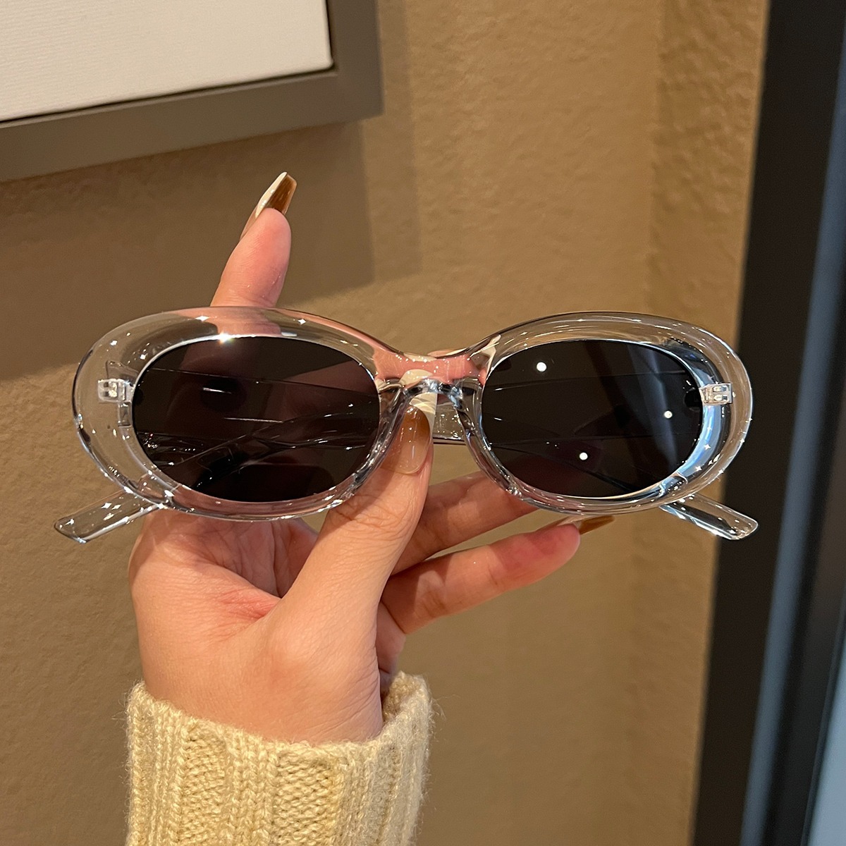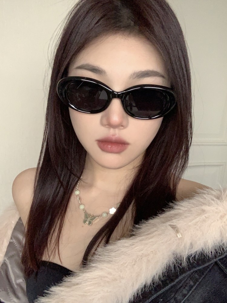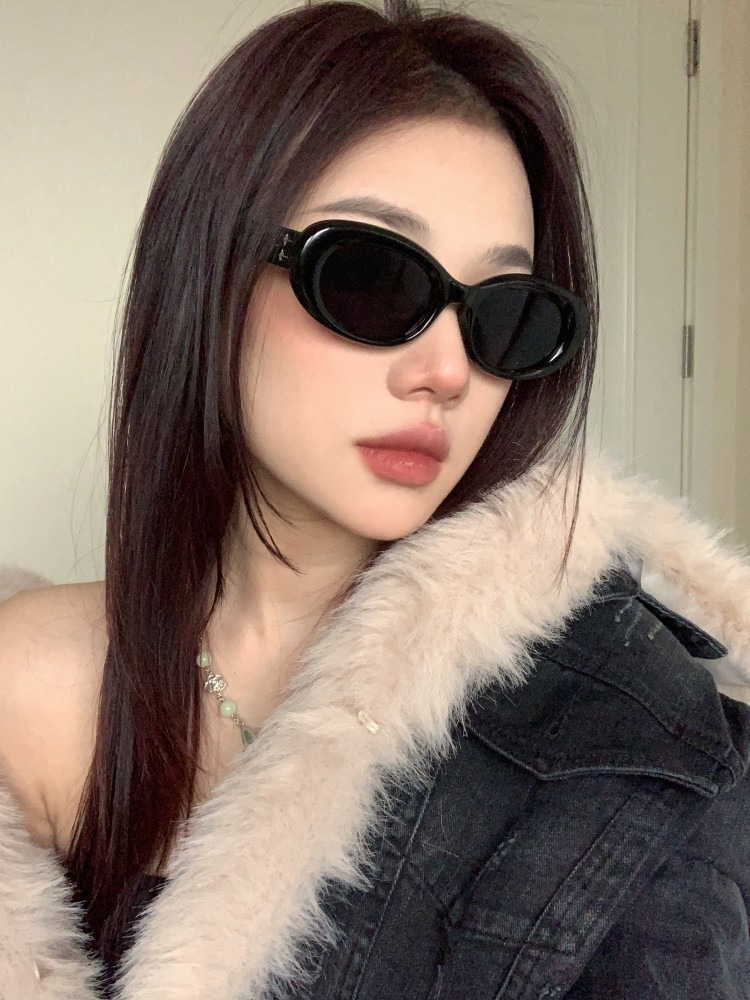 Zhao Rusi 같은 스타일 유럽과 미국 복고풍 타원형 작은 프레임 고양이 안경 여성용 자외선 차단제 선글라스 인터넷 인기 한국 스타일 gm 선글라스스토어 가기