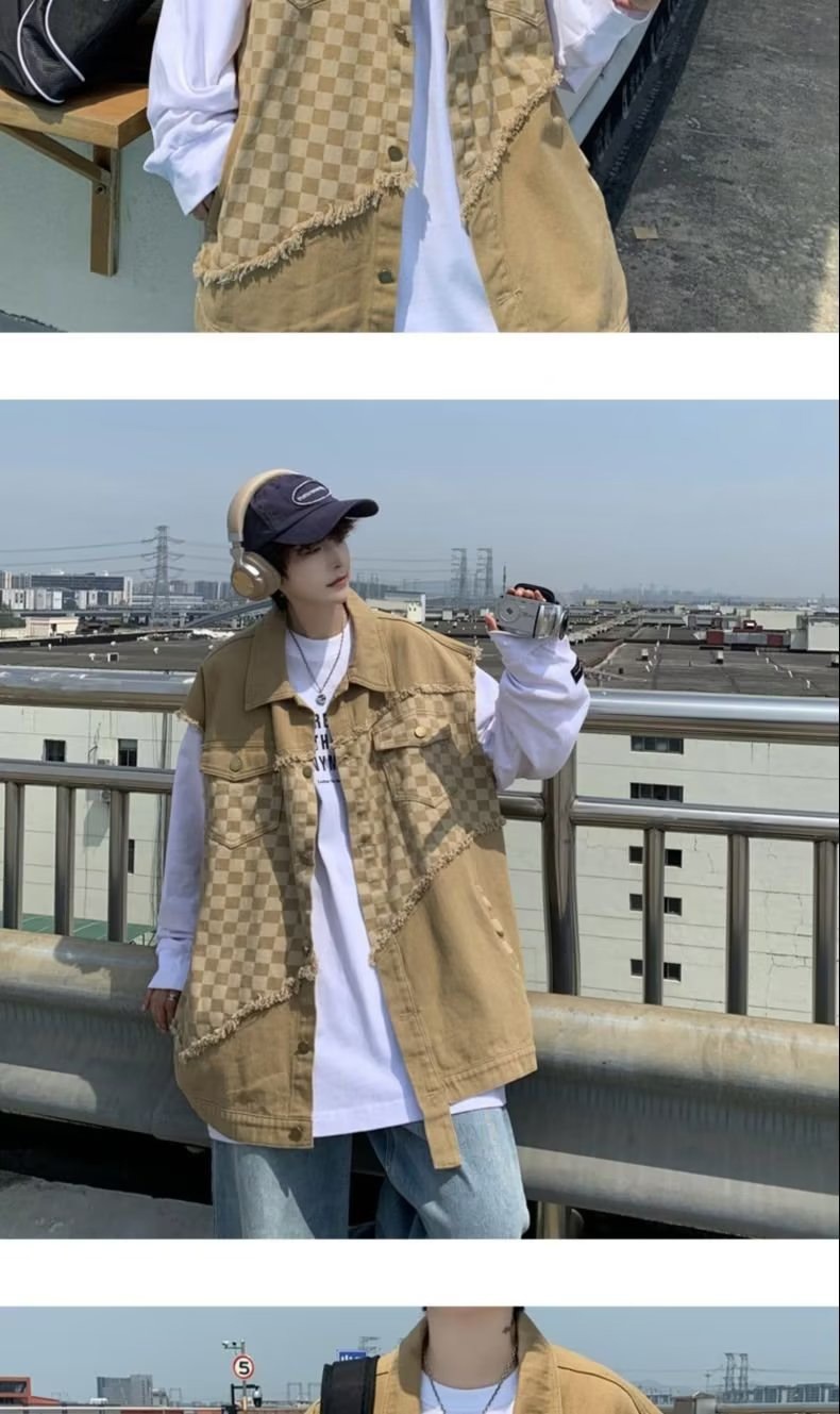루즈 데님 조끼 남자의 느슨한 바둑판 도자기 재킷 여름 유행 브랜드 인 하이 스트리트 빈티지 민소매 재킷스토어 가기