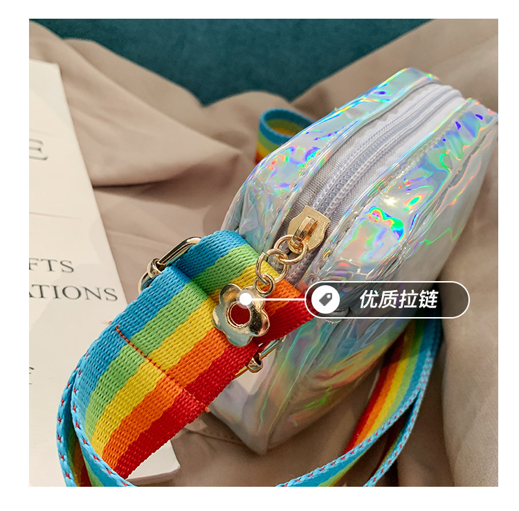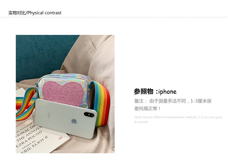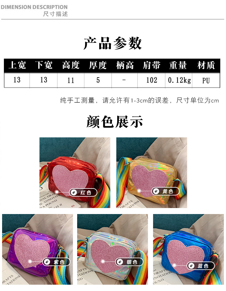 한국 스타일 어린이 미니 가방 레이저 Pu 광택 복숭아 심장 어깨 메신저 가방 소녀의 여름 장식 동전 지갑