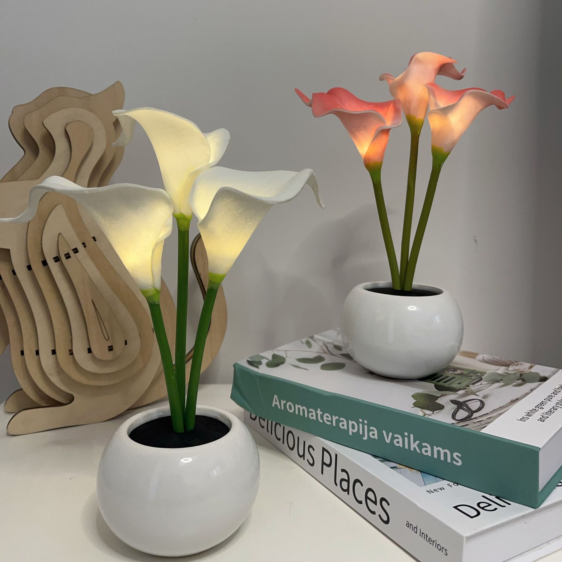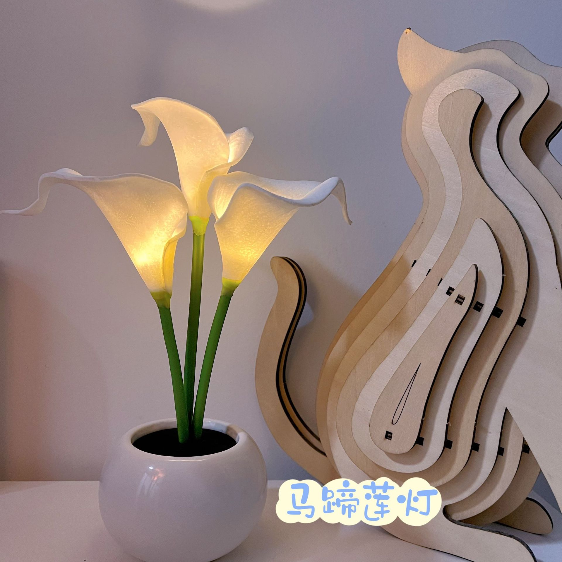 크로스 보더 칼라 릴리 인공 꽃 테이블 램프 장식 침대 옆 탁자 램프 장식품 야간 조명 여자 친구 선물 분위기 램프 도매