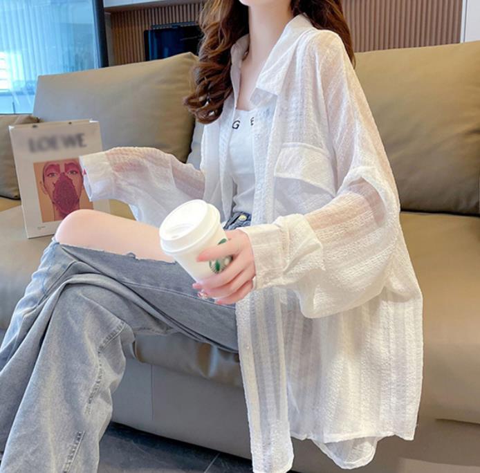 슈퍼 페어리 통기성 자외선 차단제 셔츠 여성용 여름 중간 길이 느슨한 얇은 긴팔 올매치 가디건 에어컨 재킷 디자인 센스