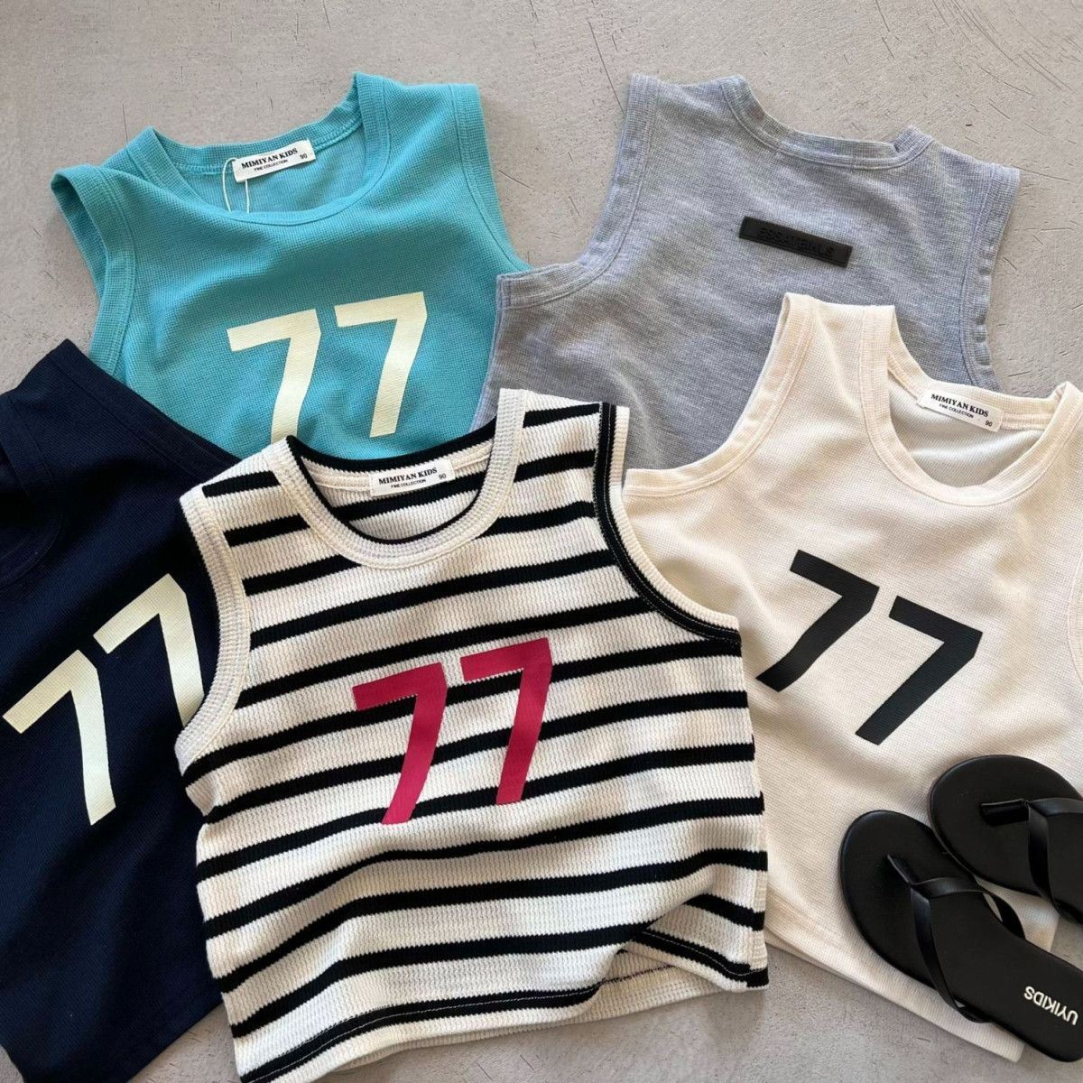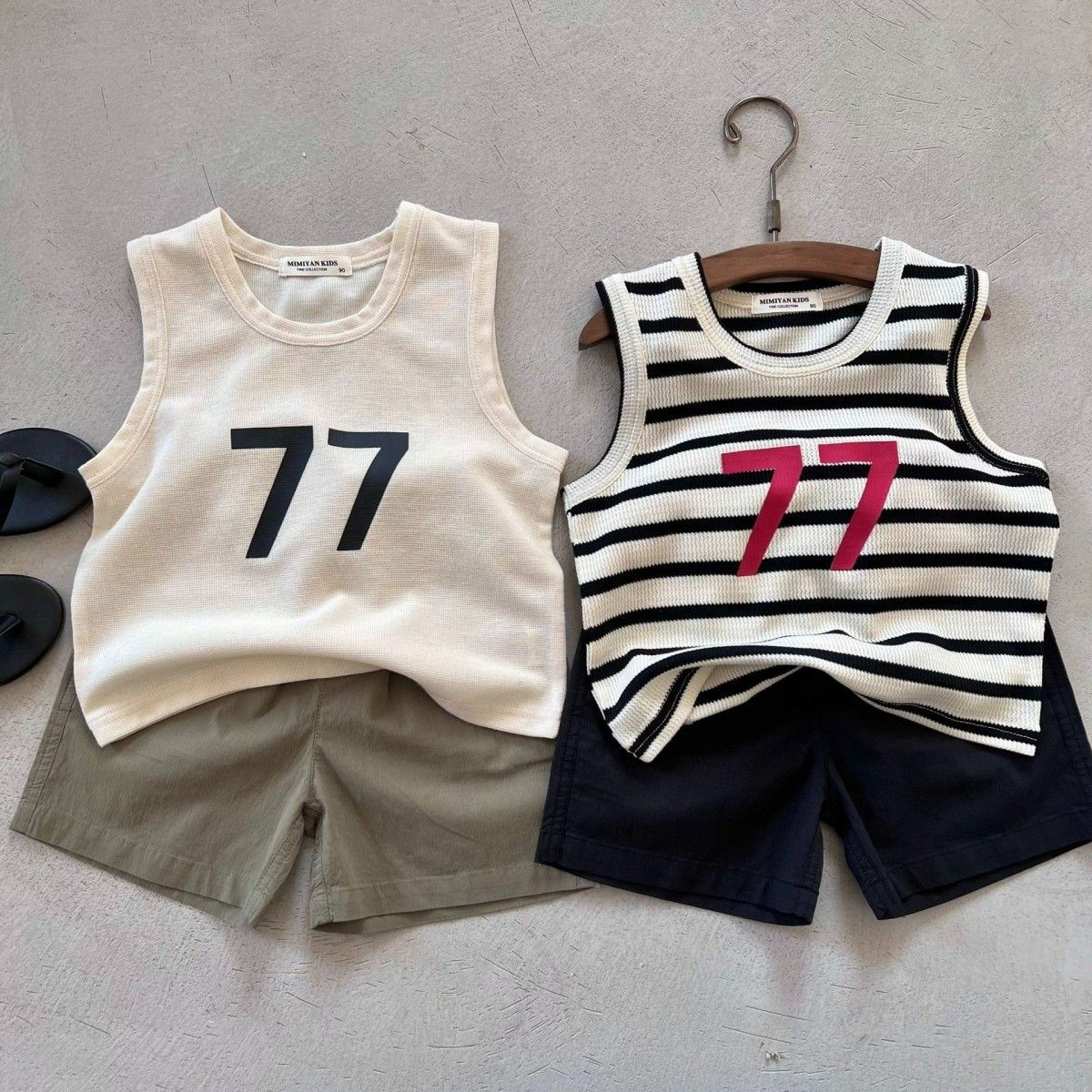 보이즈 스트레치 7 단어 조끼 민소매 티셔츠 2023 여름 새로운 아동복 베이비 코튼 모든 매치 베이스 셔츠 트렌디스토어 가기