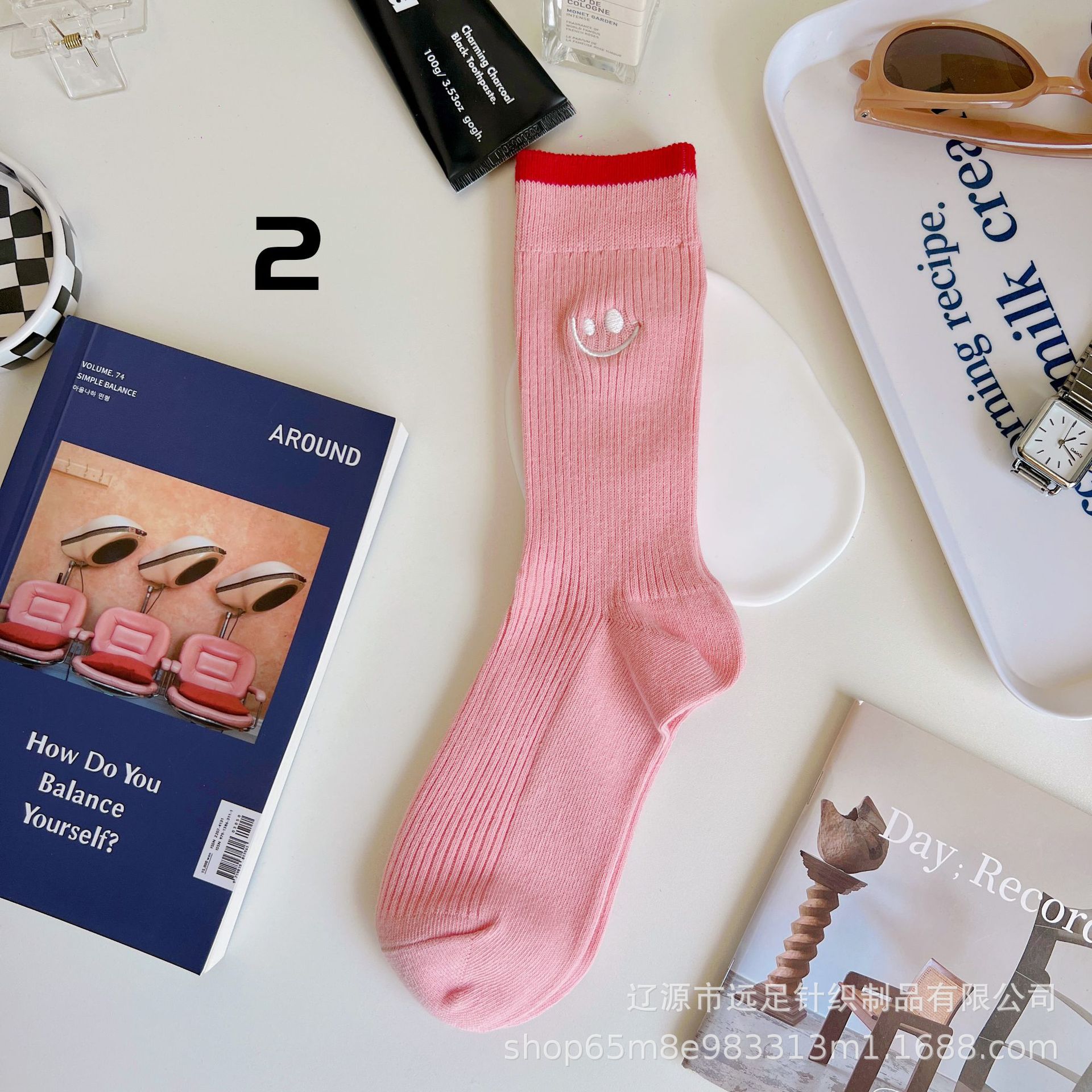 간단한 아카데미 스타일 양말 여성용 중간 길이 양말 한국 스타일 여름 얇은 모든 매치 스트라이프 더블 바늘 자수 스타킹 인터넷 인기스토어 가기