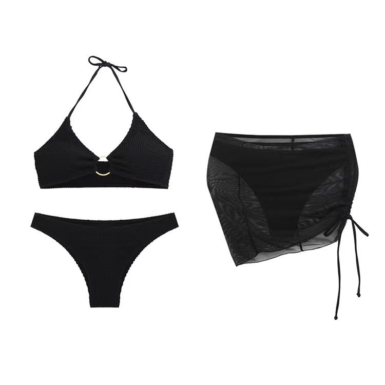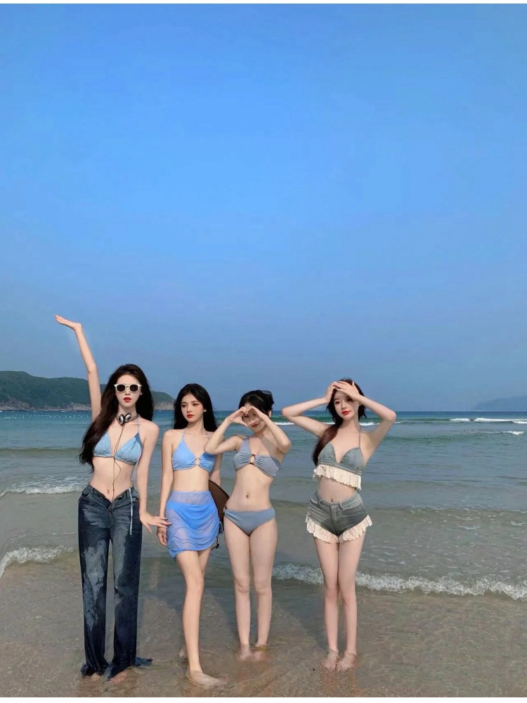 스카이 블루 비키니 쓰리피스 블로거 수영복 가방 엉덩이 졸라매는 끈 섹시한 크기 가슴 수영복 Sanya 휴가스토어 가기