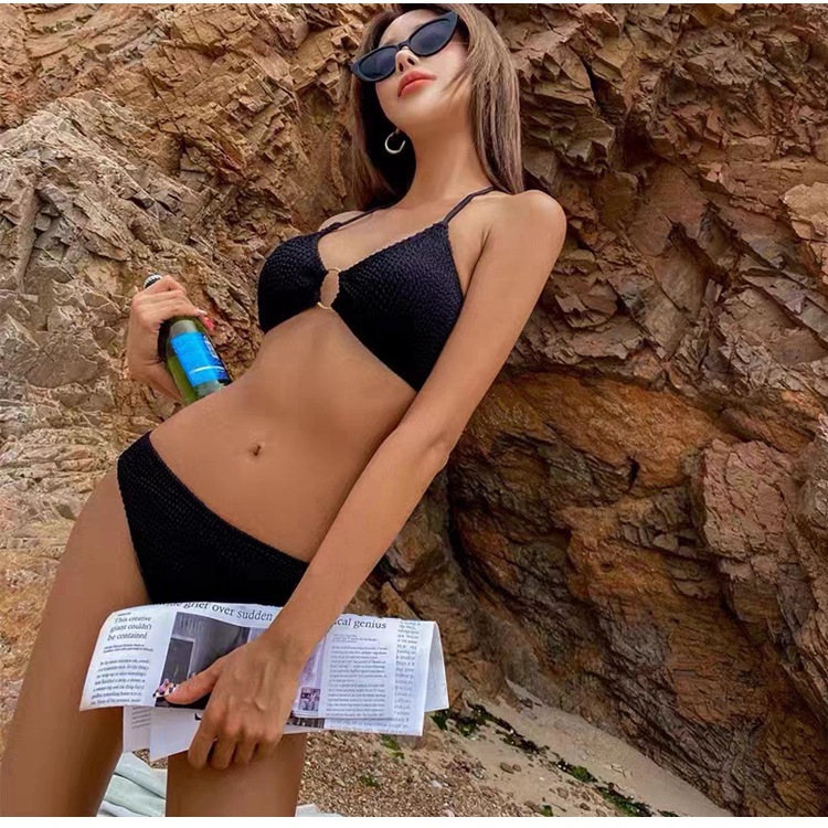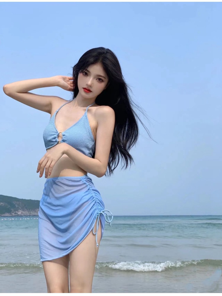 스카이 블루 비키니 쓰리피스 블로거 수영복 가방 엉덩이 졸라매는 끈 섹시한 크기 가슴 수영복 Sanya 휴가