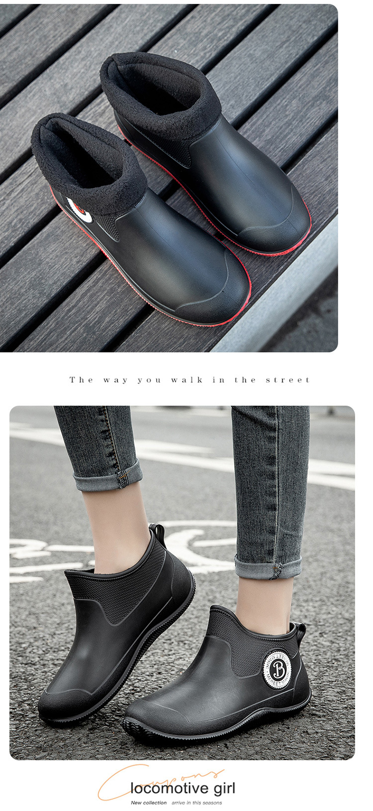 방수 신발 남성과 여성의 레인 슈즈 커플 논슬립 로우탑 코리안 패션 쇼트 튜브 코튼 따뜻한 빛과 편안한 도매