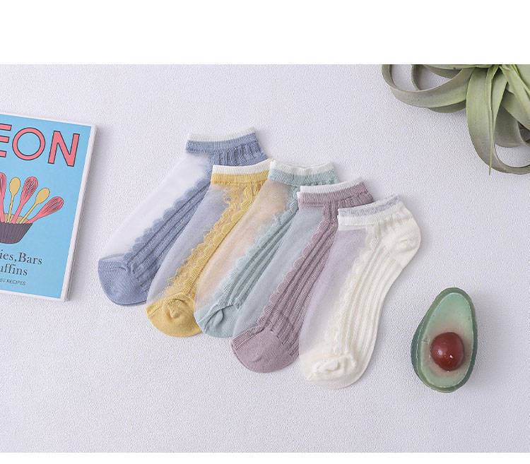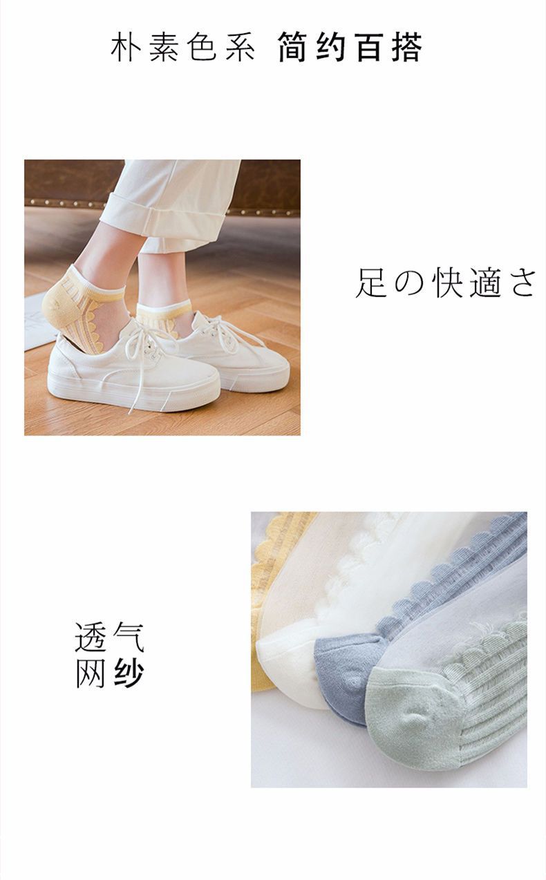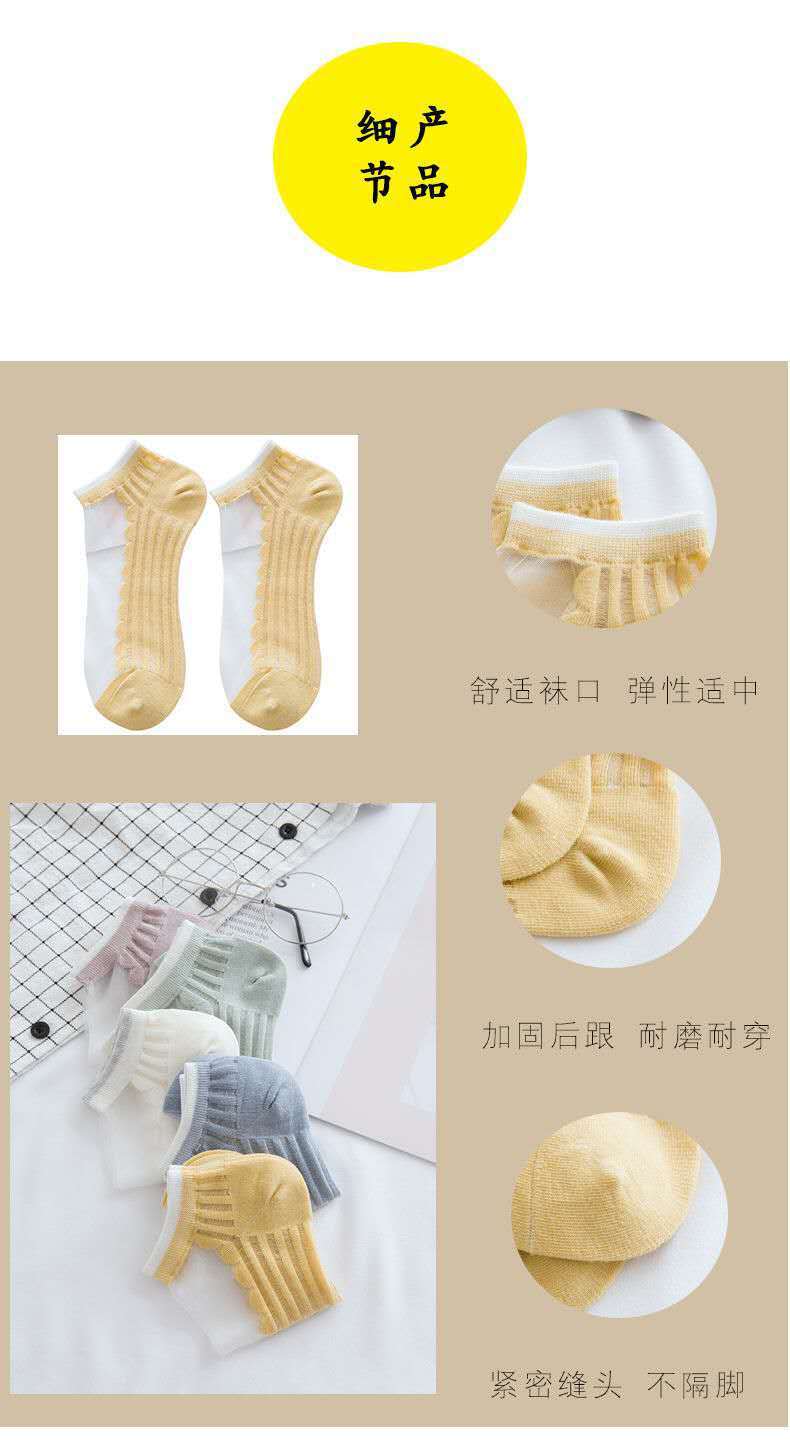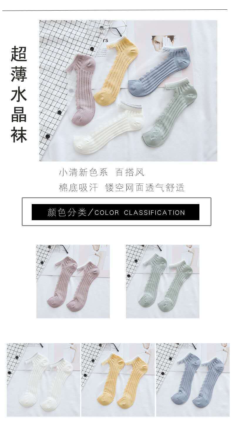 실크 스타킹 여성 한국식 크리스탈 스타킹 유리 스타킹 일본식 얕은 양말 세로 패턴 끈 양말 봄과 여름 투명 보이지 않는 양말