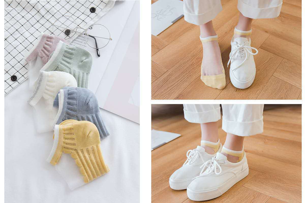 실크 스타킹 여성 한국식 크리스탈 스타킹 유리 스타킹 일본식 얕은 양말 세로 패턴 끈 양말 봄과 여름 투명 보이지 않는 양말스토어 가기
