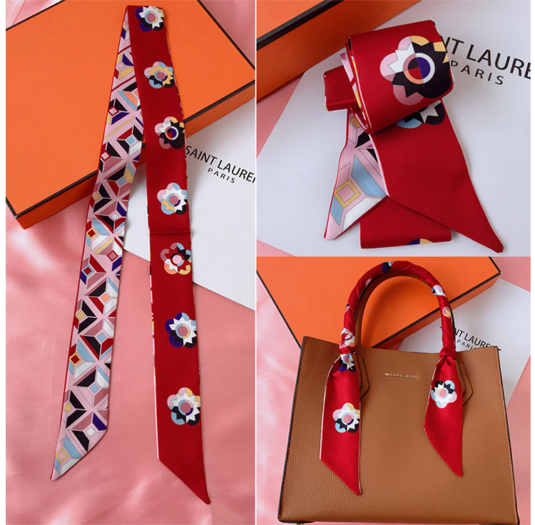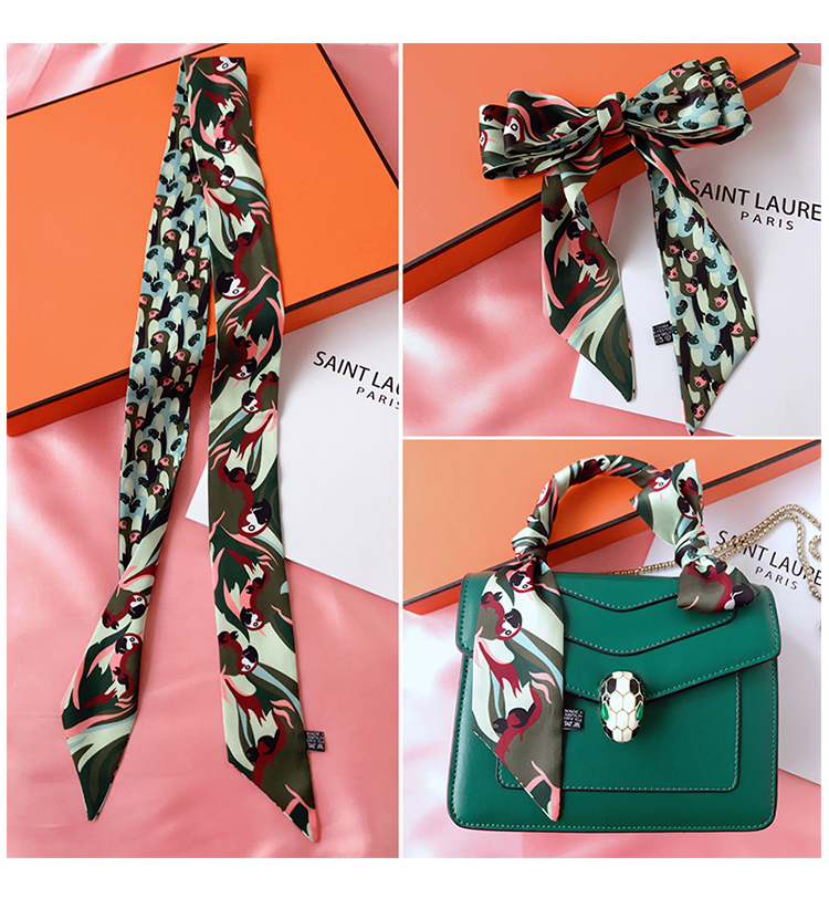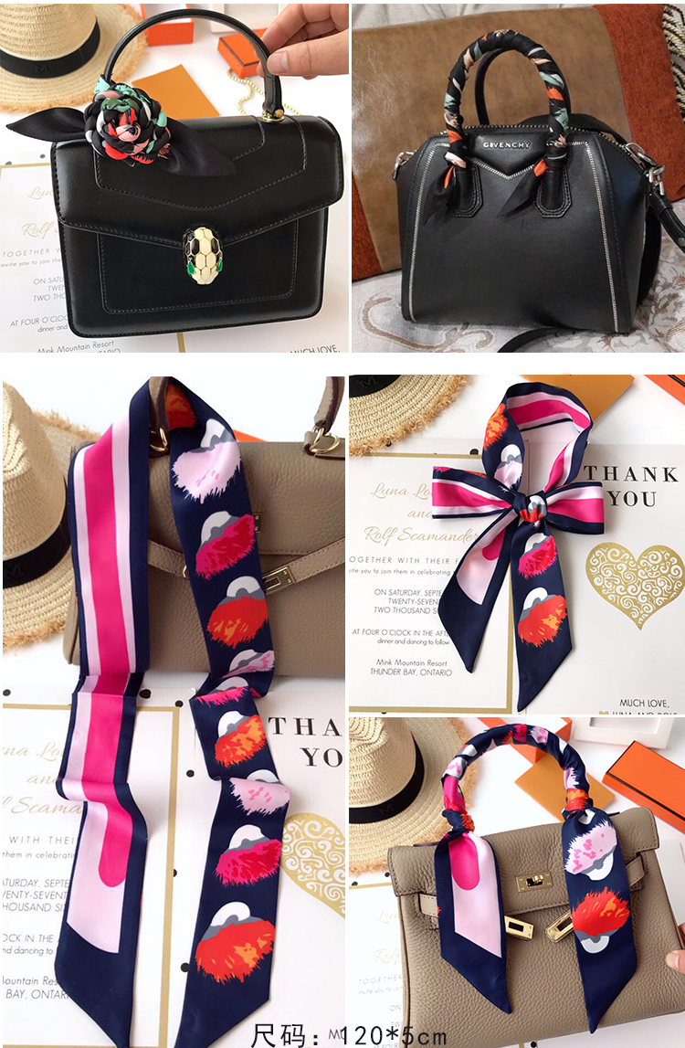 도매 머리 포장 가방 리본 여자의 장식 넥타이 가방 핸들 스카프 라인 핸드백 인쇄 리본 스카프