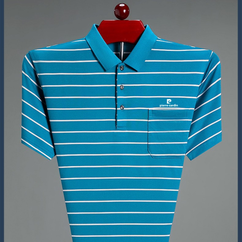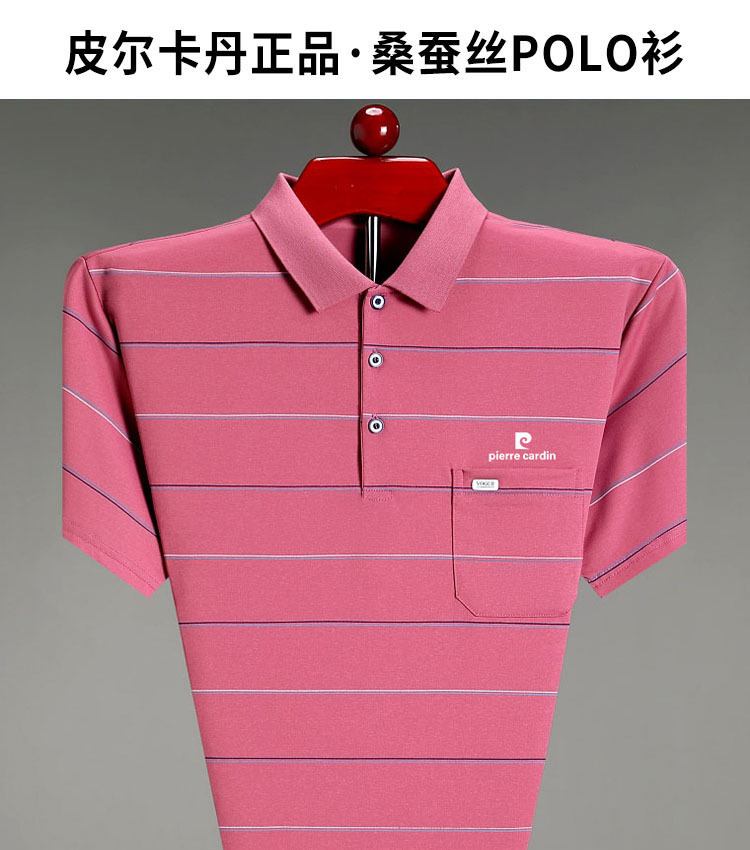 皮尔卡丹男士夏季桑蚕丝POLO衫宽松中老年爸爸装冰丝薄款短袖T恤