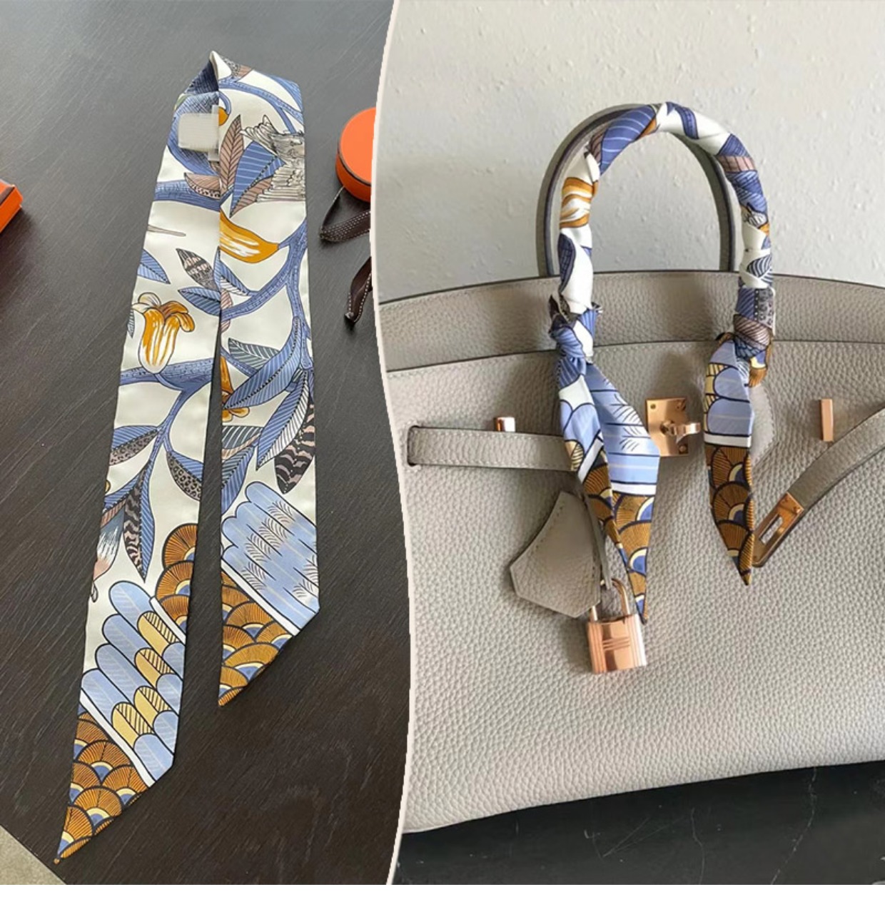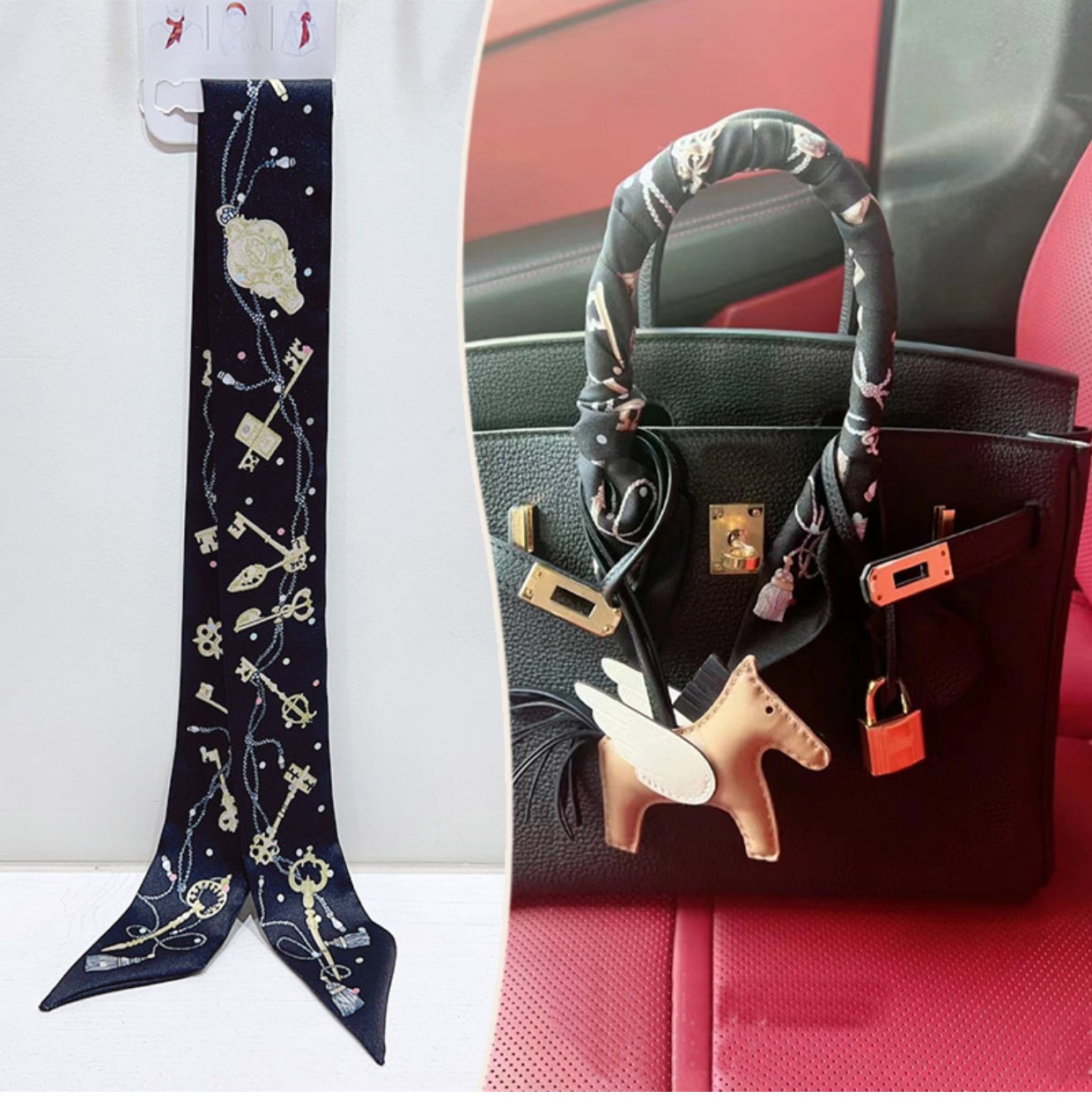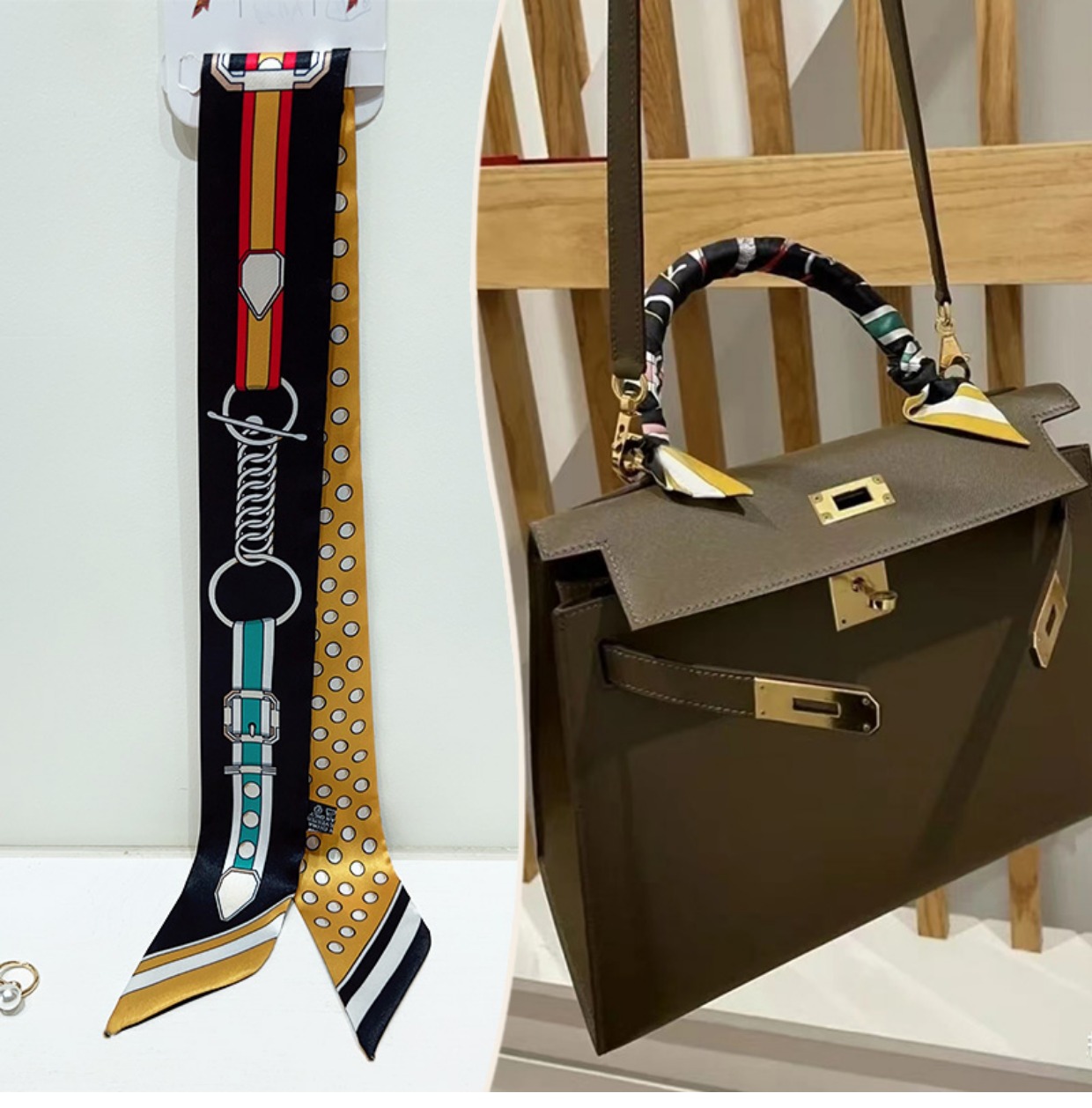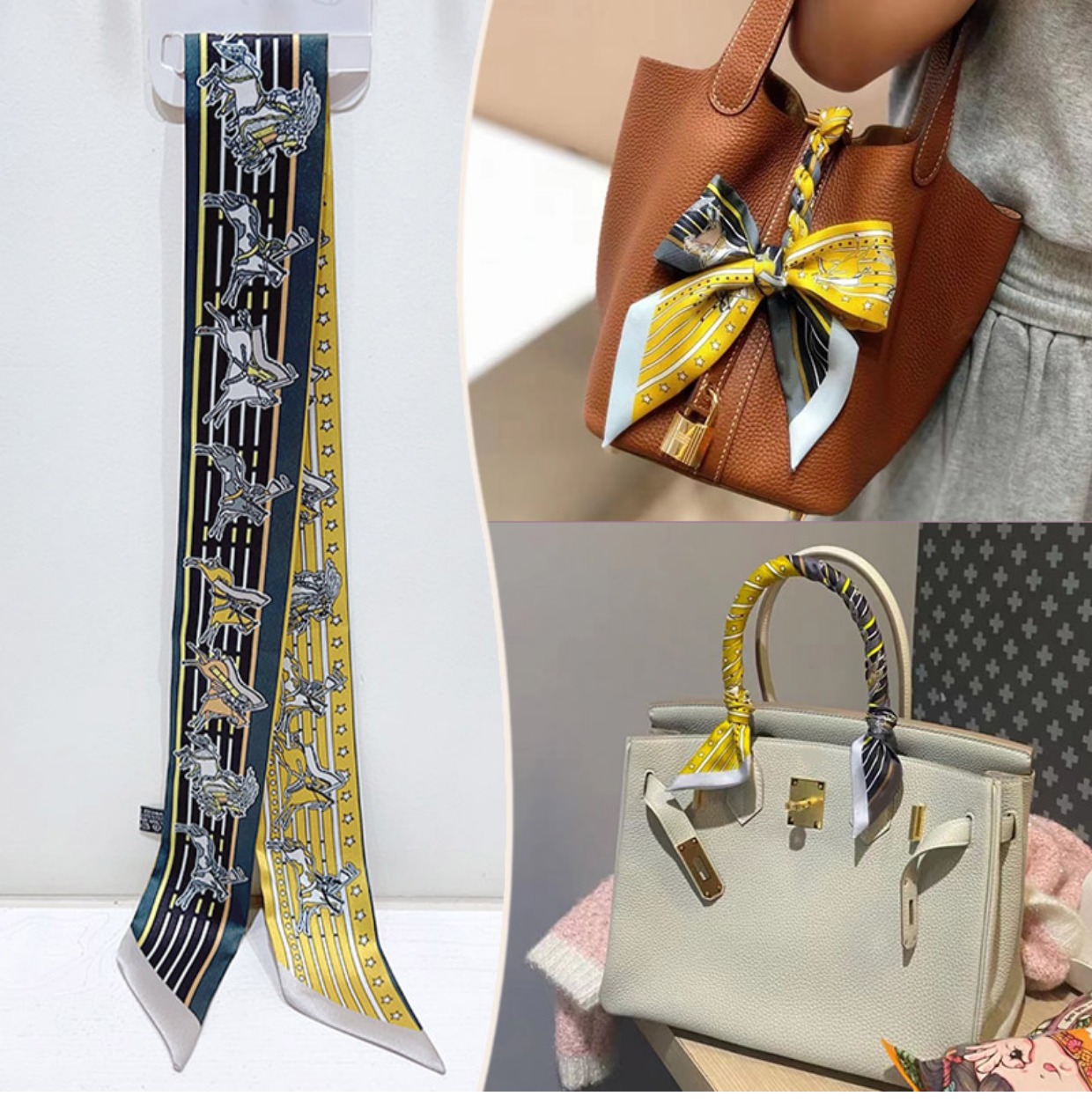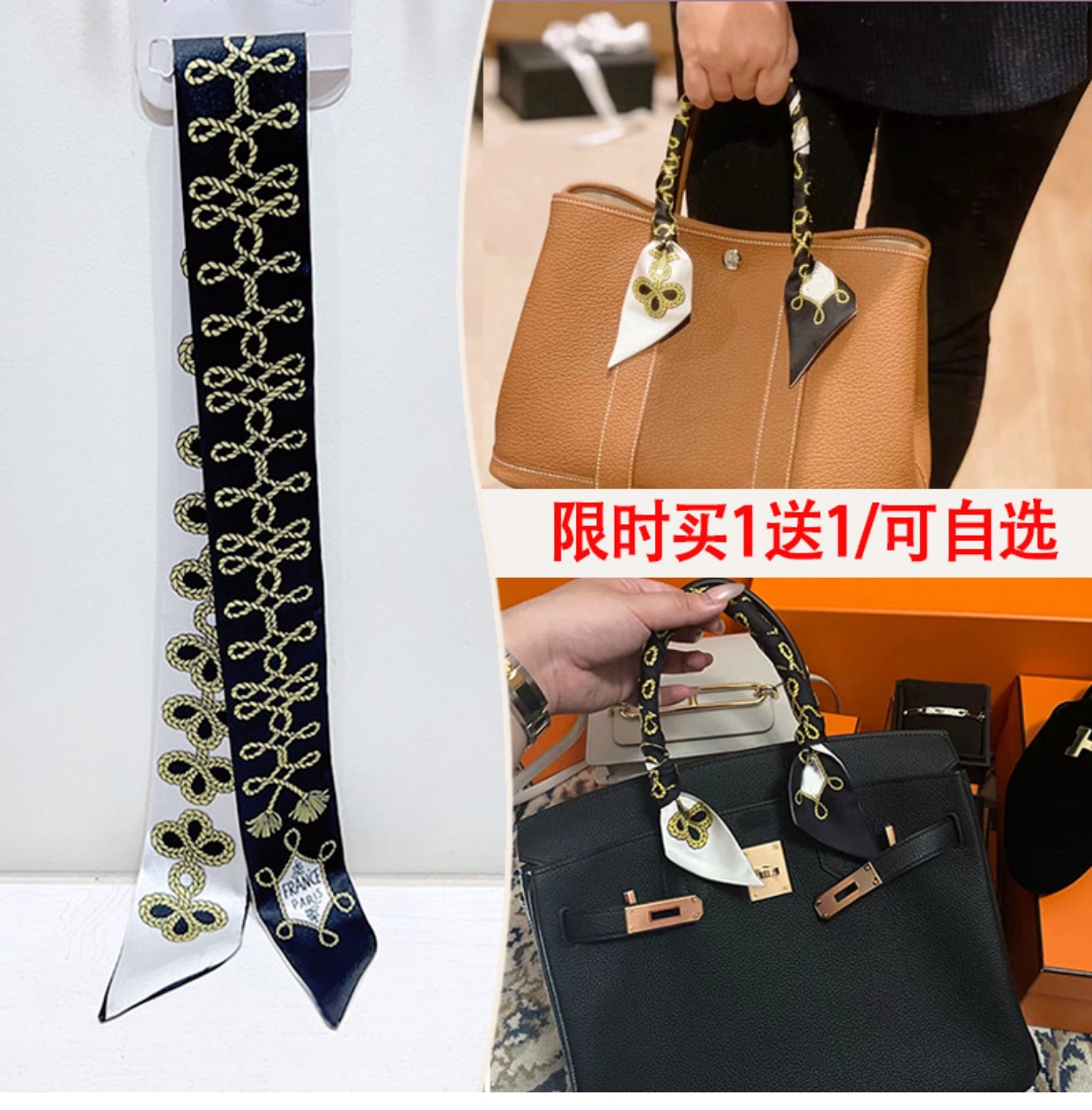 h 가족의 새로운 2024 인기 모조 실크 포장 가방 스트랩 가방 핸들 실크 스카프 바인딩 가방 리본 장식 작은 깃발