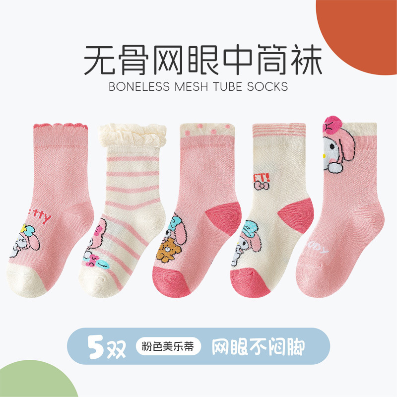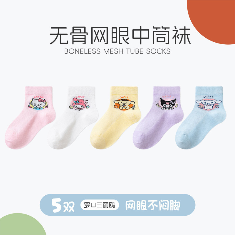 2026 산리오 아동용 양말 여름용 얇은 메쉬 무봉제 만화 캐릭터 아기 양말 만화 캐릭터 남아 여아 양말 도매스토어 가기