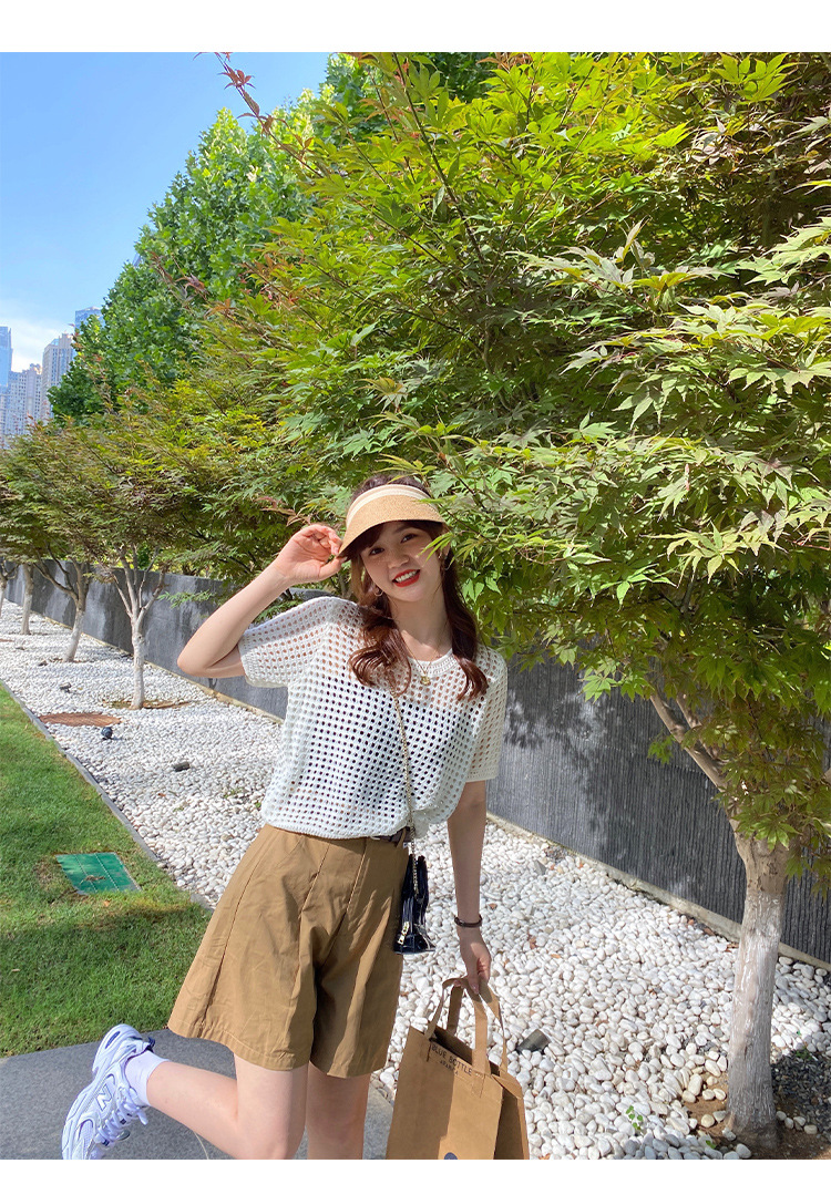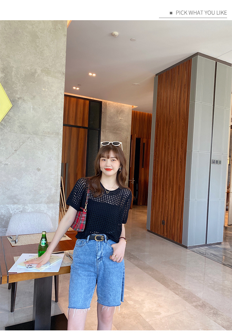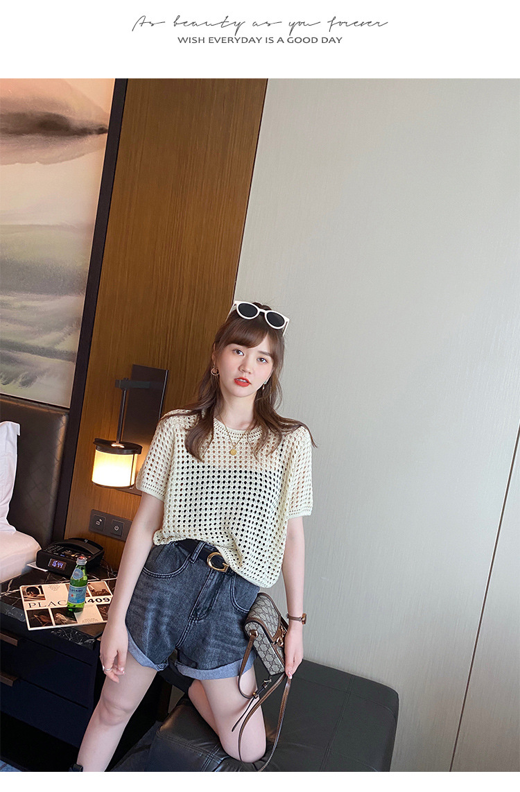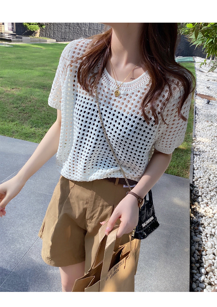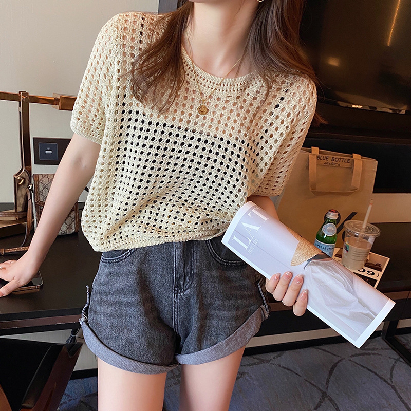 반팔 스웨터, 루즈한 라운드넥 아이스 실크 블라우스, 시크한 메쉬 스웨터스토어 가기