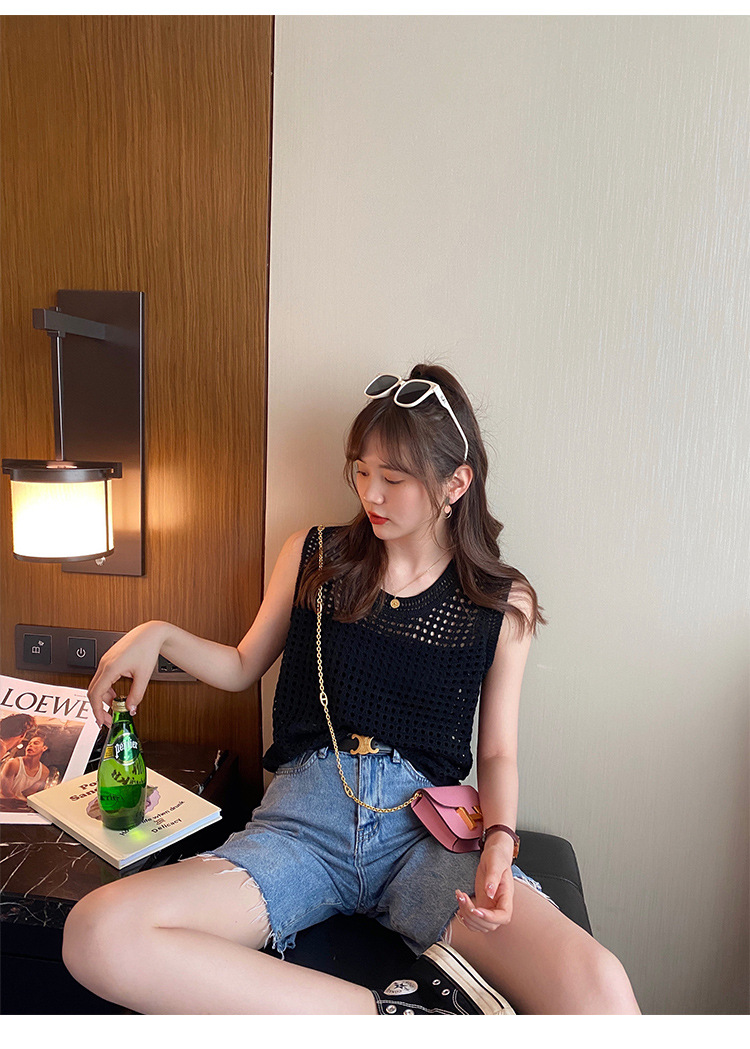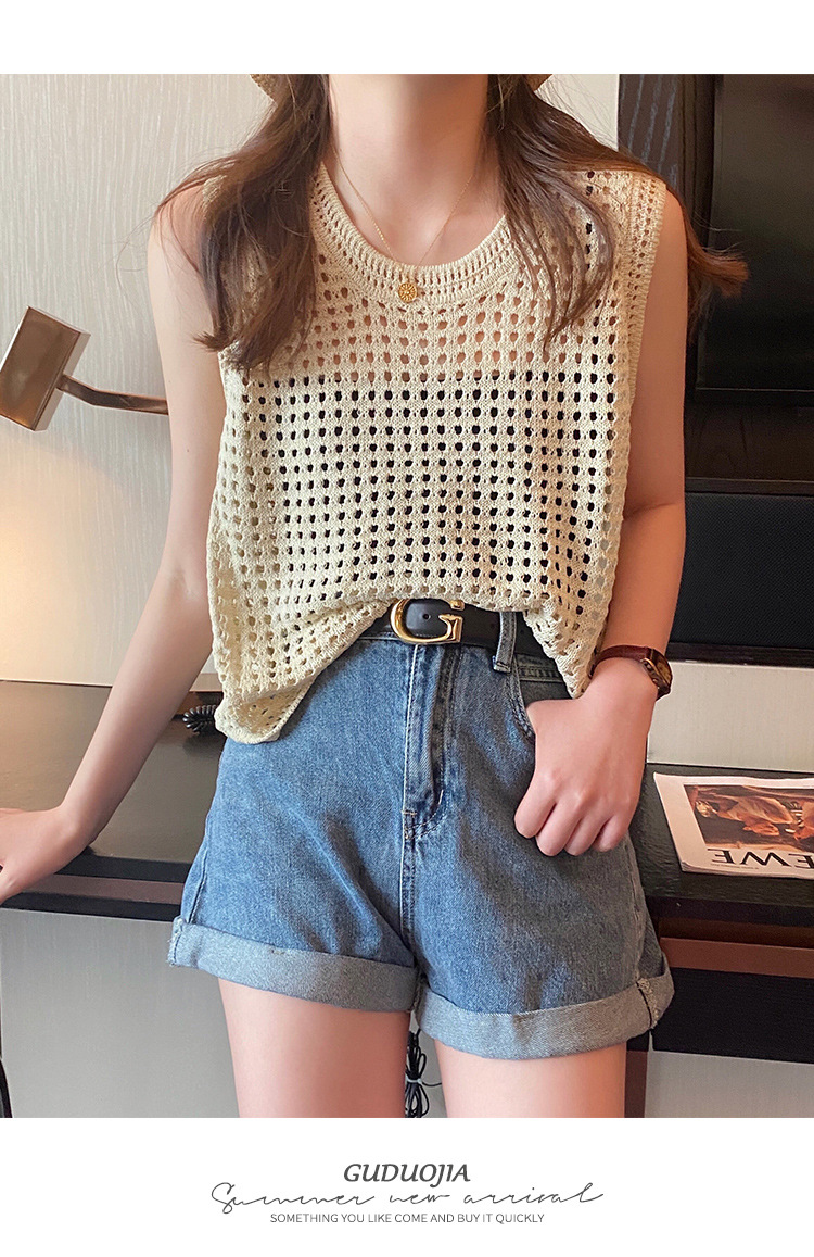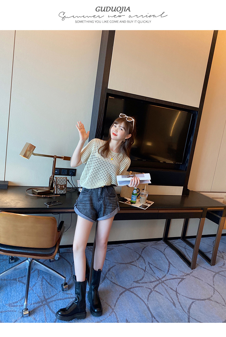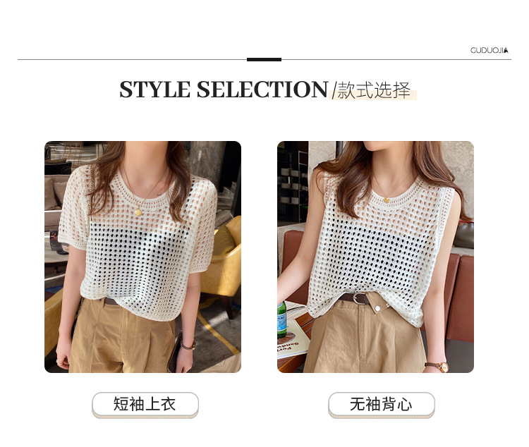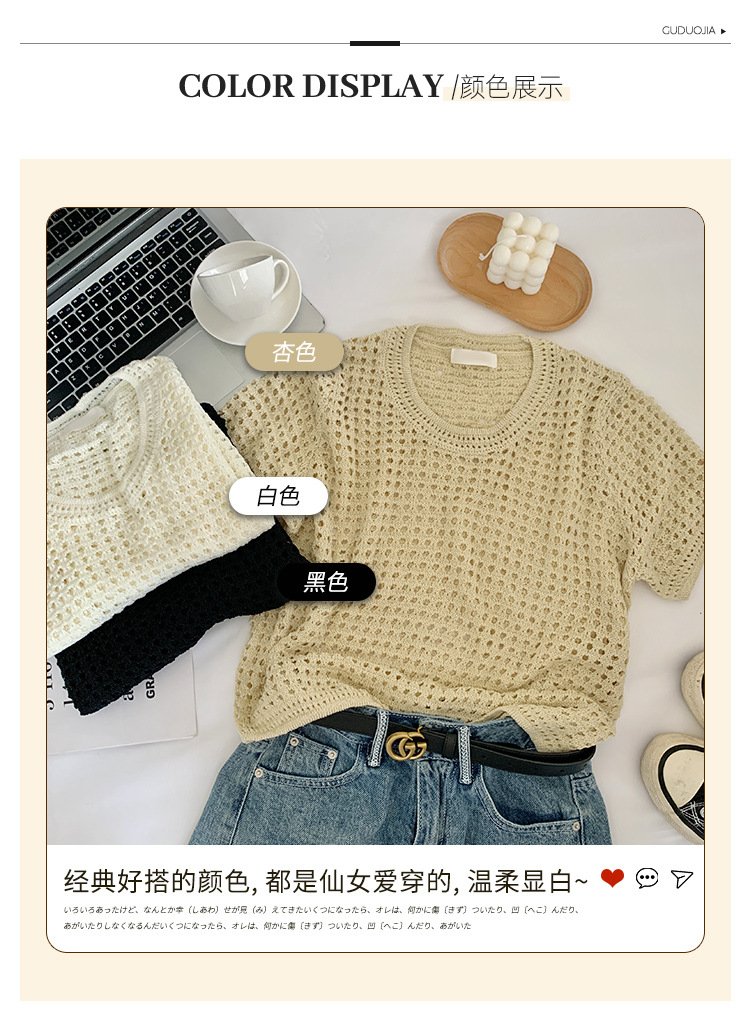 반팔 스웨터, 루즈한 라운드넥 아이스 실크 블라우스, 시크한 메쉬 스웨터스토어 가기
