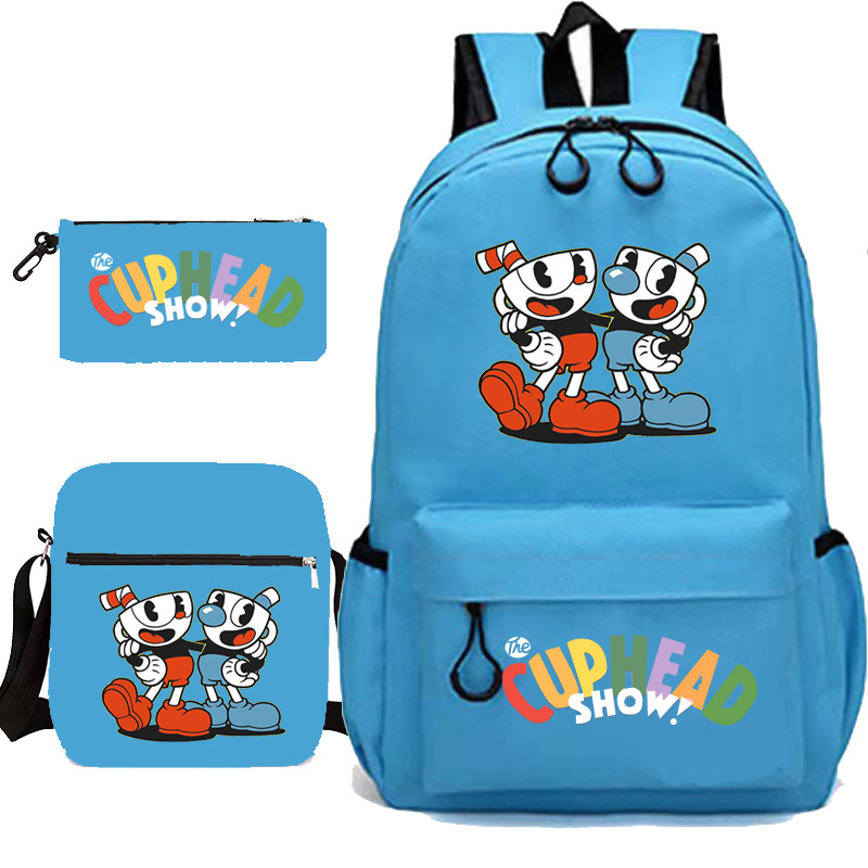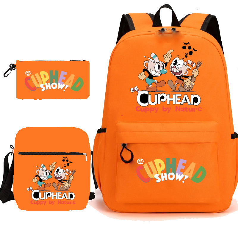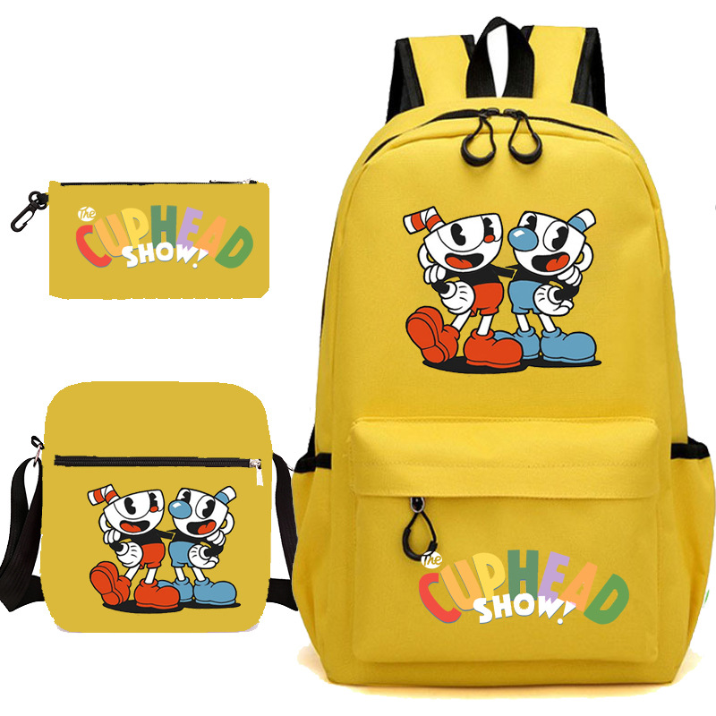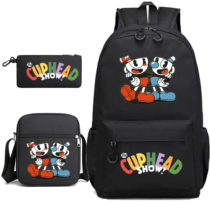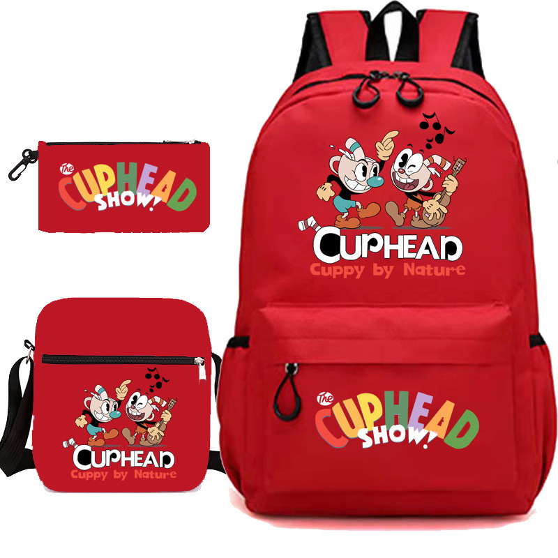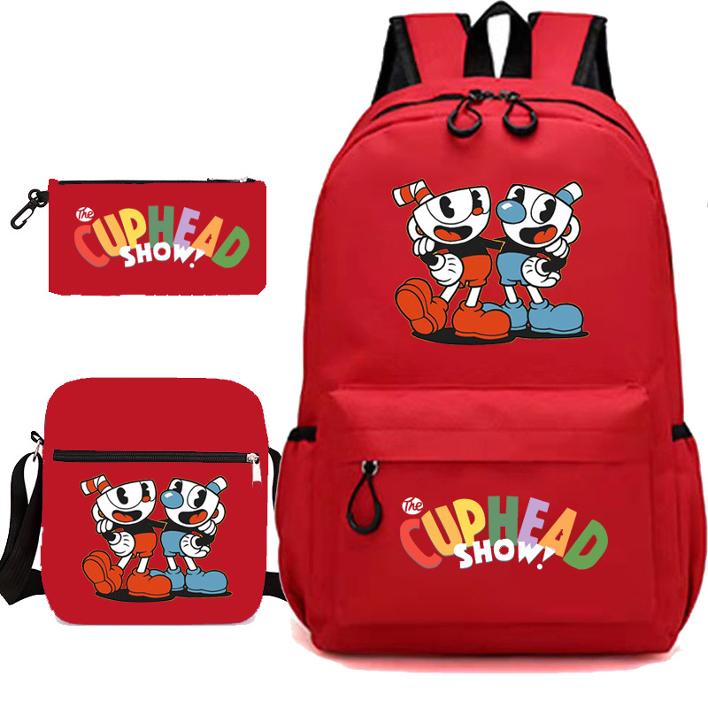 대외 무역 새로운 티 컵 헤드 Cuphead 학생 책가방 배낭 3 피스 어린이 어깨 점심 연필 가방 만화스토어 가기
