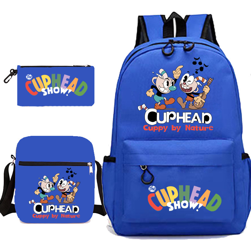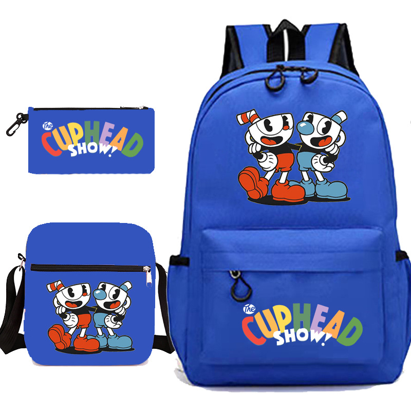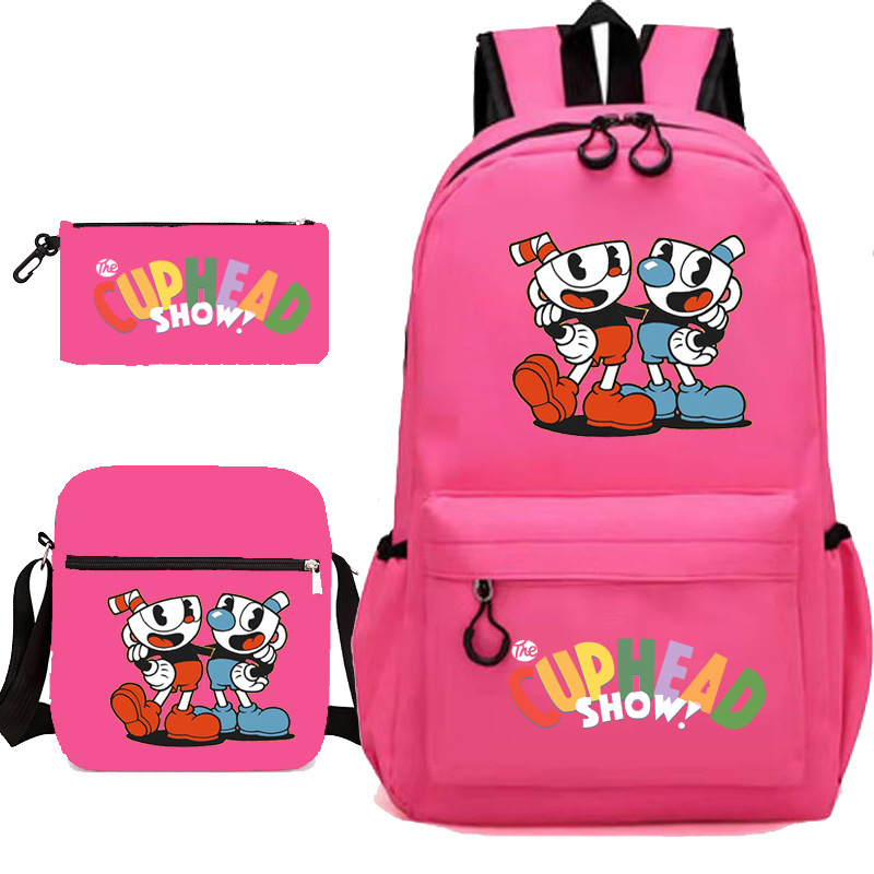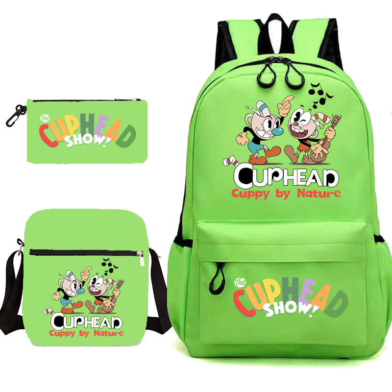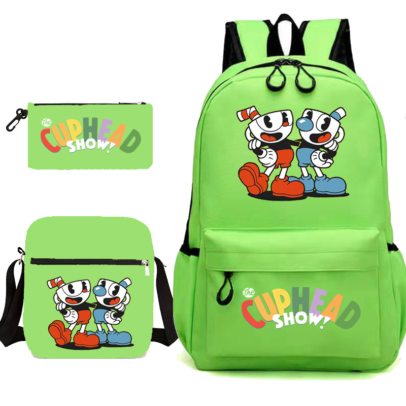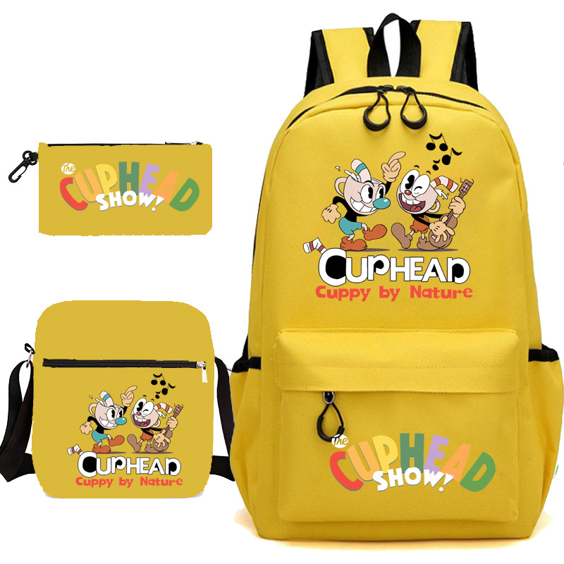 대외 무역 새로운 티 컵 헤드 Cuphead 학생 책가방 배낭 3 피스 어린이 어깨 점심 연필 가방 만화스토어 가기
